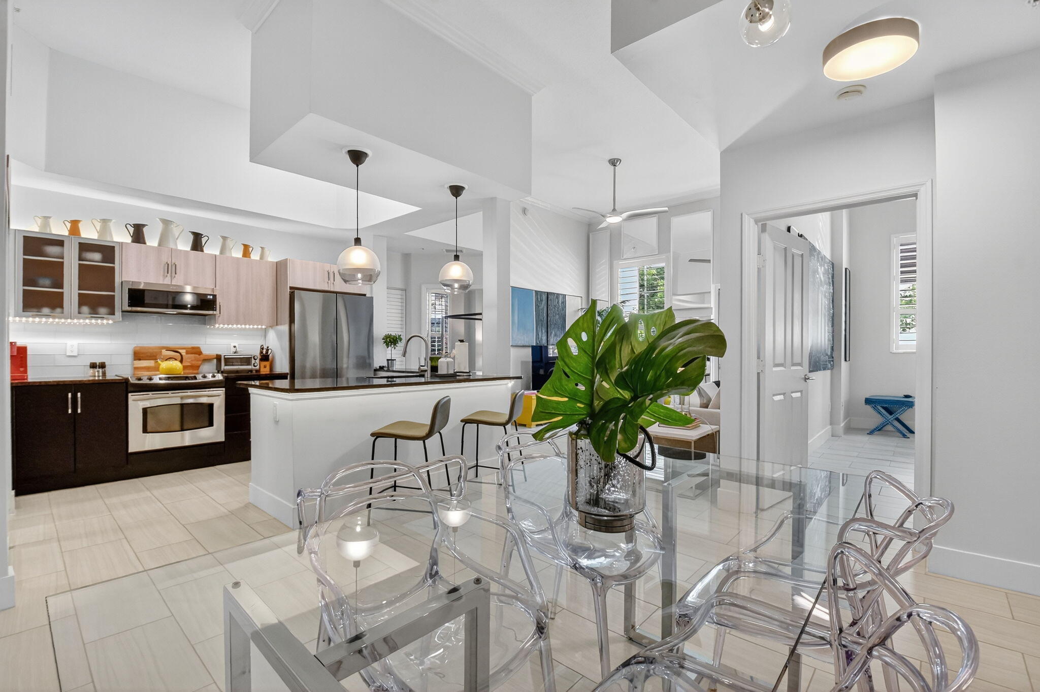 Experience life in a ''walker's paradise'' in Downtown West Palm Beach! This modern 2 bedroom/2 bathroom condo is available for annual rentals starting in Apr 2026. This is a beautiful furnished designer apartment -Turnkey. This first floor unit has walk out access to a quiet one way street. 11.5 ft ceilings and KING beds in each bedroom. Guest Bath has a soaking tub. Walk to the beach & world class dining in Palm Beach just 1 mile away and the high-speed Brightline, entertainment & shopping district at Cityplace is just two blocks. PBI is only a 10 minute drive. The Kravis Center, Norton Museum, Hive, Table 26 & Grato and all the new Class A office is within a 10 minute walk. The Blind Monk, Loic, Canopy Rooftop & MamaBella's market are some local favorites just steps from your door.This apartment is available starting April 1, 2026 as an annual furnished (turnkey) rental. Secure this beautiful apartment now before it's too late! The walk-out entrance to Tanglewood gives this apartment a townhome feel on this quiet neighborhood one way street. The pocket dog park is adjacent to the apartment which is ultra convenient for dog owners! The Prado is a full service building with concierge service 24/7 and roving security at night. The courtyard pool is lush and relaxing. Adjacent there is a large fitness center with new and improved gym equipment. Jacuzzi spa, steam room and updated community room are all excellent well taken care of amenities. The Prado has a very active social committee that hosts events throughout the year if you would like to meet some of your neighbors. Walk to everything downtown within a few minutes and walk or take a free circuit ride to the public beach just 1.5 miles away. You will not be disappointed in anything in this designer finished apartment and this well maintained building in the heart of the West Palm Beach entertainment district!