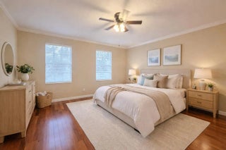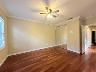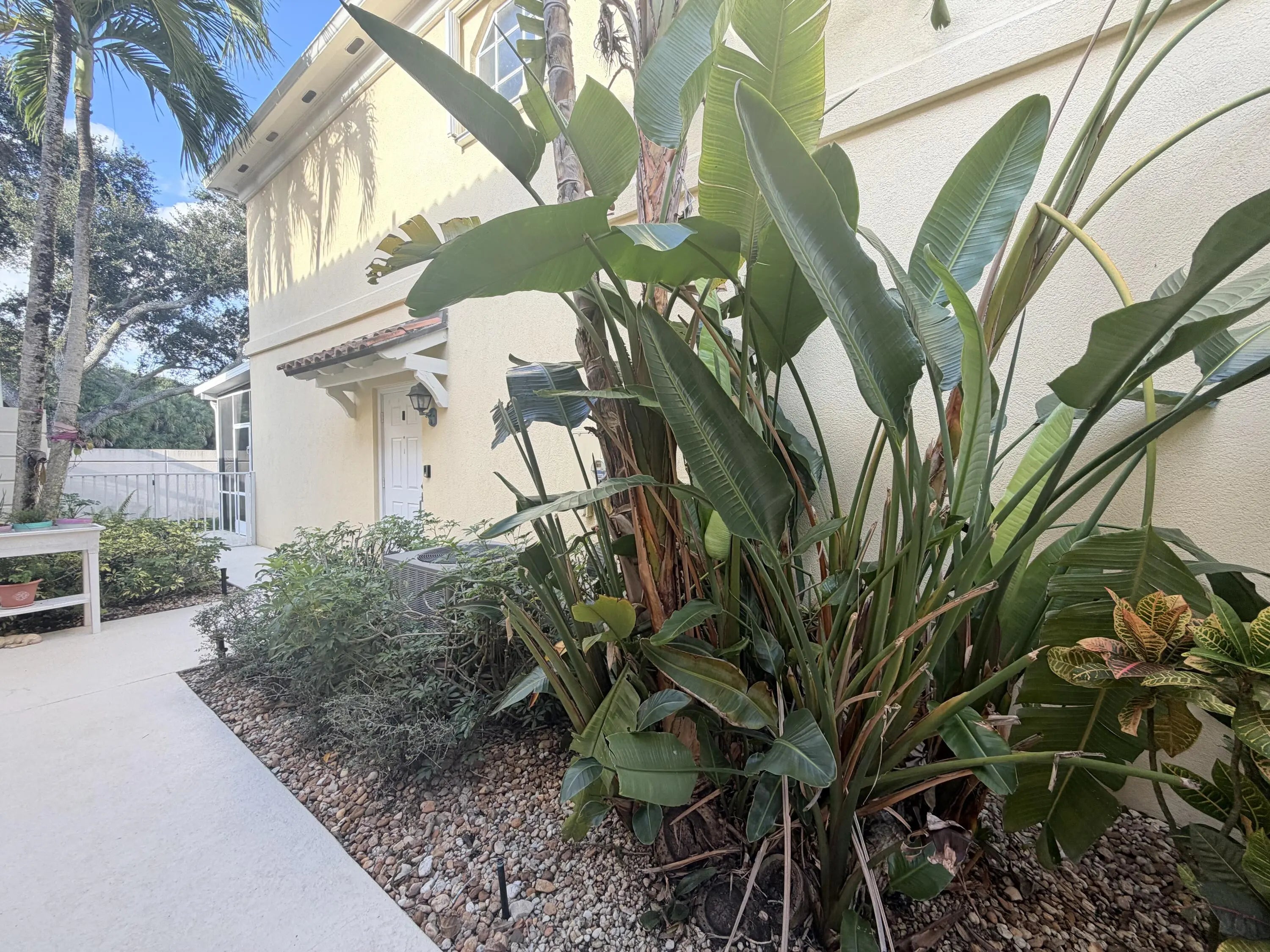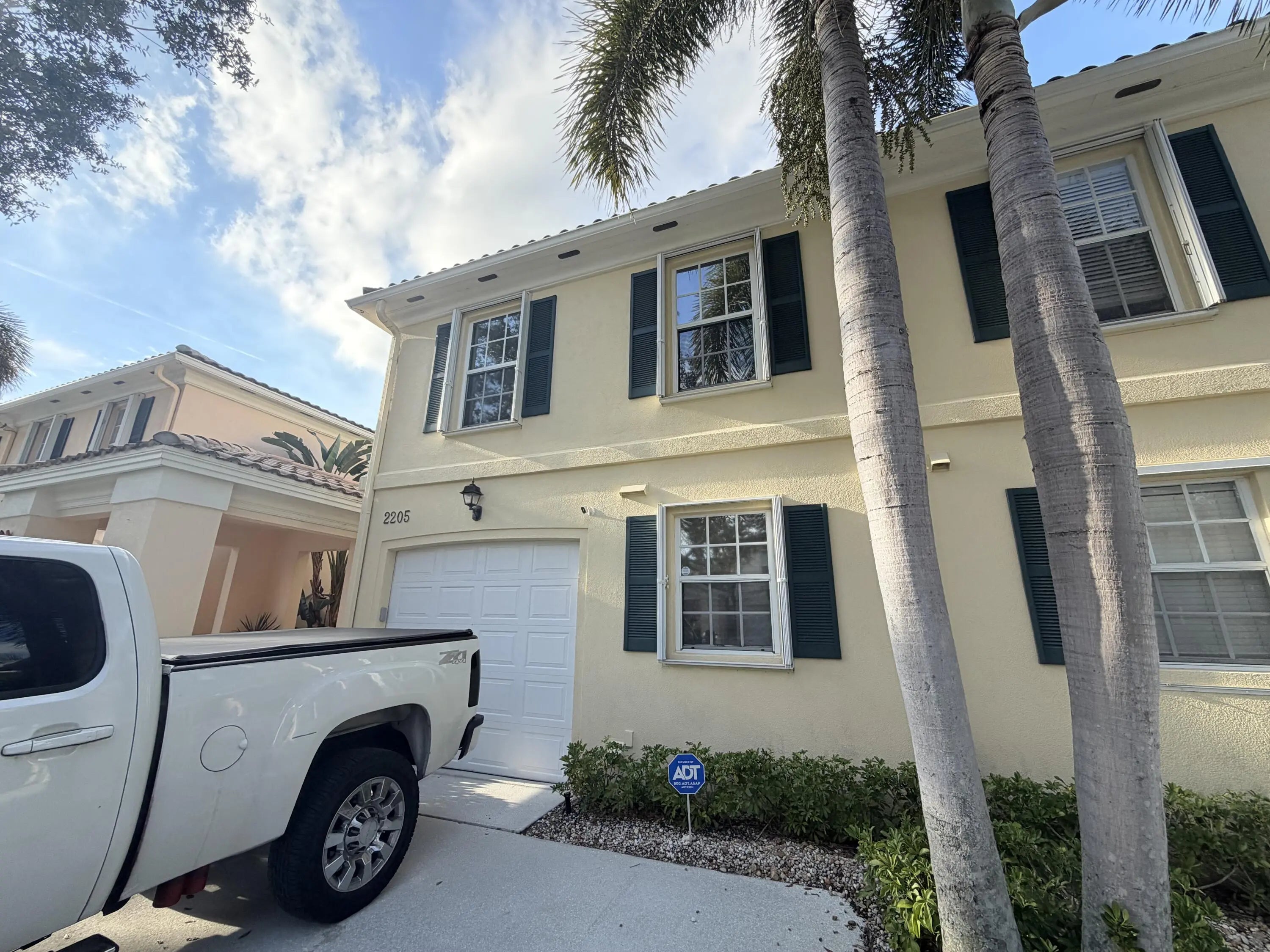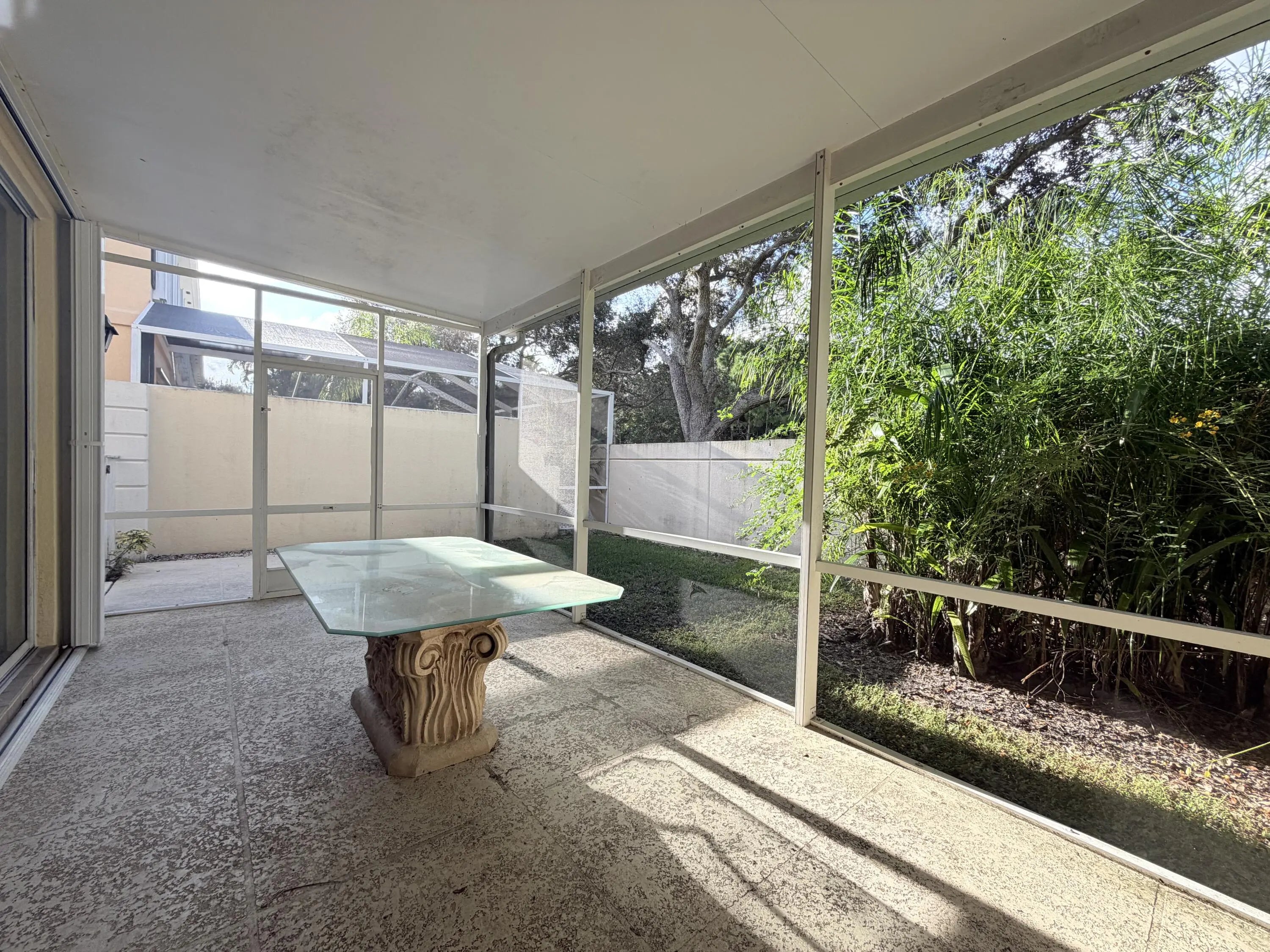 Beautifully maintained townhouse located in the highly sought-after community of Riverwalk. This spacious 3-bedroom, 2.5-bath home features a one-car garage plus two additional driveway spaces. The first floor offers tile flooring throughout, a laundry room with a basin sink, and a half bathroom. Large sliding doors open to a screened patio overlooking a generous backyard where pools are permitted. The kitchen is pristine with barstool seating, seamlessly flowing into an expansive living area perfect for entertaining or relaxing. Upstairs features real wood flooring, a large primary suite with a walk-in closet, double vanity, separate shower, and soaking tub. Two additional bedrooms and a full bathroom complete the second floor. Accordion shutters provide full storm protection, & cable