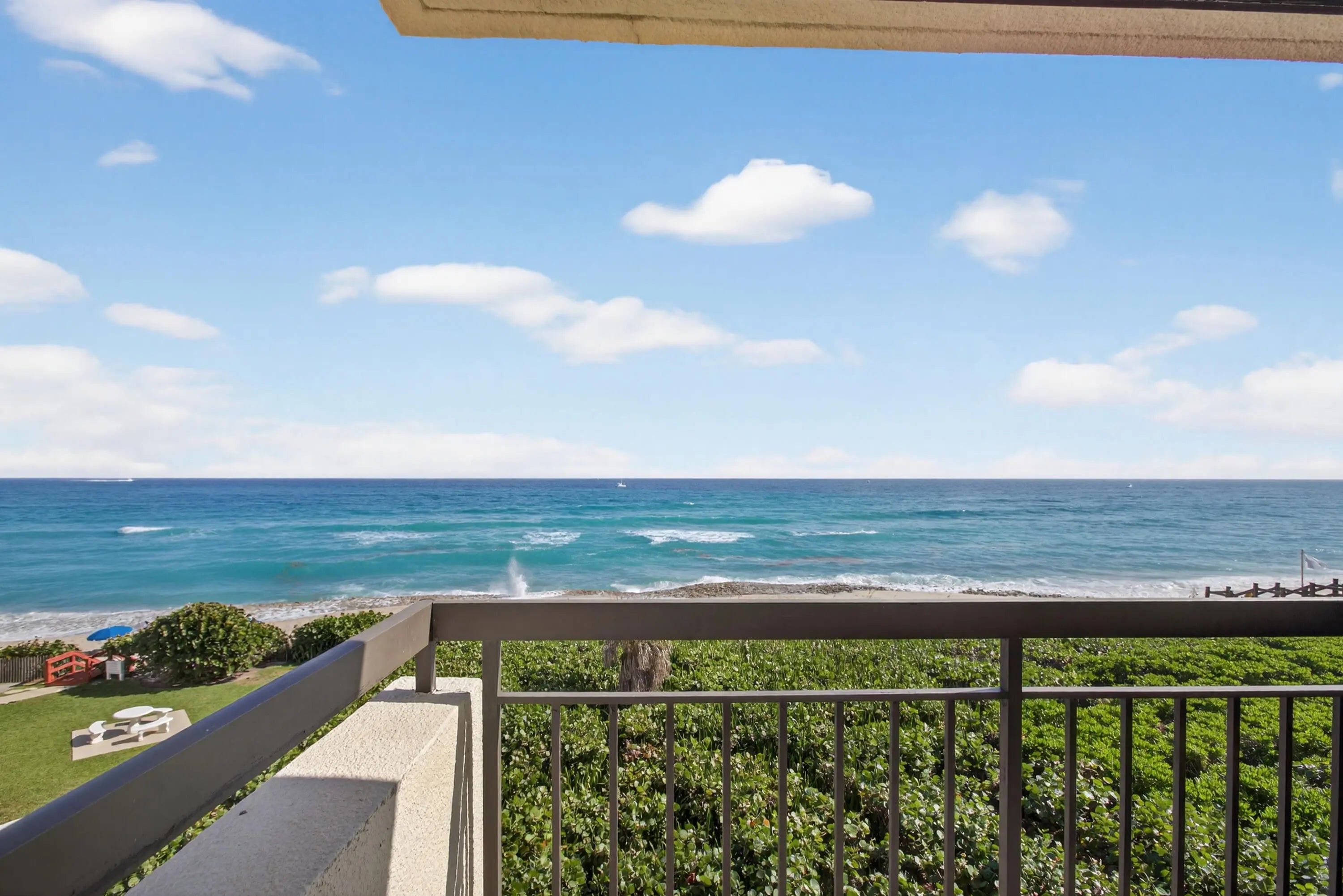 Enjoy spectacular sweeping oceanfront views from this rare and highly sought-after 3rd-floor Beach House residence at the Martinique. Offering 2,220 sq. ft. of interior living space, this unit is one of only 12 exclusive Beach House homes, seldom available for sale.Residents enjoy private beach access with year-round manned service, along with a soon-to-be-completed modern highly awaited pool deck. Exceptional amenity package including a fitness center, tennis courts, concierge services, on-site security, library, club room, billiards room, business/conference center and underground parking. Full impact windows along with hurricane shutters Inside, the residence features spacious rooms, upgraded primary suite with Jacuzzi tub, and sweeping ocean views from the main living areas.