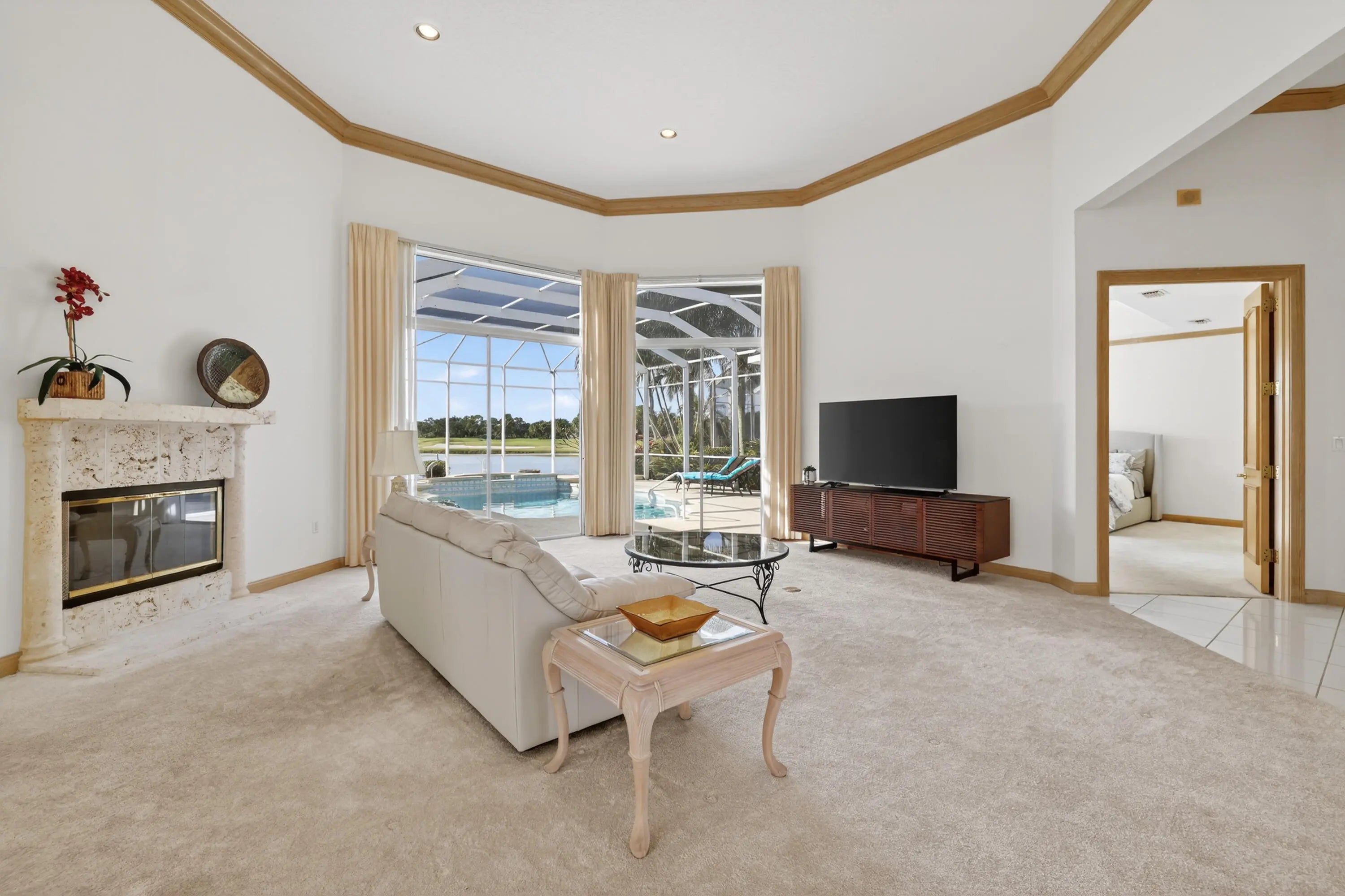 (Accepting Backup Offers)Sweeping Water and golf views, with stunning sunsets and 67 slip marina. NEW ROOF, 2 A/C units in this Spacious 3350 sq ft 3BR + office pool home, which includes 3 full/2 half baths in the prestigous, gated BALLANTRAE community. Set on the St Lucie River with access to yacht club, private golf course and numerous community amenities. Features 12-ft ceilings, crown molding, fireplace, and an open kitchen/living area leading to the screened pool and spa overlooking wide water views.The primary suite offers two large walk-in closets with jacuzzi. and 2 guest BRs each with ensuite bathrooms. A dedicated office provides an ideal work-from-home space. Enjoy resort style living in this exceptional property.