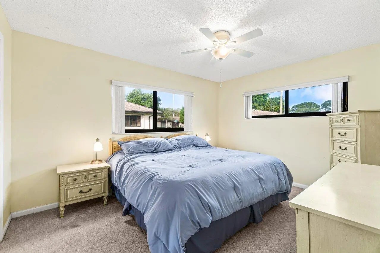 Step into this cozy yet bright 2-bedroom, 2-bath residence featuring modern impact windows and doors and a 1-car garage complemented by an exceptional long driveway accommodating two additional vehicles. Natural light fills the home, highlighting the inviting Florida room, perfect for relaxing or entertaining.The primary suite offers impressive storage with a walk-in closet, grab closet, and linen closet, creating a well-organized and functional retreat. The kitchen showcases white cabinetry, granite countertops, and a clean, timeless design that opens seamlessly to the living space.Ideally located just steps from the clubhouse and community pool, this home blends comfort, convenience in the center of Boynton Beach surrounded by dining and nearby shopping.