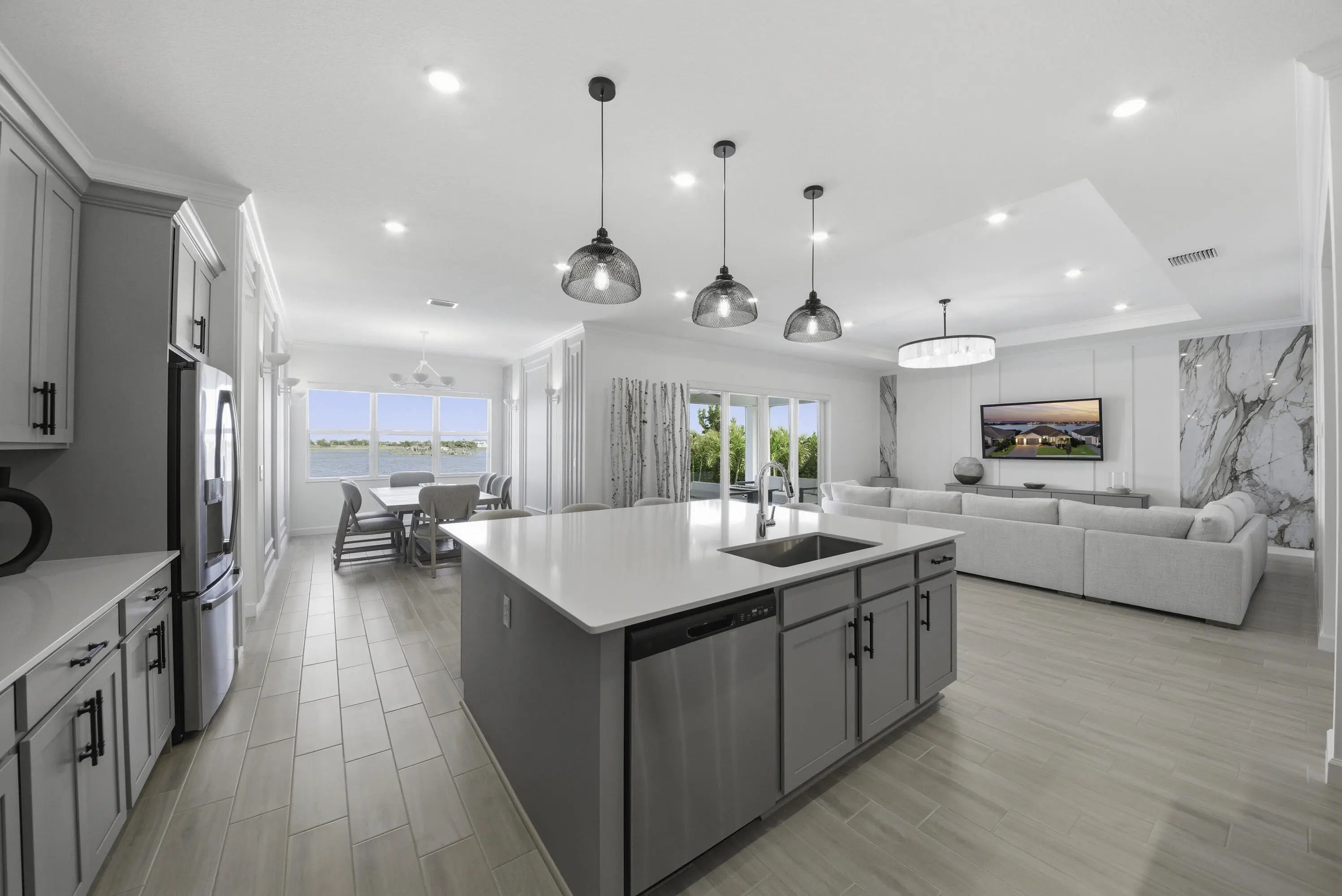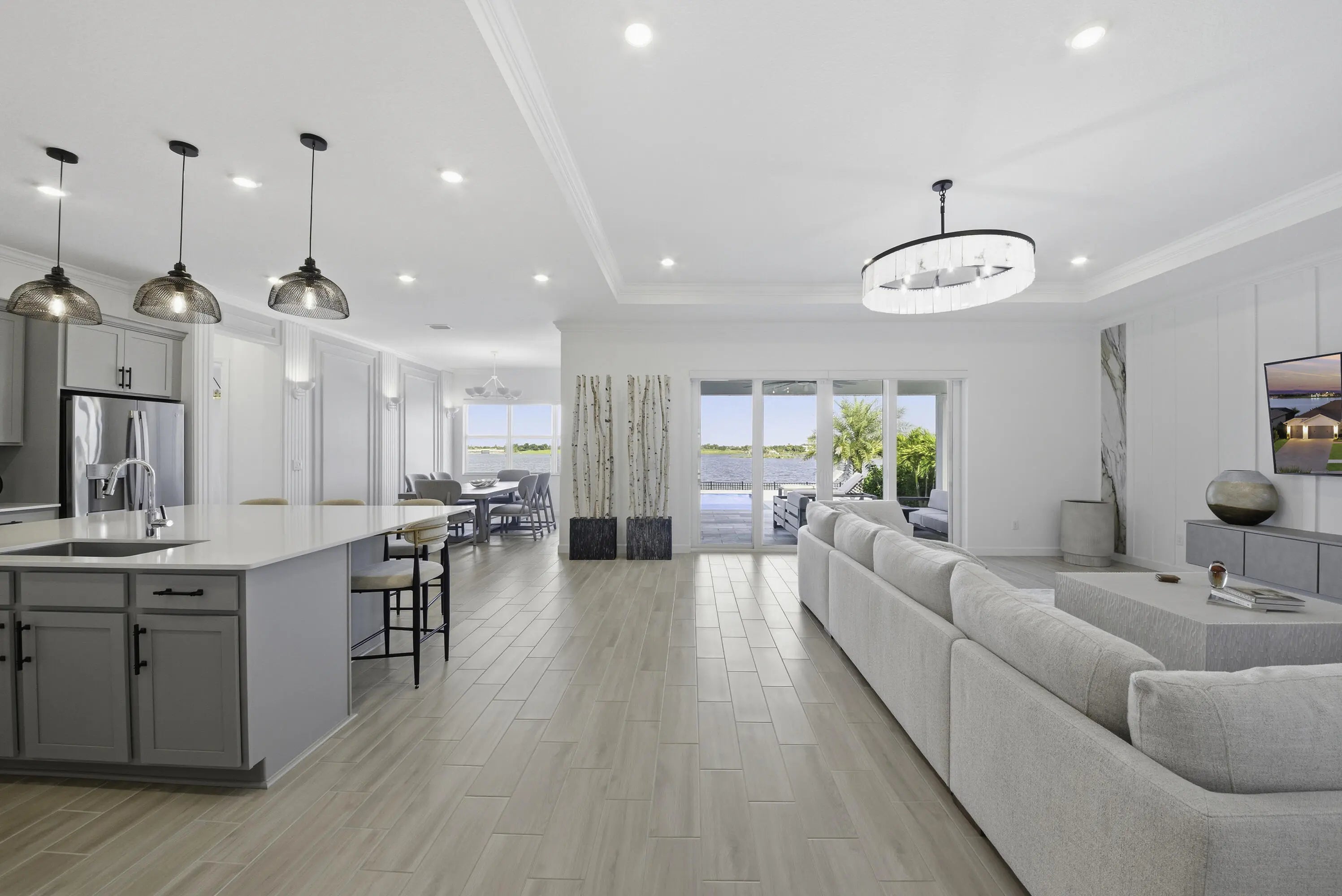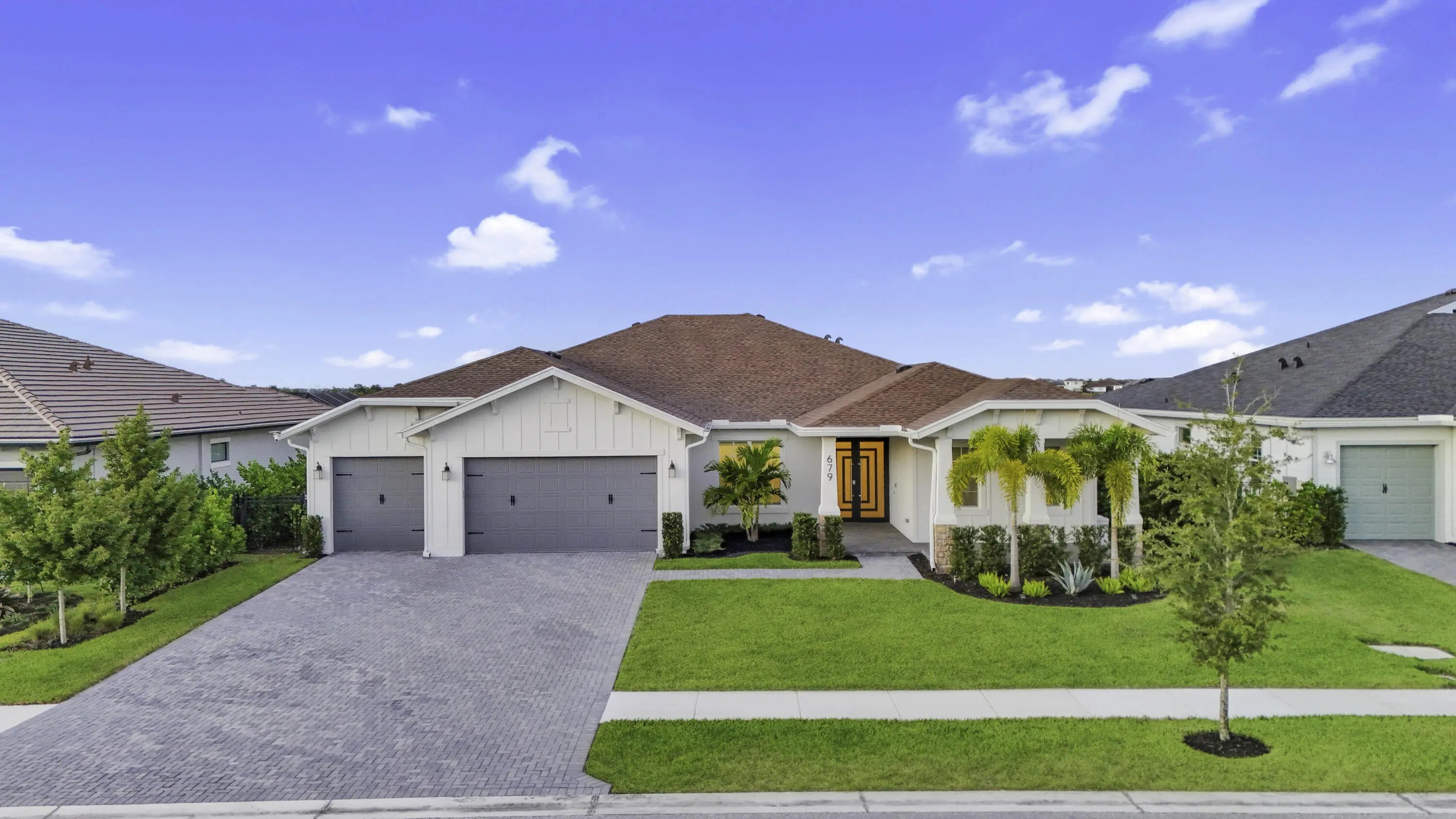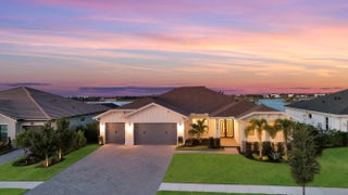 Experience exceptional luxury and comfort in this fully customized 4-bedroom residence, complete with a private office/den and 3.5 baths. From the welcoming front porch to the breathtaking lake views, this home showcases thoughtful design at every turn. Enjoy peace of mind with impact windows, a whole-house generator, whole-house surge protector, mosquito misting system, and a natural gas tankless water heater--premium upgrades that elevate both convenience and lifestyle. Step inside to an elegant open floorplan enhanced by crown molding, high hat lighting, and meticulously curated finishes. The layout includes a sophisticated formal dining room, spacious family room, and a versatile den. A dedicated mudroom area adds everyday practicality.
