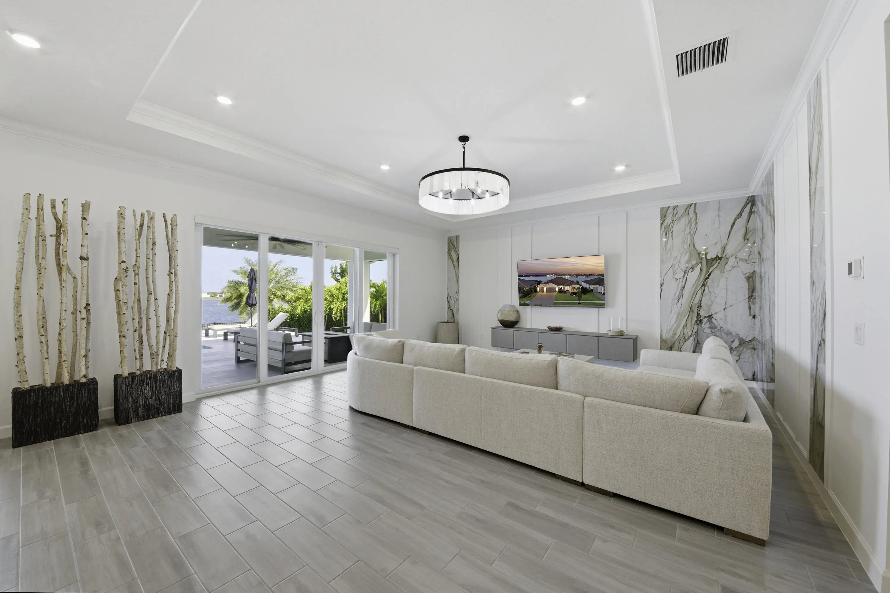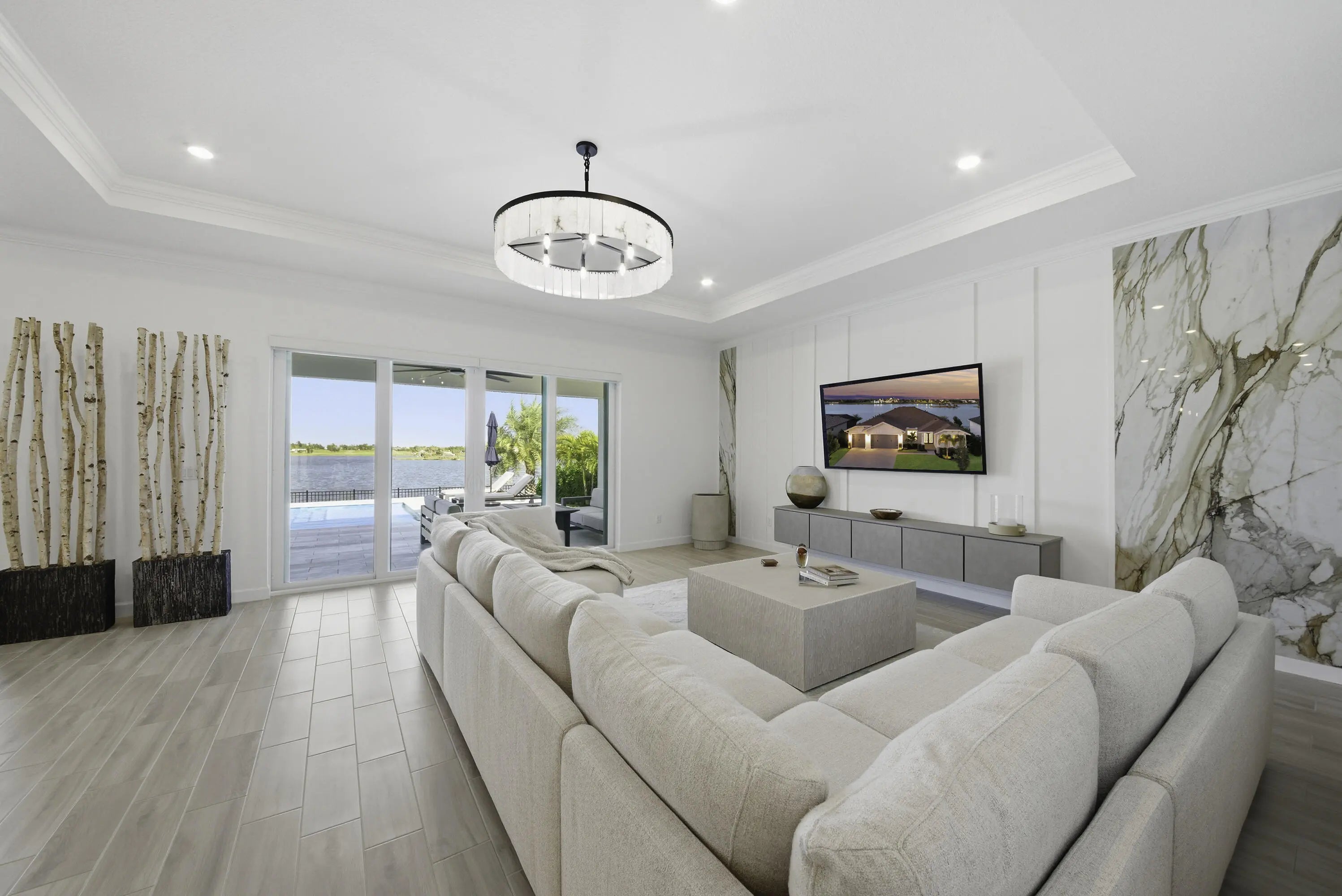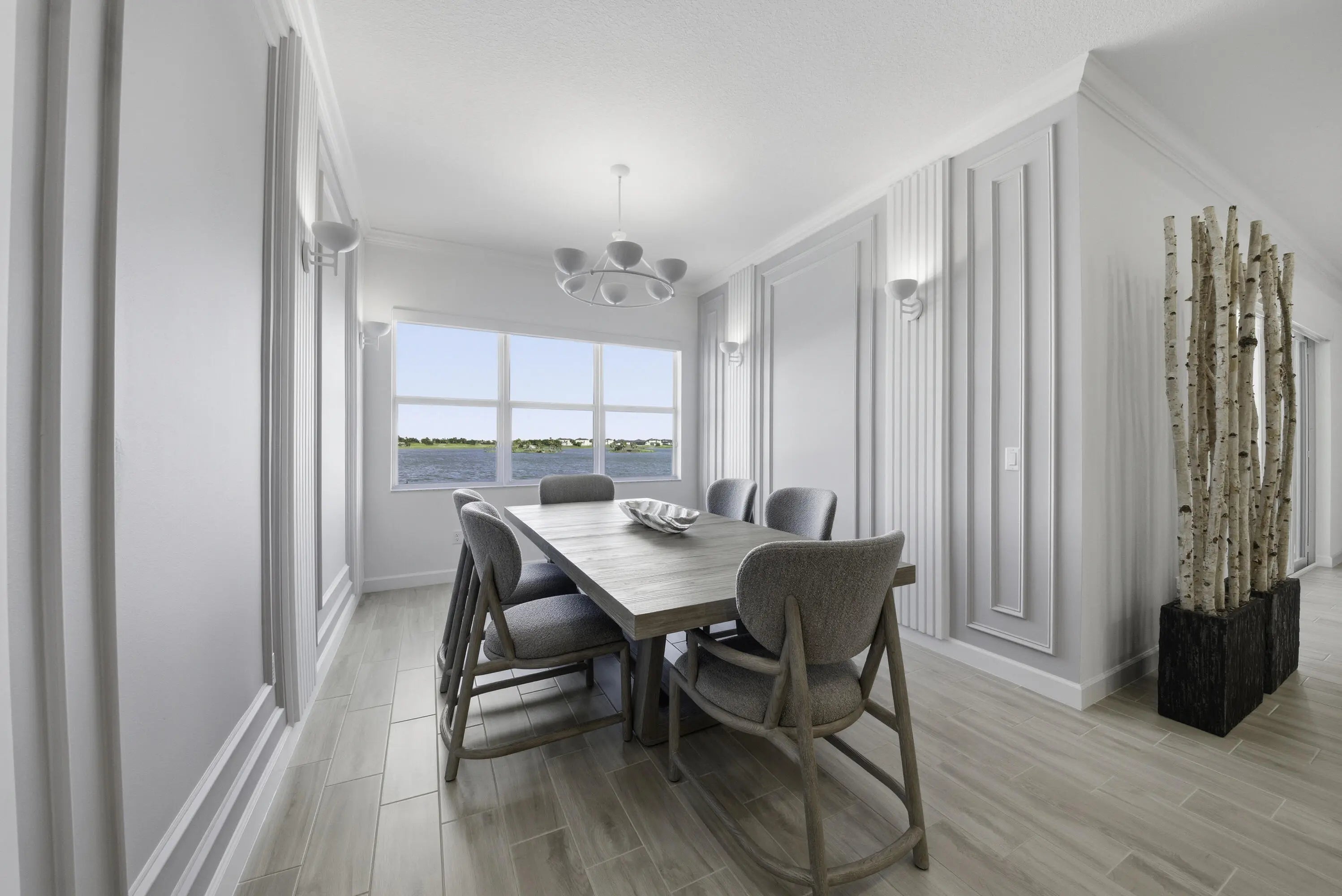 Experience exceptional luxury and comfort in this fully customized 4-bedroom residence, complete with a private office/den and 3.5 baths. From the welcoming front porch to the breathtaking lake views, this home showcases thoughtful design at every turn. Enjoy peace of mind with impact windows, a whole-house generator, whole-house surge protector, mosquito misting system, and a natural gas tankless water heater--premium upgrades that elevate both convenience and lifestyle. Step inside to an elegant open floorplan enhanced by crown molding, high hat lighting, and meticulously curated finishes. The layout includes a sophisticated formal dining room, spacious family room, and a versatile den. A dedicated mudroom area adds everyday practicality.