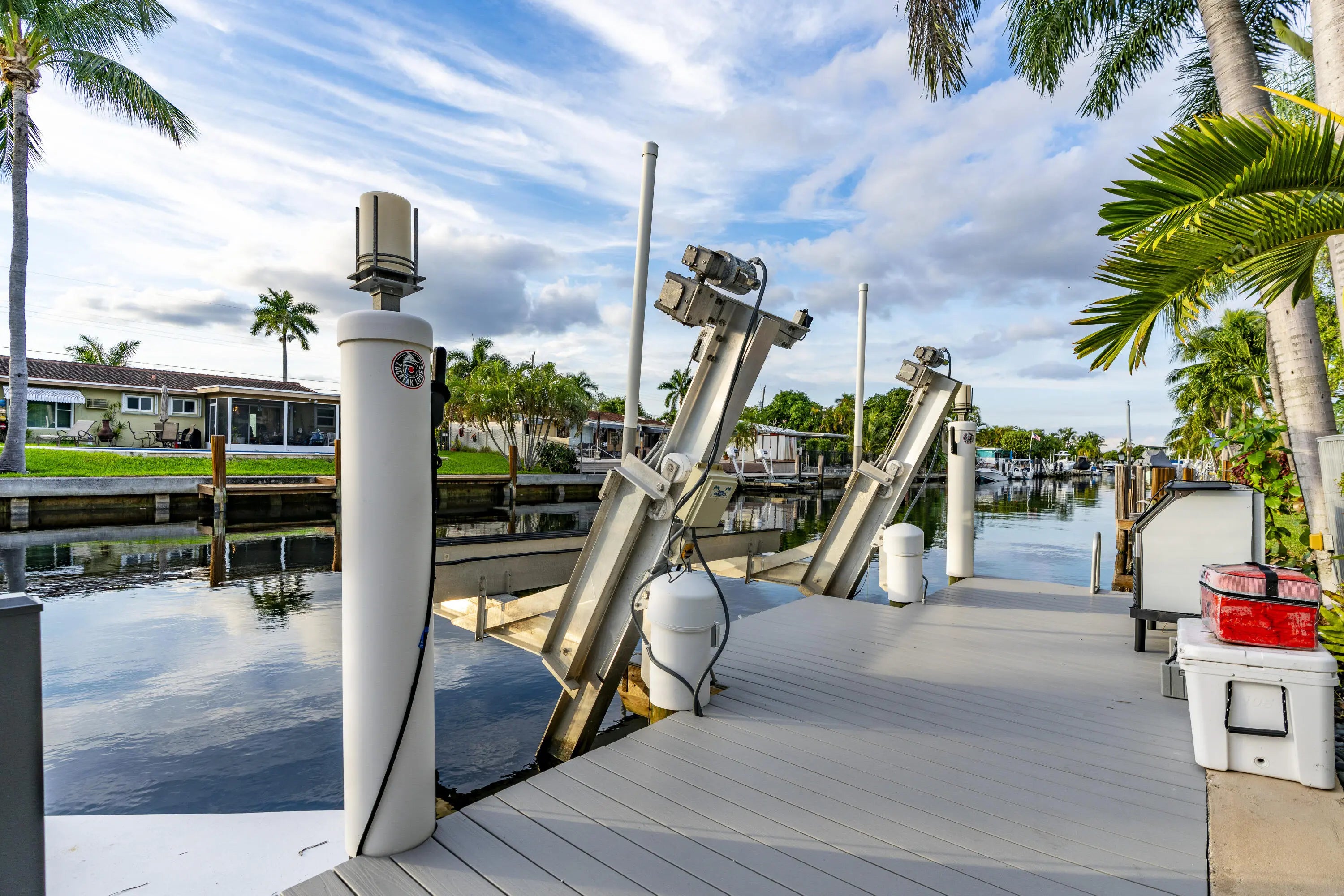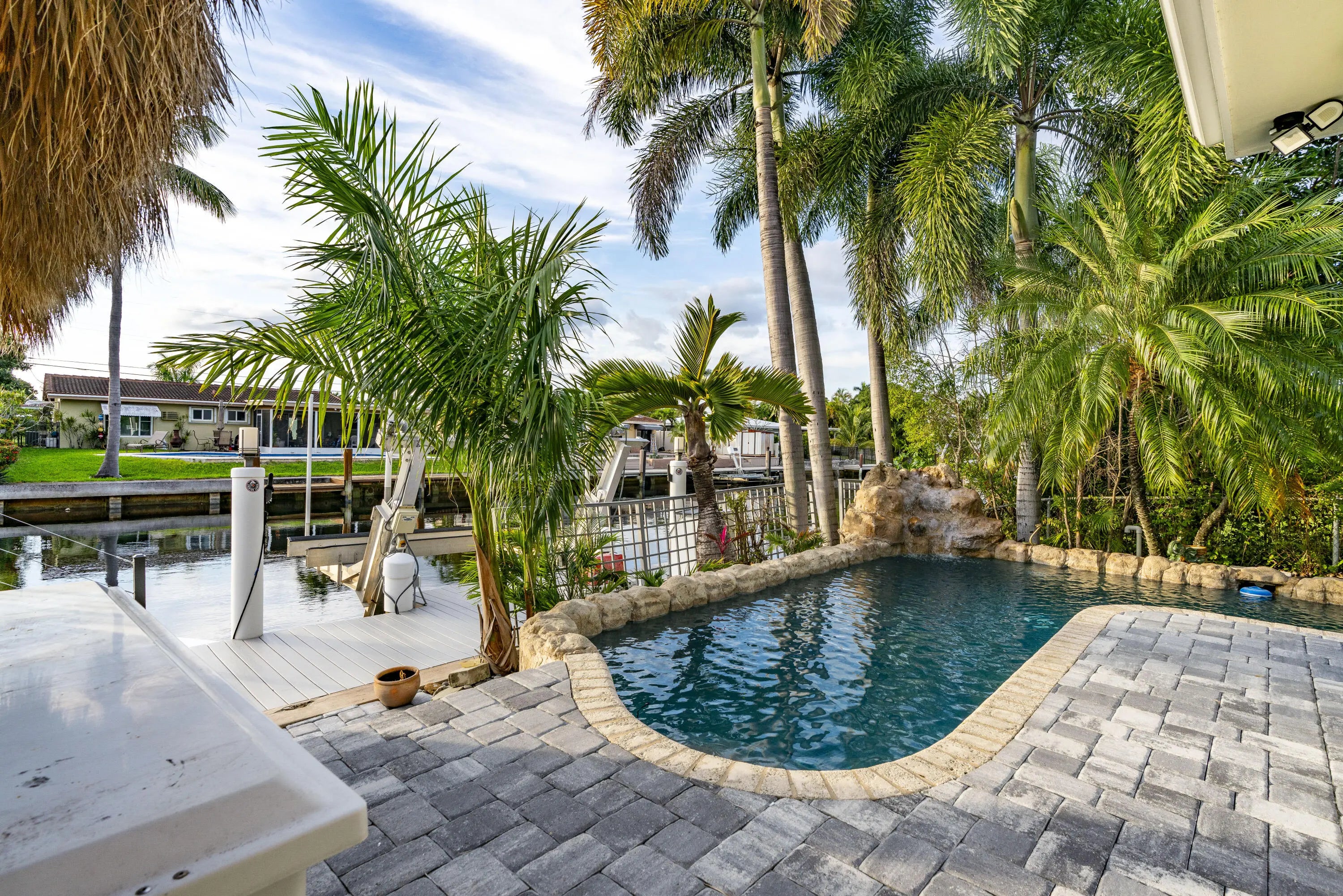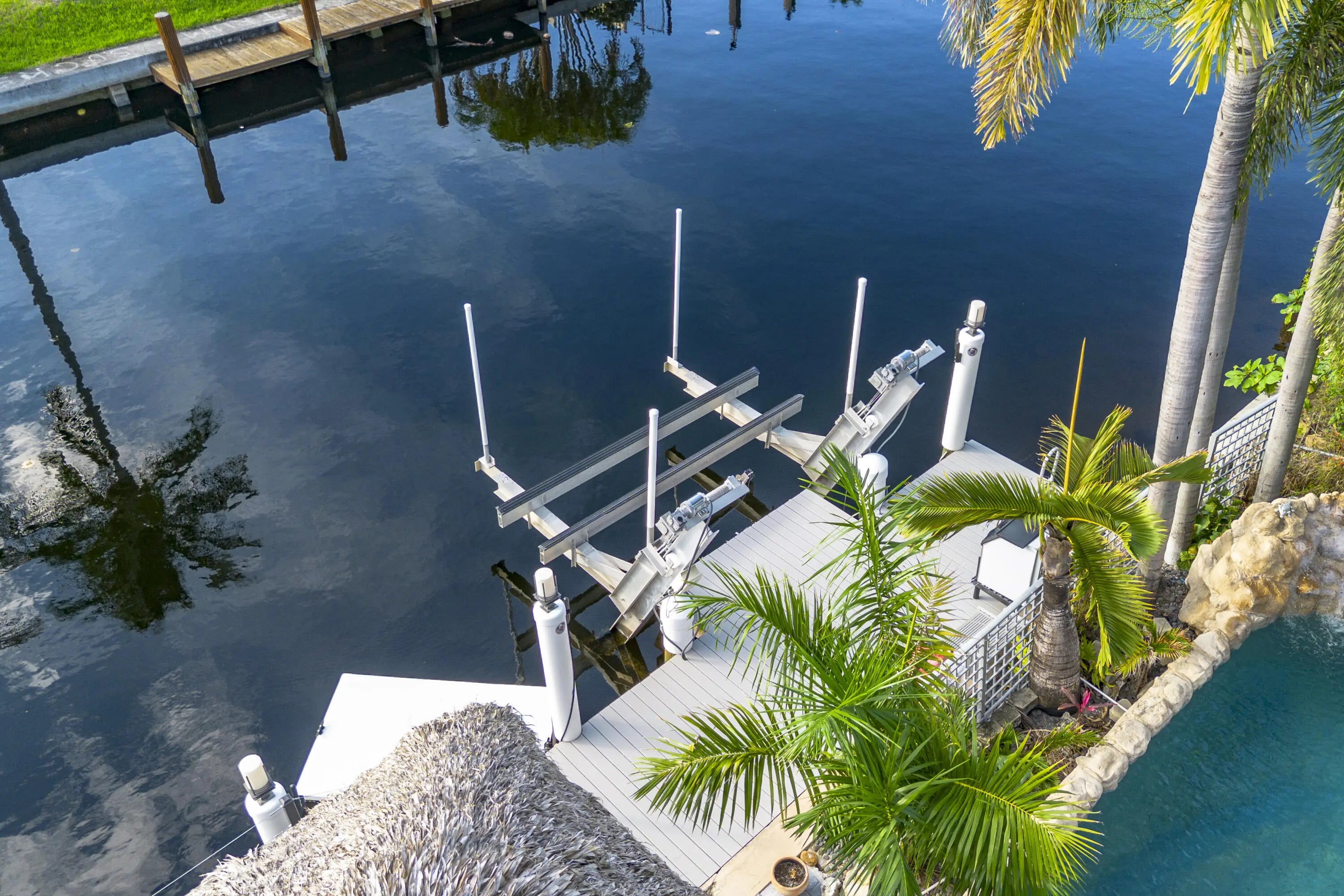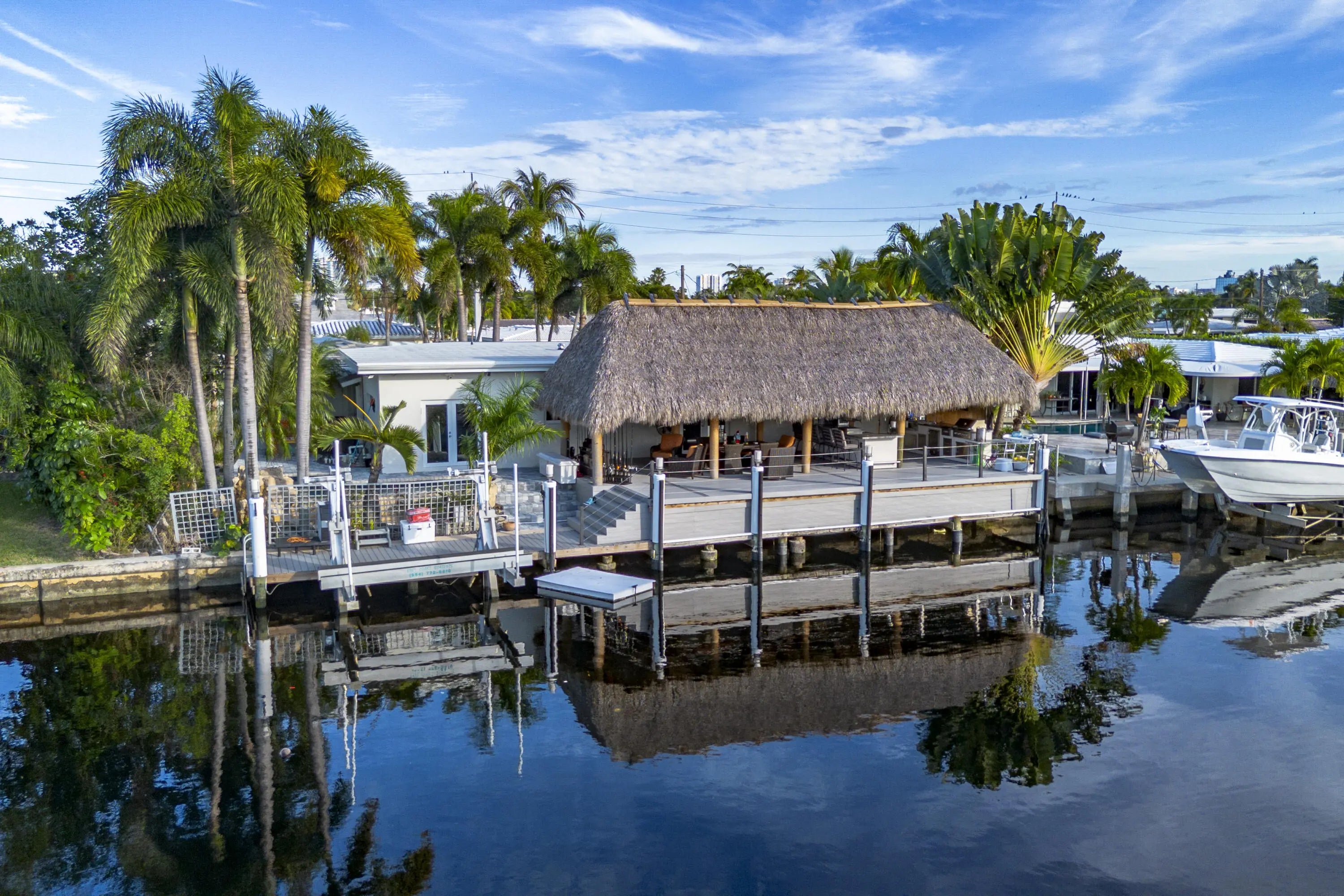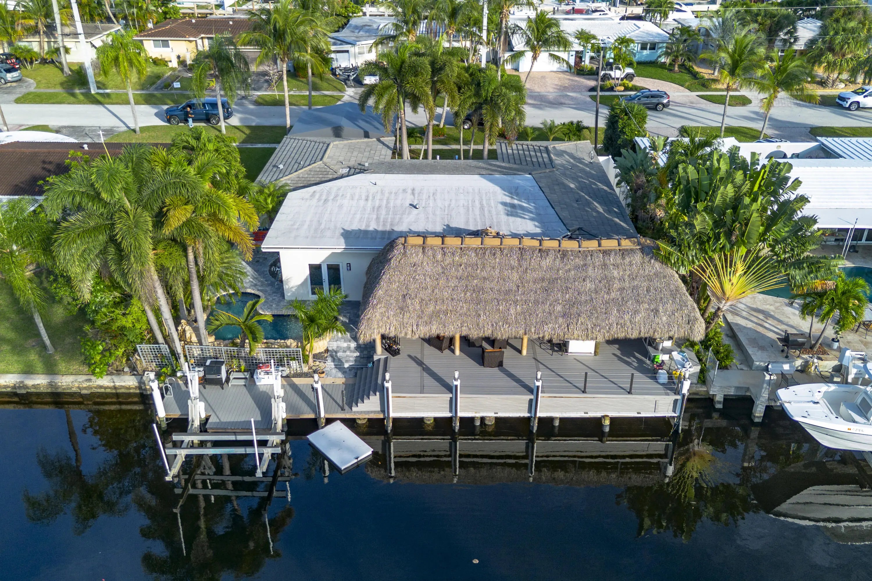 PARADISE, PERFECTED.This extraordinary waterfront estate is a rare convergence of refined design, uncompromising craftsmanship, and effortless coastal living. Upon arrival, the home captivates immediately--an expansive, newly reimagined open-concept interior frames uninterrupted views of the deep-water canal, drawing the eye straight through to your private 75' dock and brand-new 15K LB boat lift.Completely taken down to the studs and rebuilt, this residence offers peace of mind and modern luxury throughout. A new 38' steel support beam allows for soaring ceilings, while impact-rated doors and windows, new walls, electrical, plumbing, and natural gas lines reflect a level of renovation rarely found. The gourmet kitchen is a showpiece--high-end stainless appliances, professional hood