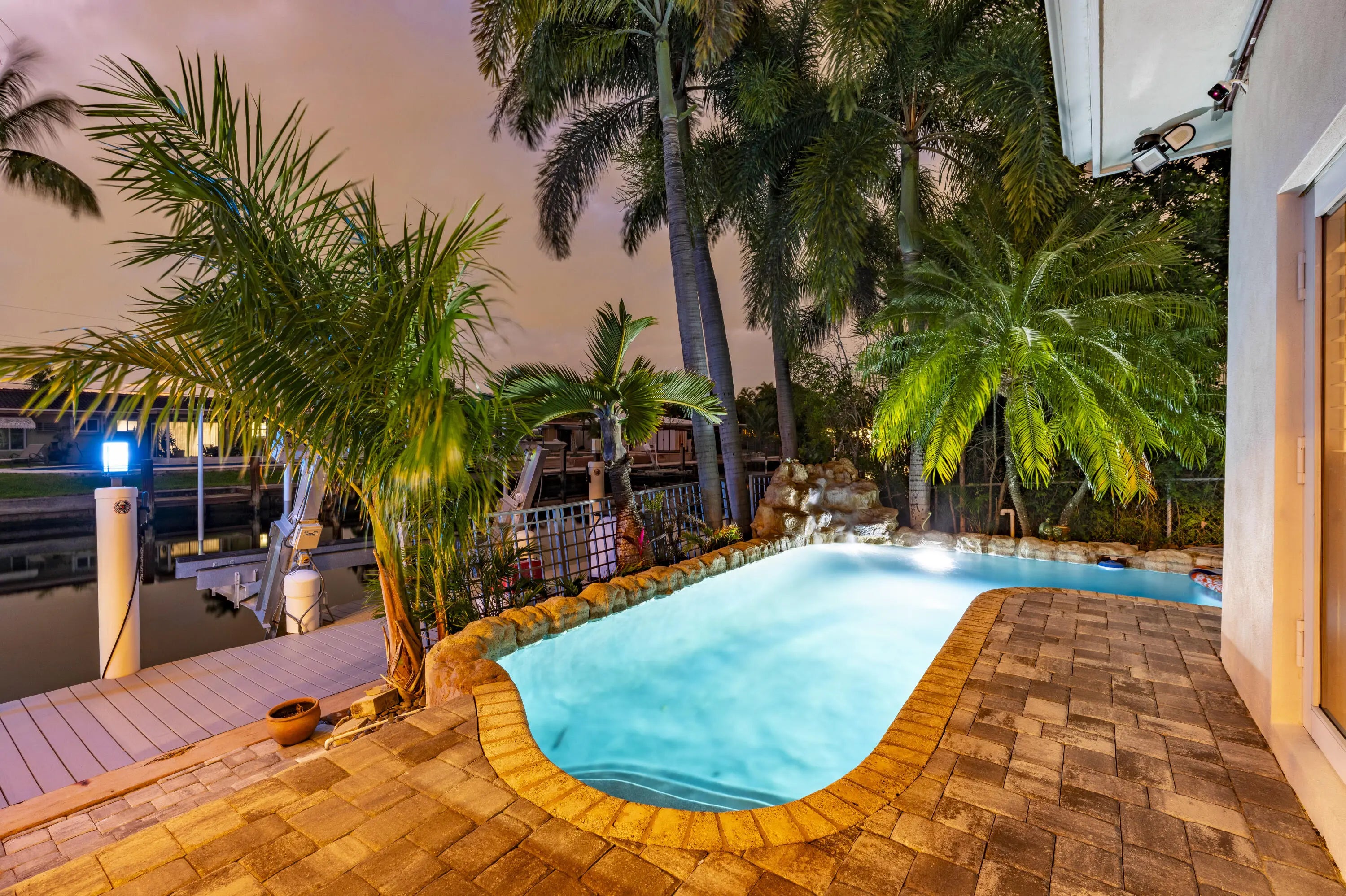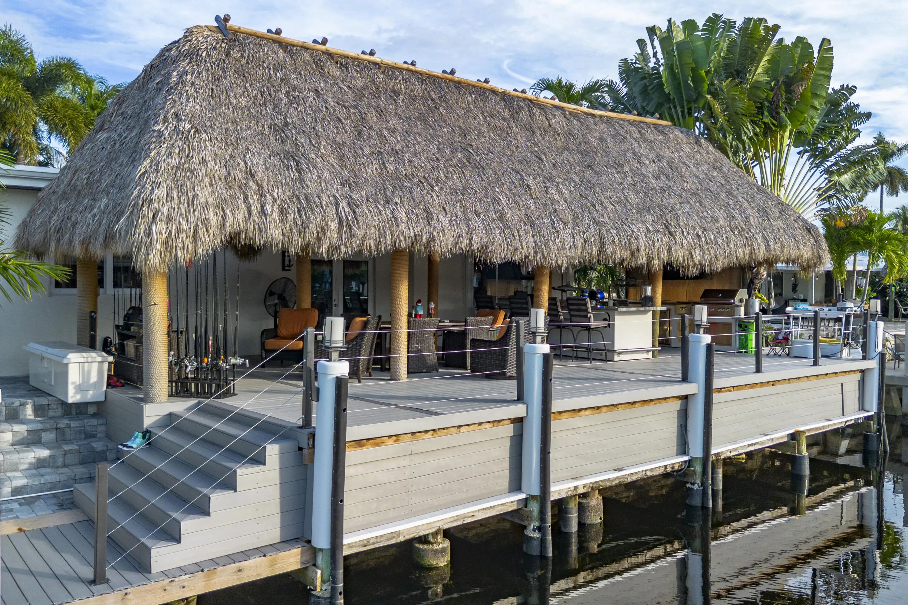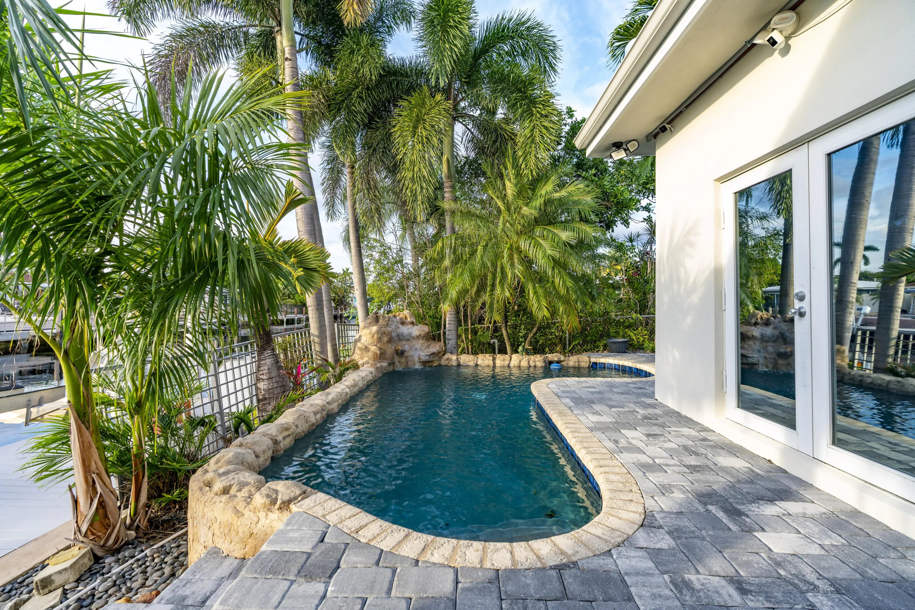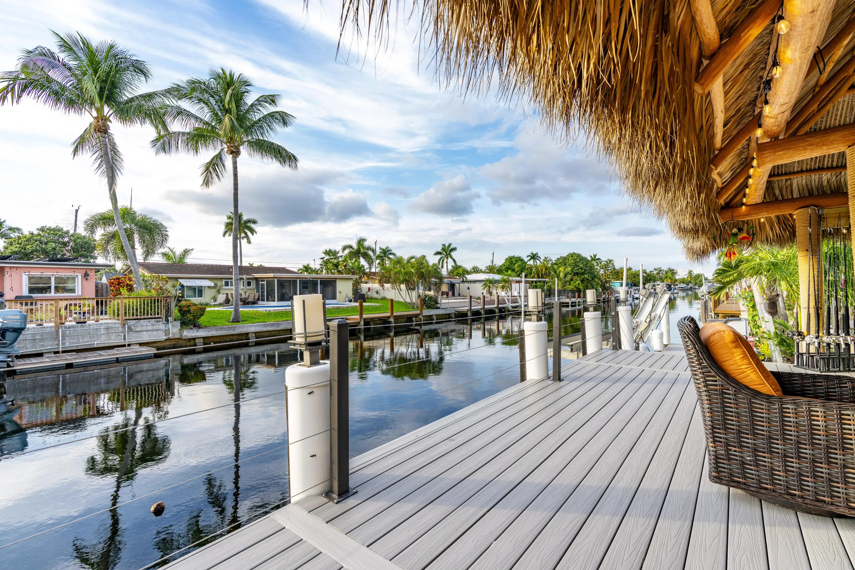 PARADISE, PERFECTED.This extraordinary waterfront estate is a rare convergence of refined design, uncompromising craftsmanship, and effortless coastal living. Upon arrival, the home captivates immediately--an expansive, newly reimagined open-concept interior frames uninterrupted views of the deep-water canal, drawing the eye straight through to your private 75' dock and brand-new 15K LB boat lift.Completely taken down to the studs and rebuilt, this residence offers peace of mind and modern luxury throughout. A new 38' steel support beam allows for soaring ceilings, while impact-rated doors and windows, new walls, electrical, plumbing, and natural gas lines reflect a level of renovation rarely found. The gourmet kitchen is a showpiece--high-end stainless appliances, professional hood