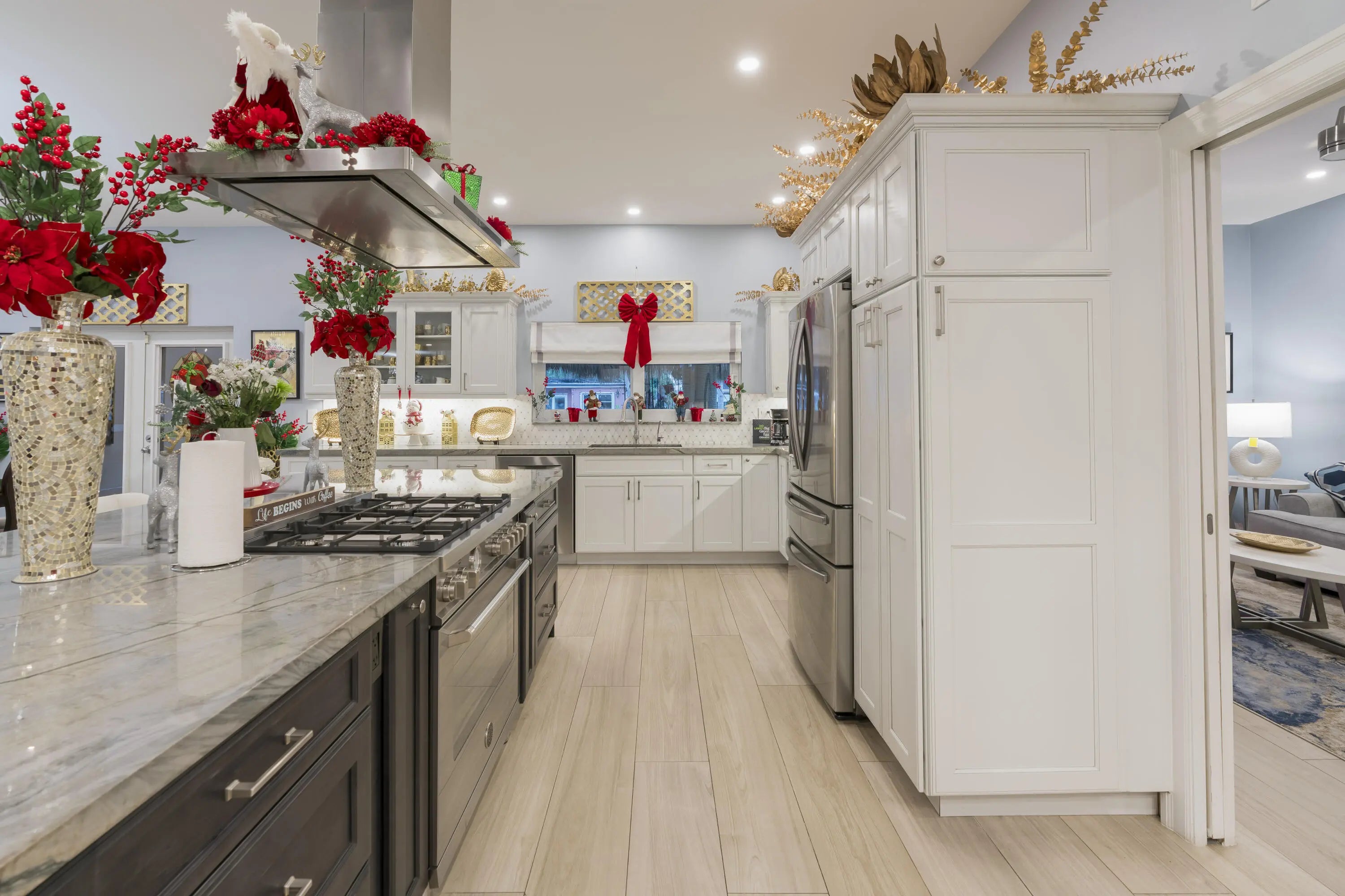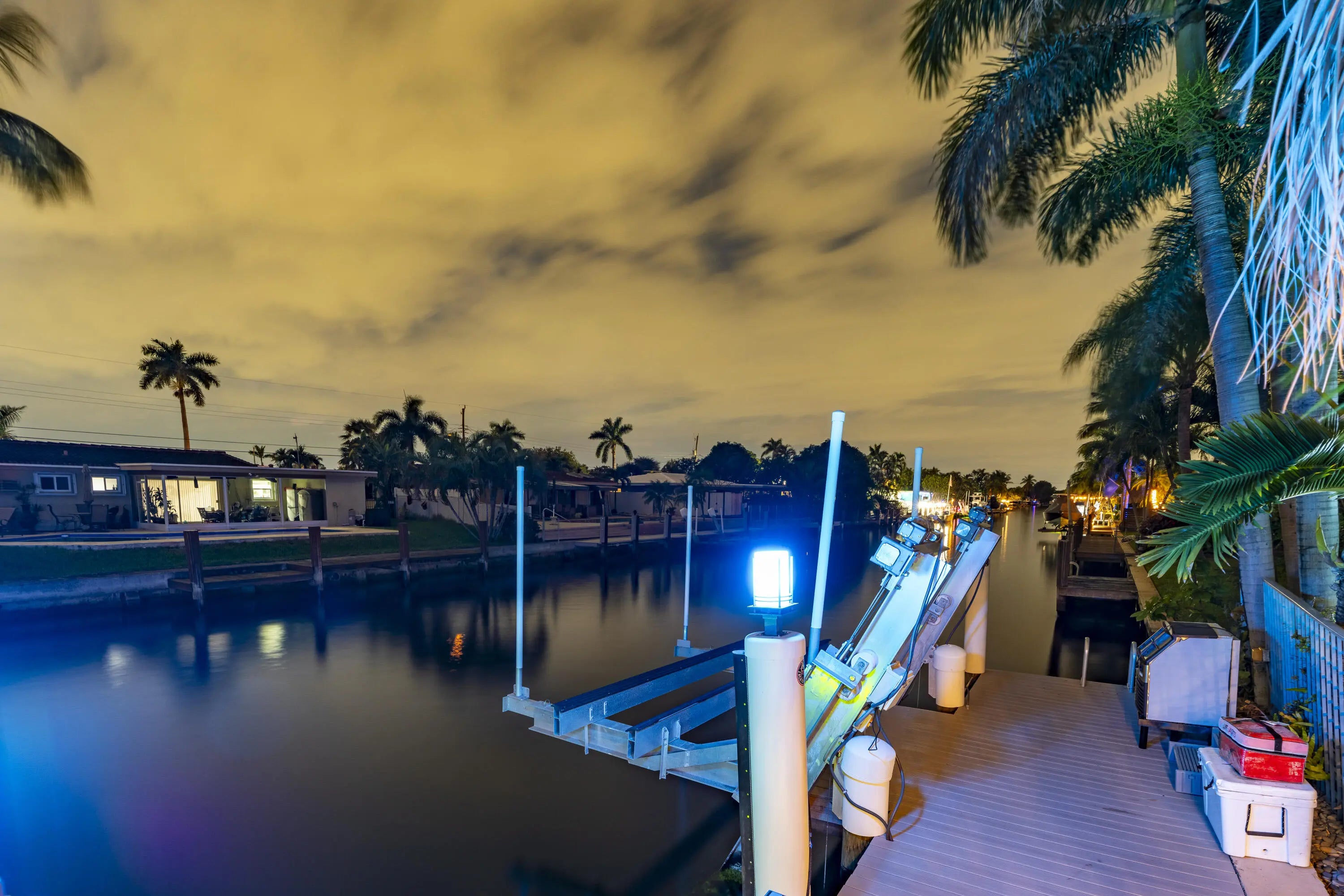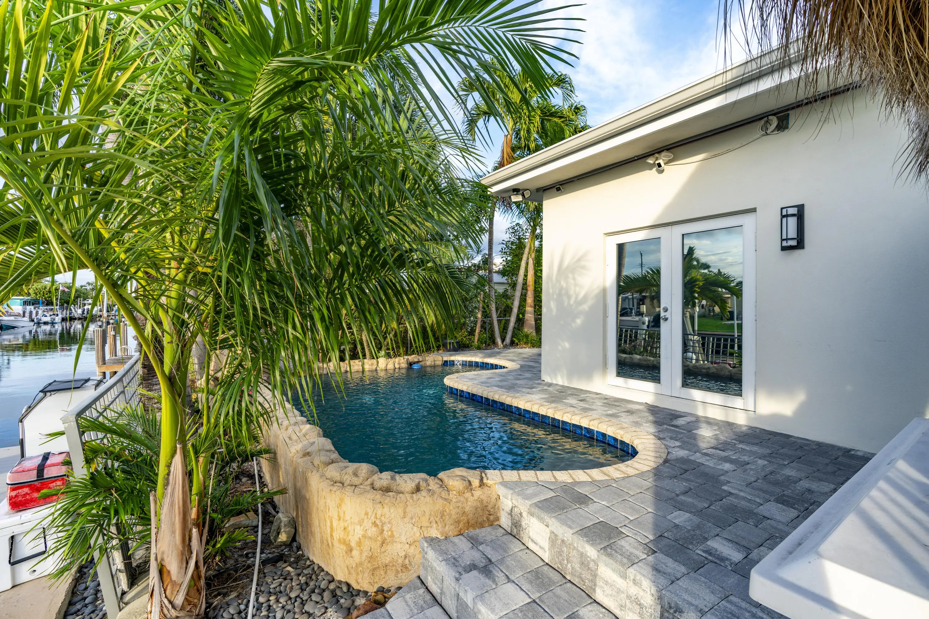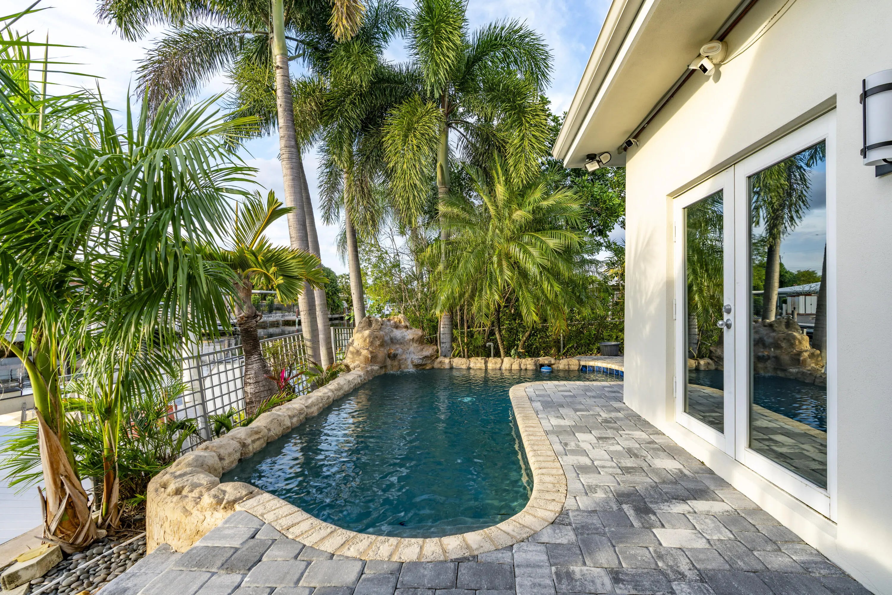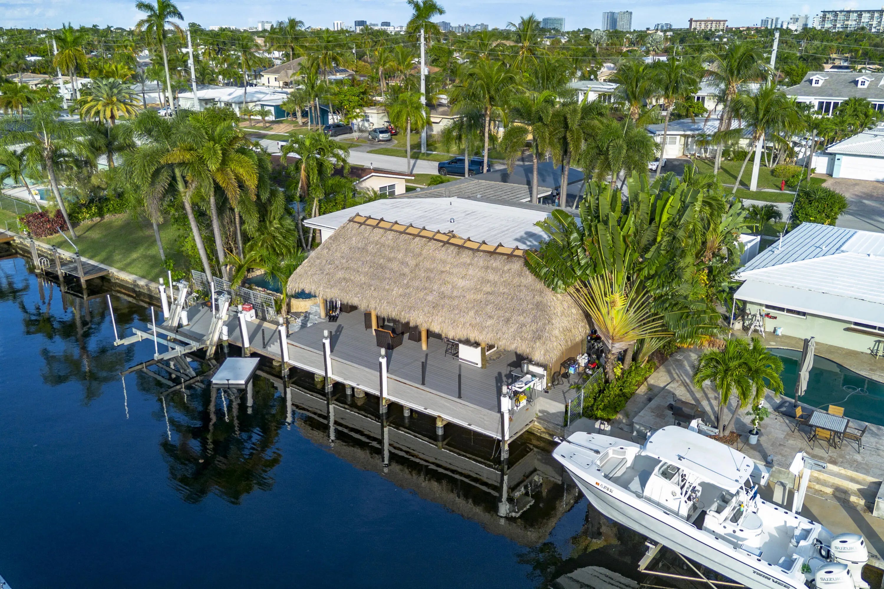 PARADISE, PERFECTED.This extraordinary waterfront estate is a rare convergence of refined design, uncompromising craftsmanship, and effortless coastal living. Upon arrival, the home captivates immediately--an expansive, newly reimagined open-concept interior frames uninterrupted views of the deep-water canal, drawing the eye straight through to your private 75' dock and brand-new 15K LB boat lift.Completely taken down to the studs and rebuilt, this residence offers peace of mind and modern luxury throughout. A new 38' steel support beam allows for soaring ceilings, while impact-rated doors and windows, new walls, electrical, plumbing, and natural gas lines reflect a level of renovation rarely found. The gourmet kitchen is a showpiece--high-end stainless appliances, professional hood