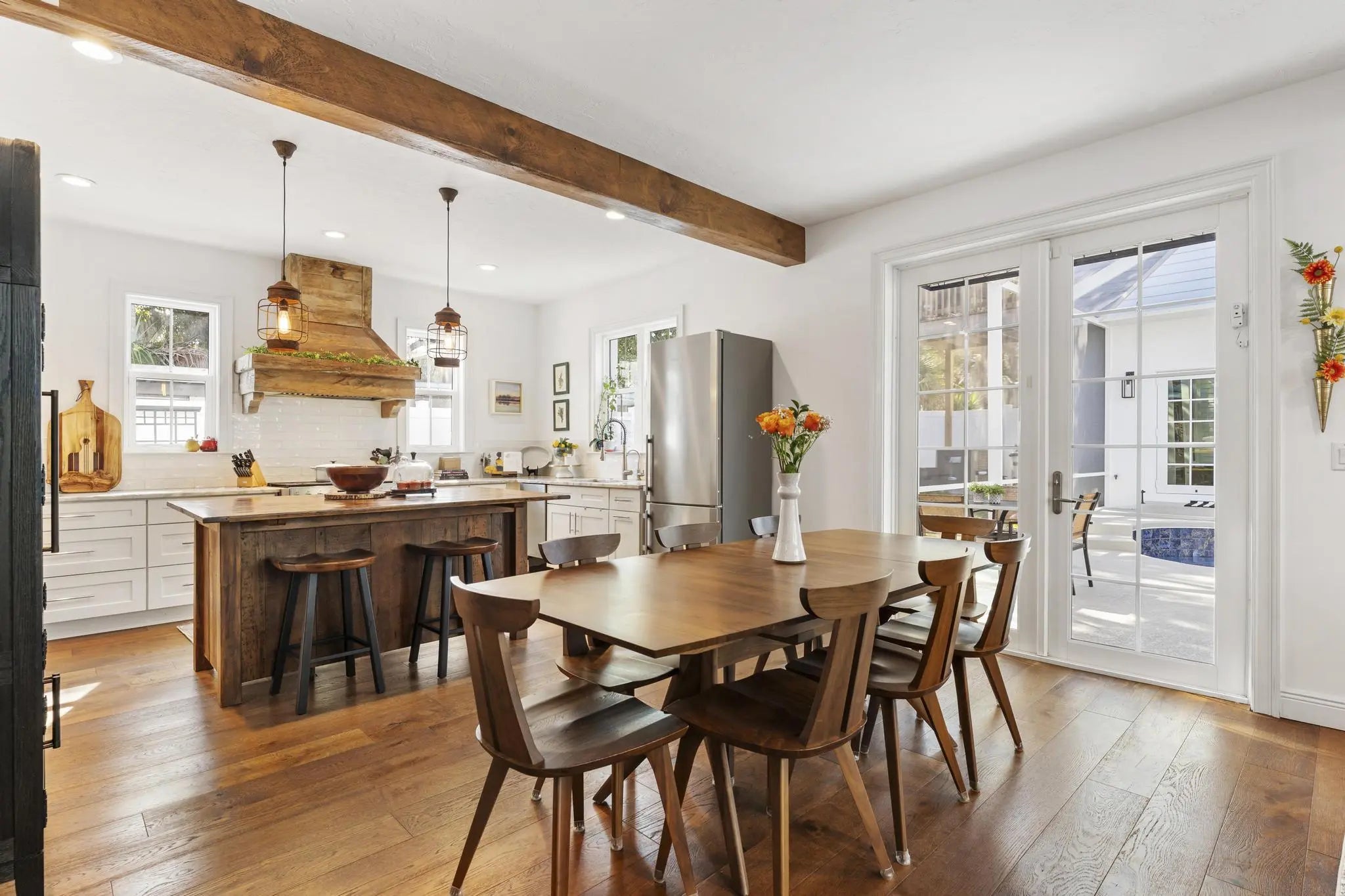 The rarest opportunity in the heart of the downtown area. Timeless property spans two street frontages and offers exceptional flexibility. Inside the main home find 4 beds, 4 full baths, a dedicated office, rich wood accents, keen woodwork, uniform flooring, & a warm, inviting design. Detail and pride of ownership is evident throughout. A screened-in 2025 pool, seldom found in downtown properties, creates a private outdoor retreat. 2023 new metal roof & impact windows/doors. Enhancing the property is a brand-new 660sf oversized garage with a 720sf 2-bedroom, 1-bath apartment, ideal for returning college students, extended family, guests, or income potential. Zoned for multiple uses, including commercial & office applications. In striking distance to downtown Stuart attractions.
