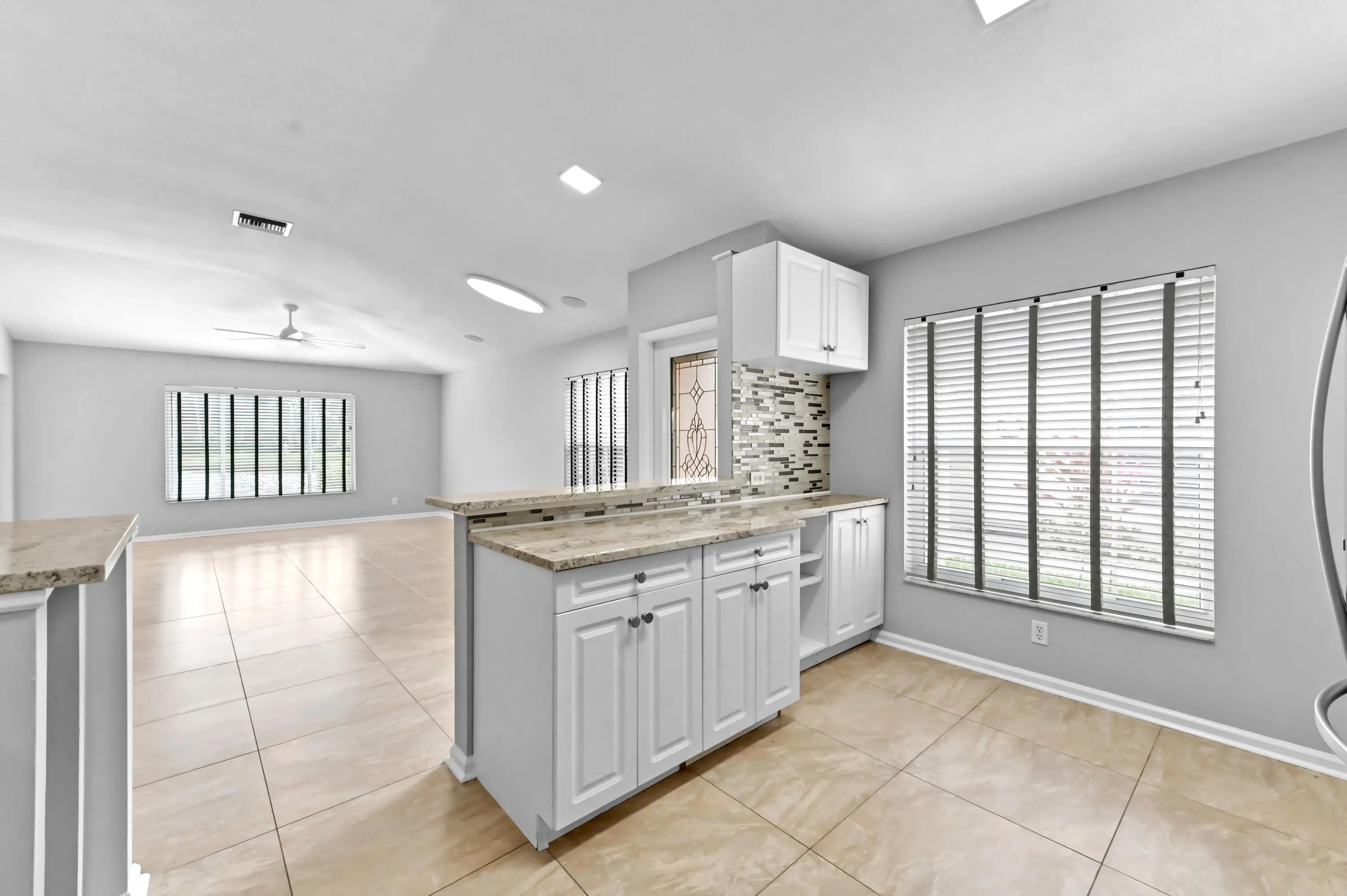Discover the perfect combination of peace of mind and modern luxury in this move-in-ready 3-bedroom, 2-bath villa, boasting a new roof (2023) and a freshly painted interior. Step inside to find a sleek home designed for easy living, centered around an open-concept kitchen featuring granite countertops and stainless steel appliances. The bathrooms have been tastefully renovated to include a spa-like Jacuzzi sit-down shower and tub, offering a daily retreat. Practicality meets comfort with a 2-car garage equipped with a privacy screen, while the covered and screened patio offers serene, uninterrupted views of the lake--the ideal spot for your morning coffee or evening relaxation.