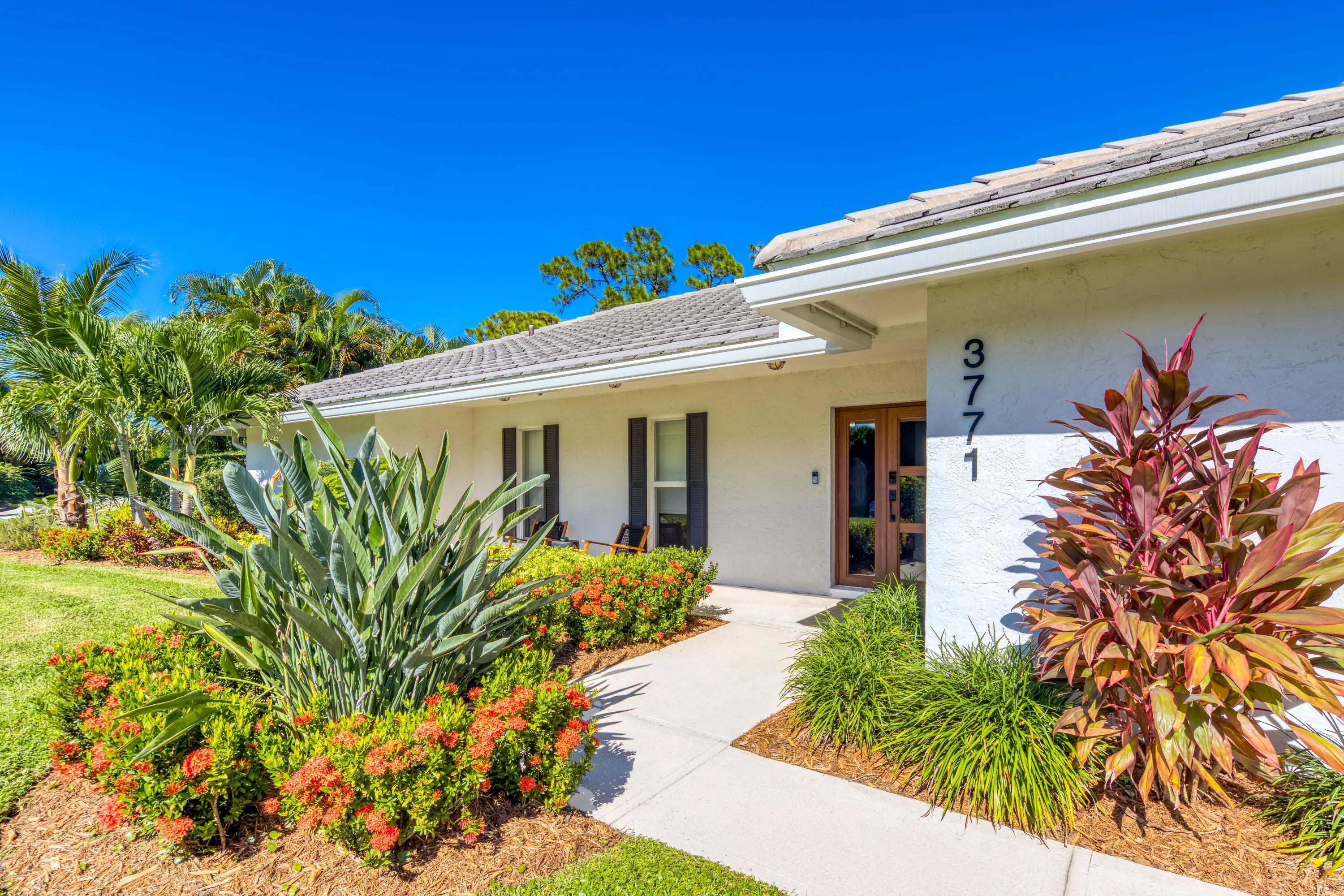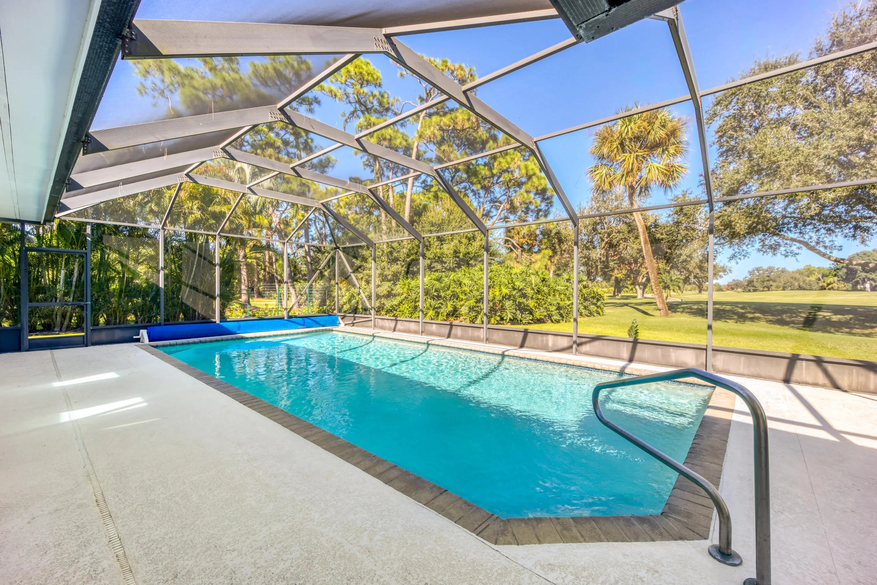 Exceptional Smart Home in Private Golf Course SettingThis beautifully upgraded smart home offers motorized shades, integrated lighting and audio, plus a full surveillance system with remote mobile access. Featuring 2,900 sq ft under air and a desirable split-bedroom floor plan, the home enjoys a private setting with no neighbors on one side and stunning golf course views of the 14th hole.Hurricane-rated impact windows and doors throughout provide peace of mind. The tile roof has a minimum 5-year remaining life (Onshore Roofing), complemented by a recently resurfaced flat roof over the lanai/Florida room. Comfort is maximized with a 4-zone A/C system (primary suite, common areas, guest wing, and Florida room).
