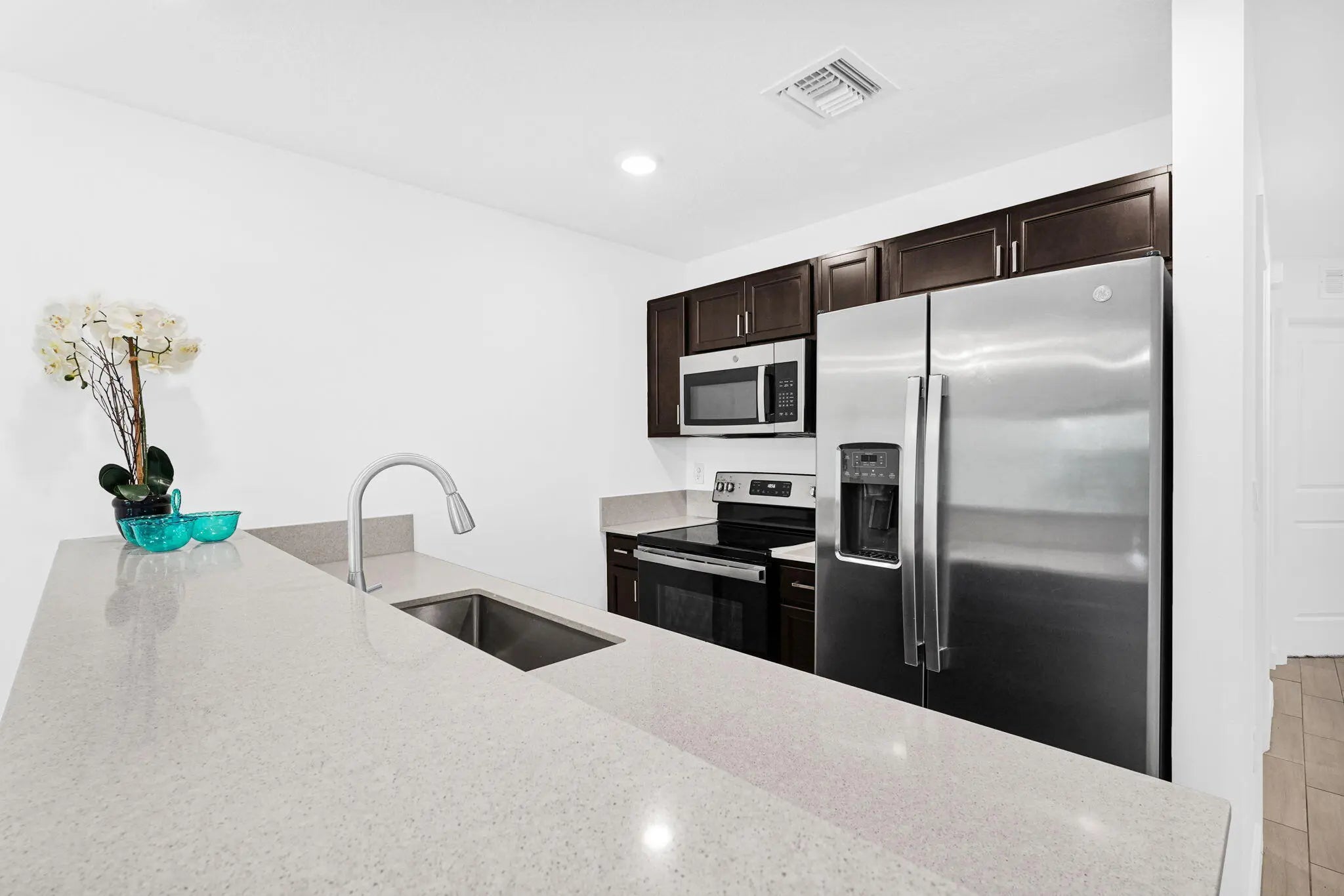Priced to sell!Negotiable motivated Seller! CORNER almost new construction Townhouse is in a gated community, minutes from I-95, Palm Beach Gardens PBI airport and shopping. This move-in-ready home offers a perfect open-air floor plan with a spacious living room and dining room area with natural light throughout. A first-floor bedroom with a full bath, plus 2 bed/2 bath upstairs. The spacious primary suite offers dual vanities and a glass-enclosed shower, while an additional loft/den area provides flexible living space. The home is fitted with hurricane impact windows and a brand-new 2021 roof, Private Storage and assigned parking space. Low HOA fees and the ability to lease immediately add to its appeal. Community offers resort-style amenity.