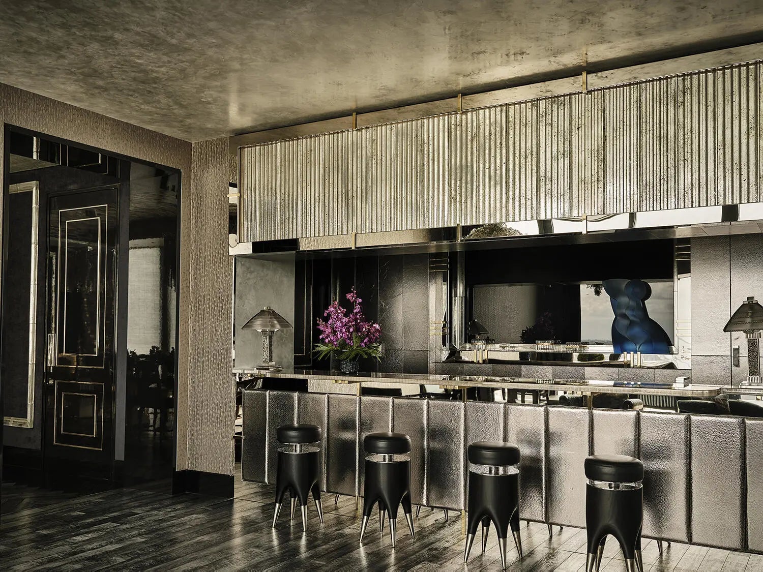 Bar, Built-in Shelves, Elevator, Foyer, Kitchen Island, Pantry, Walk-in Closet, Wet Bar