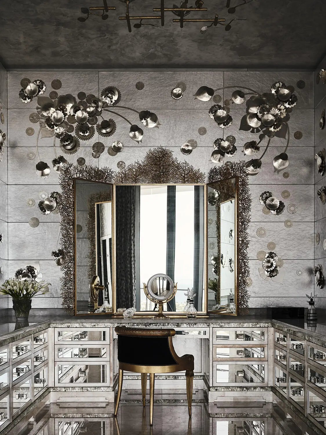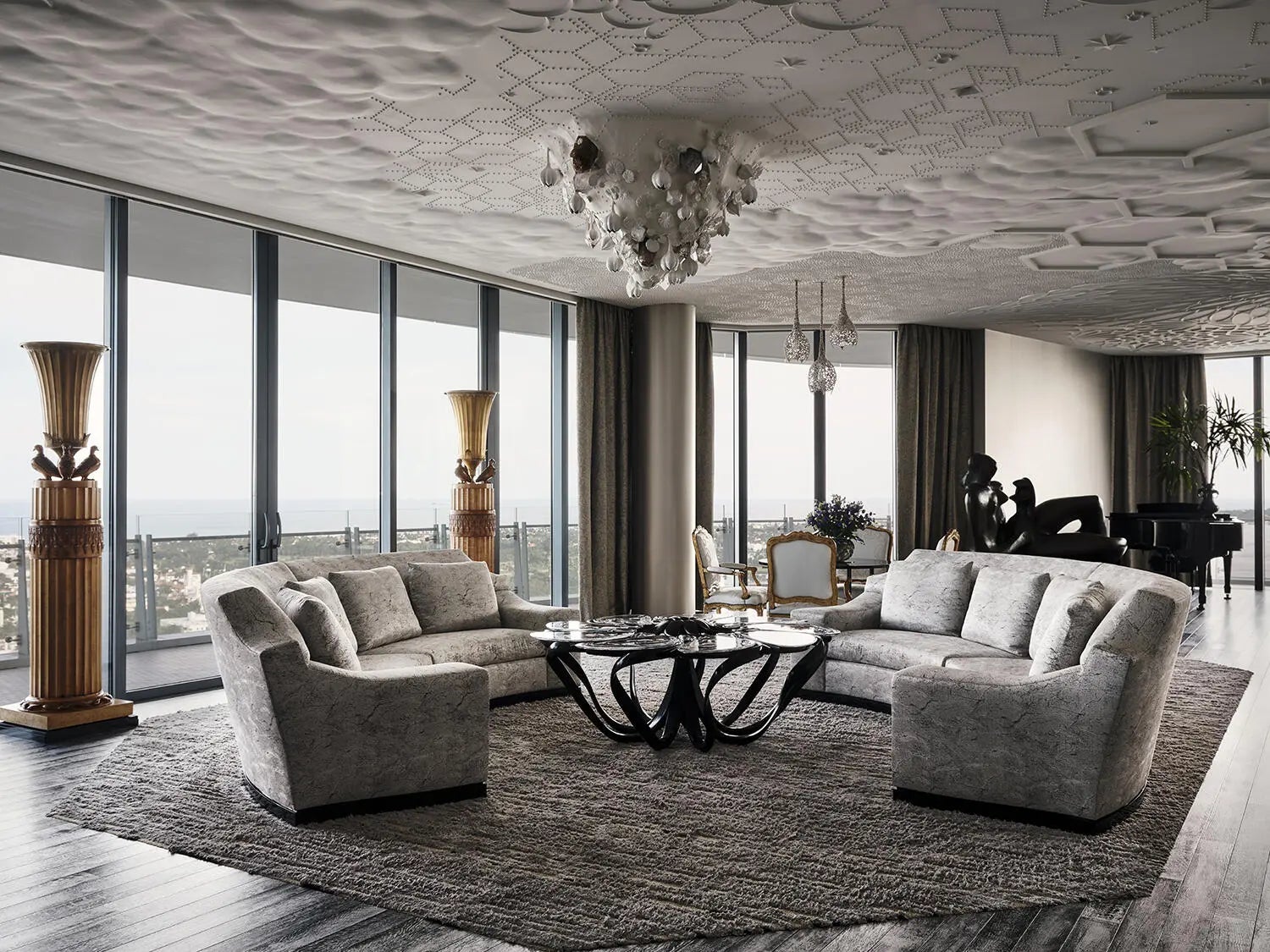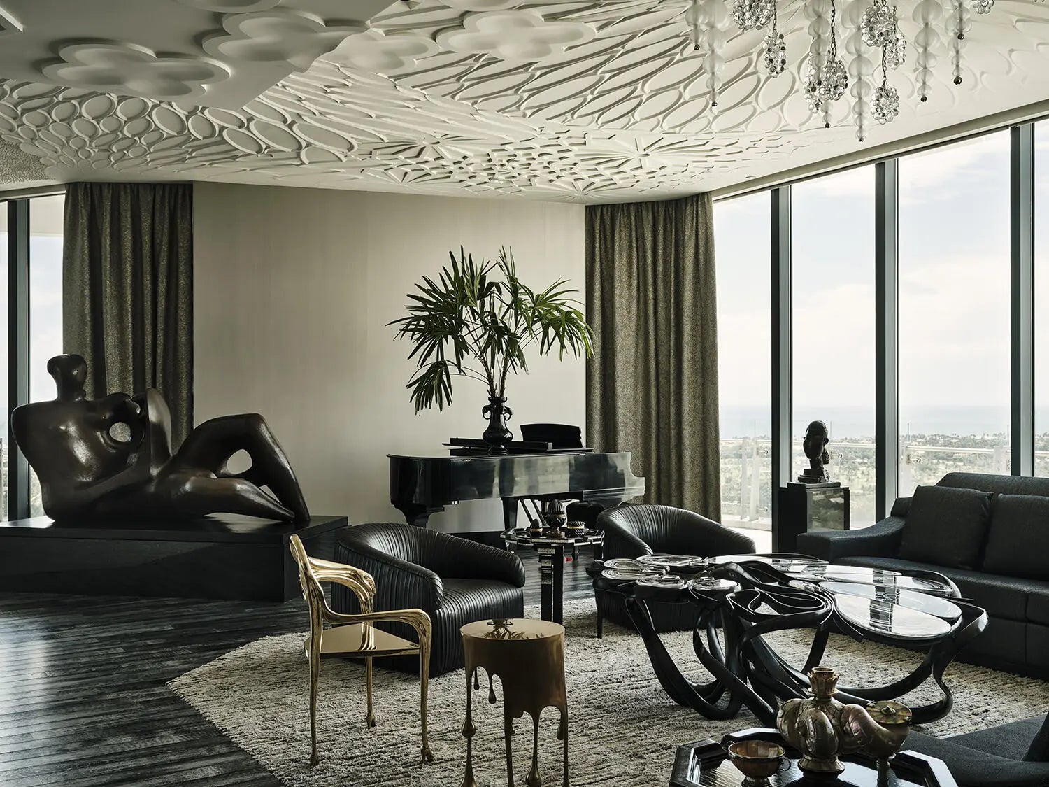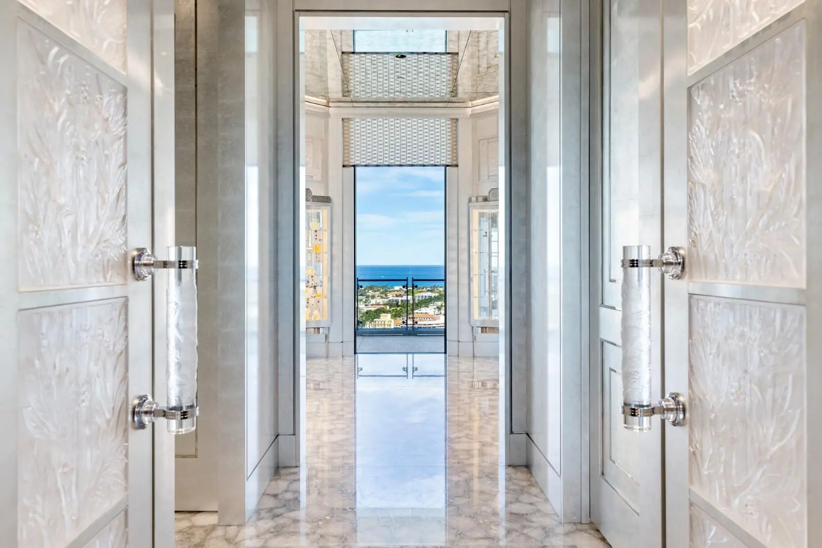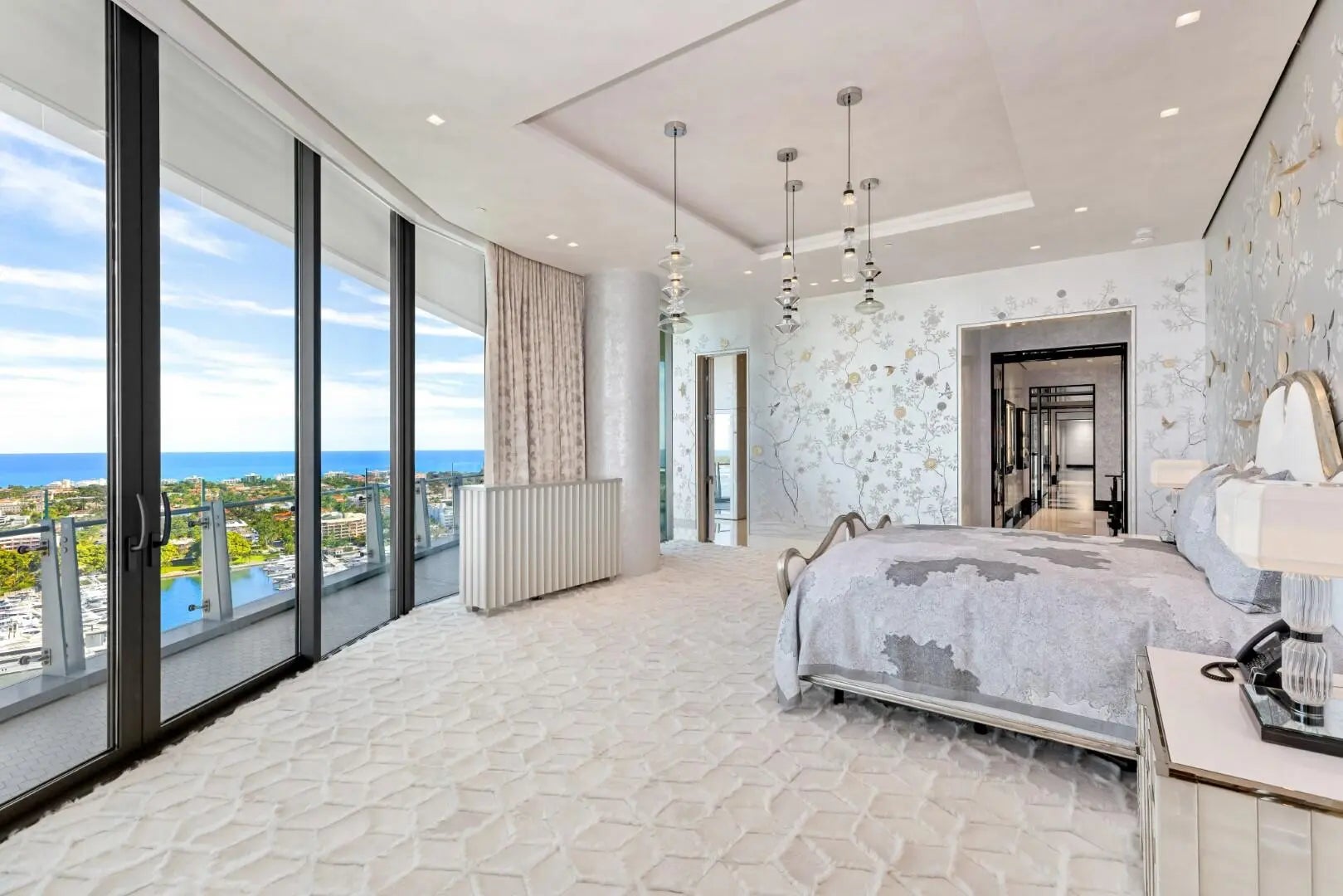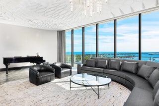 A Breathtaking Estate in the Sky - This extraordinary penthouse condominium spans nearly 20,000+/- total square feet and offers an unparalleled level of luxury, privacy, and scale. With five spacious bedrooms, five bathrooms, and four powder rooms and a spectacular wraparound terrace offering 360-degree panoramic views of the Intracoastal Waterway, the Atlantic Ocean, Palm Beach Island, the yachts at the Palm Beach Marina, and the Downtown West Palm Beach skyline. Every principal room is positioned to capture breathtaking vistas from sunrise to sunset. In addition to the magnificent views, the condominium also boasts expansive wall space perfect for art collections. The impressive living spaces are thoughtfully designed for both formal entertaining and serene everyday