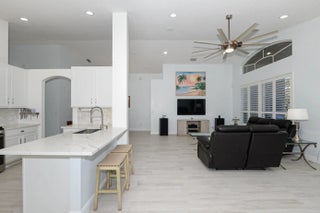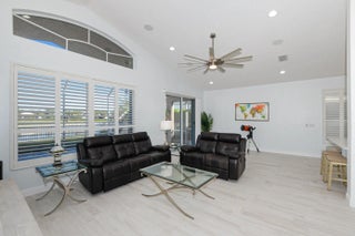 Lakefront living with ideal western exposure--your home naturally shades the patio from the afternoon sun. Bright, open floor plan with porcelain plank tile throughout and elegant plantation shutters. Enjoy a large screened enclosure, updated kitchen and baths, tankless gas hot water, and a natural gas line for your grill on the patio. Major upgrades include a new metal roof (2025) and HVAC (2024). Located in a small, private gated community with LOW HOA covering every aspect of lawn and garden care. Amenities include a heated community pool and monitored security system. Close to shopping, historic downtown, beaches, medical, and airports. Optional golf memberships available from Willoughby Golf Club just across the street. See the low insurance quote in the documents included.