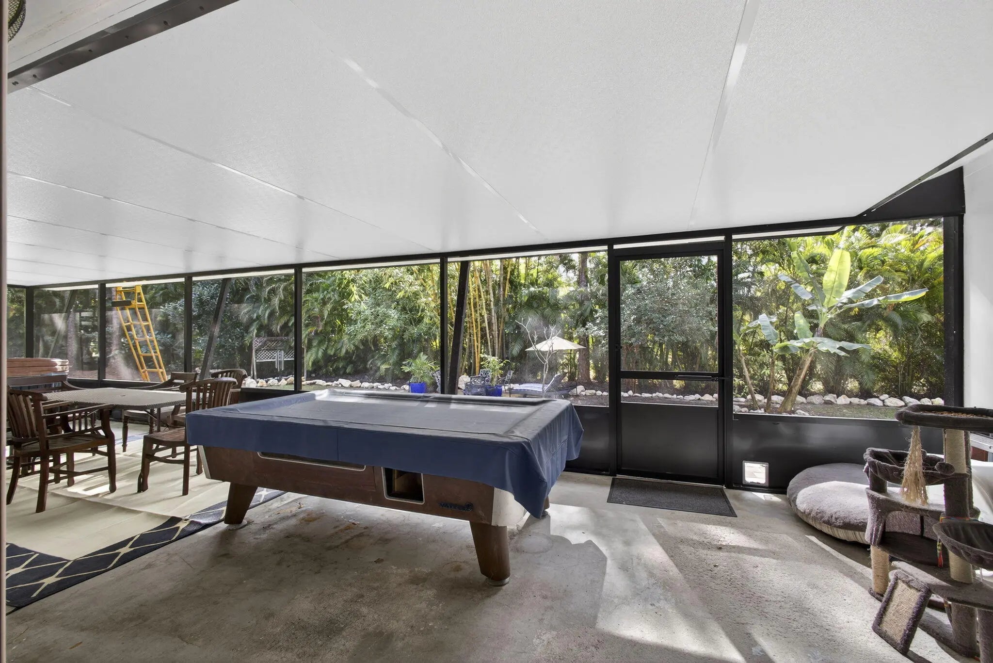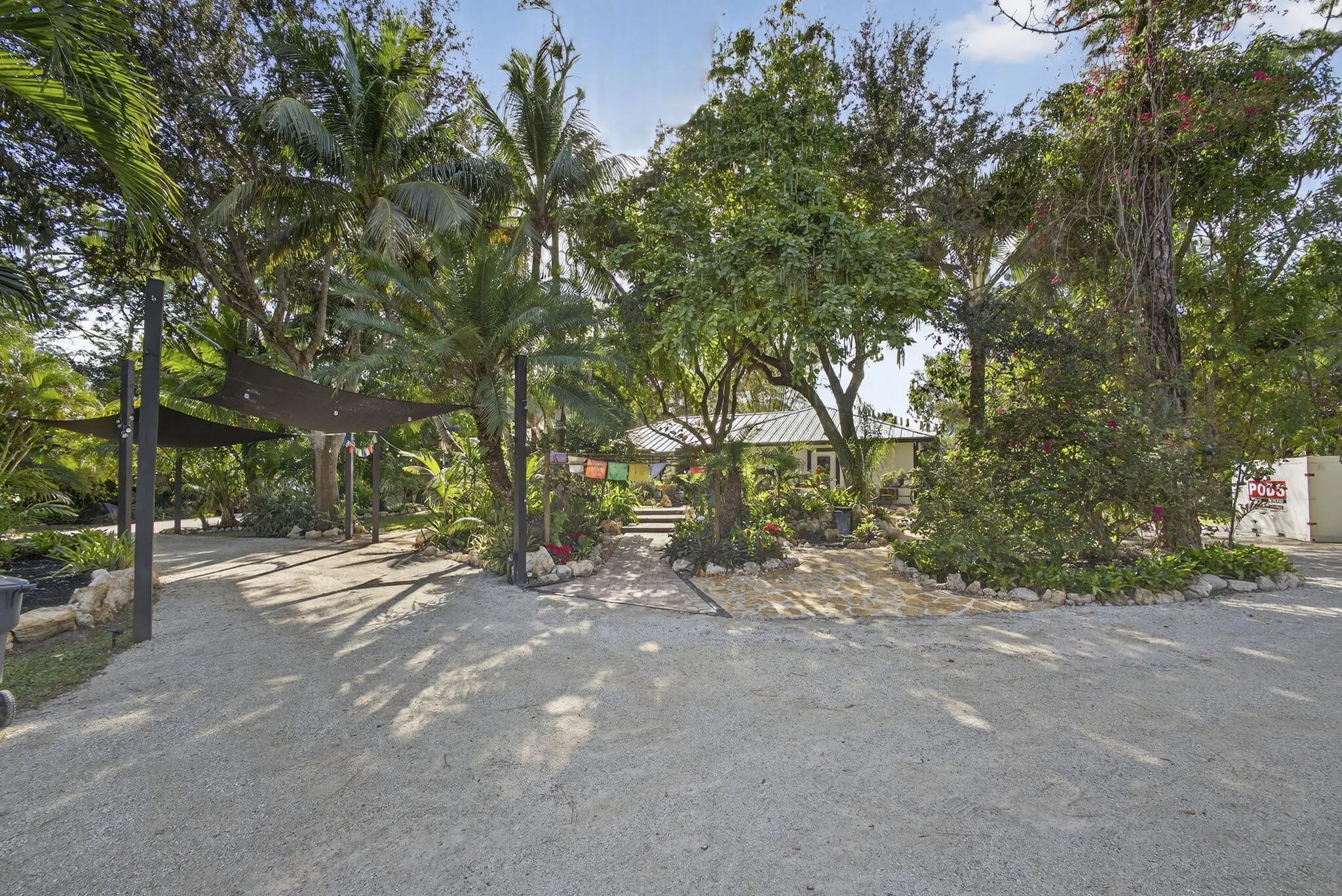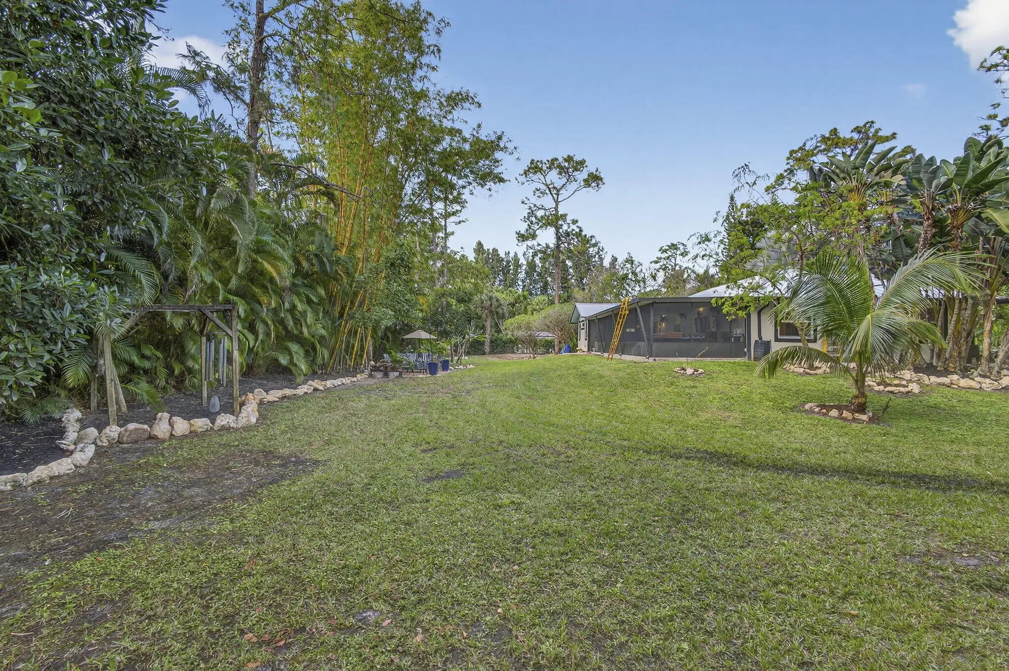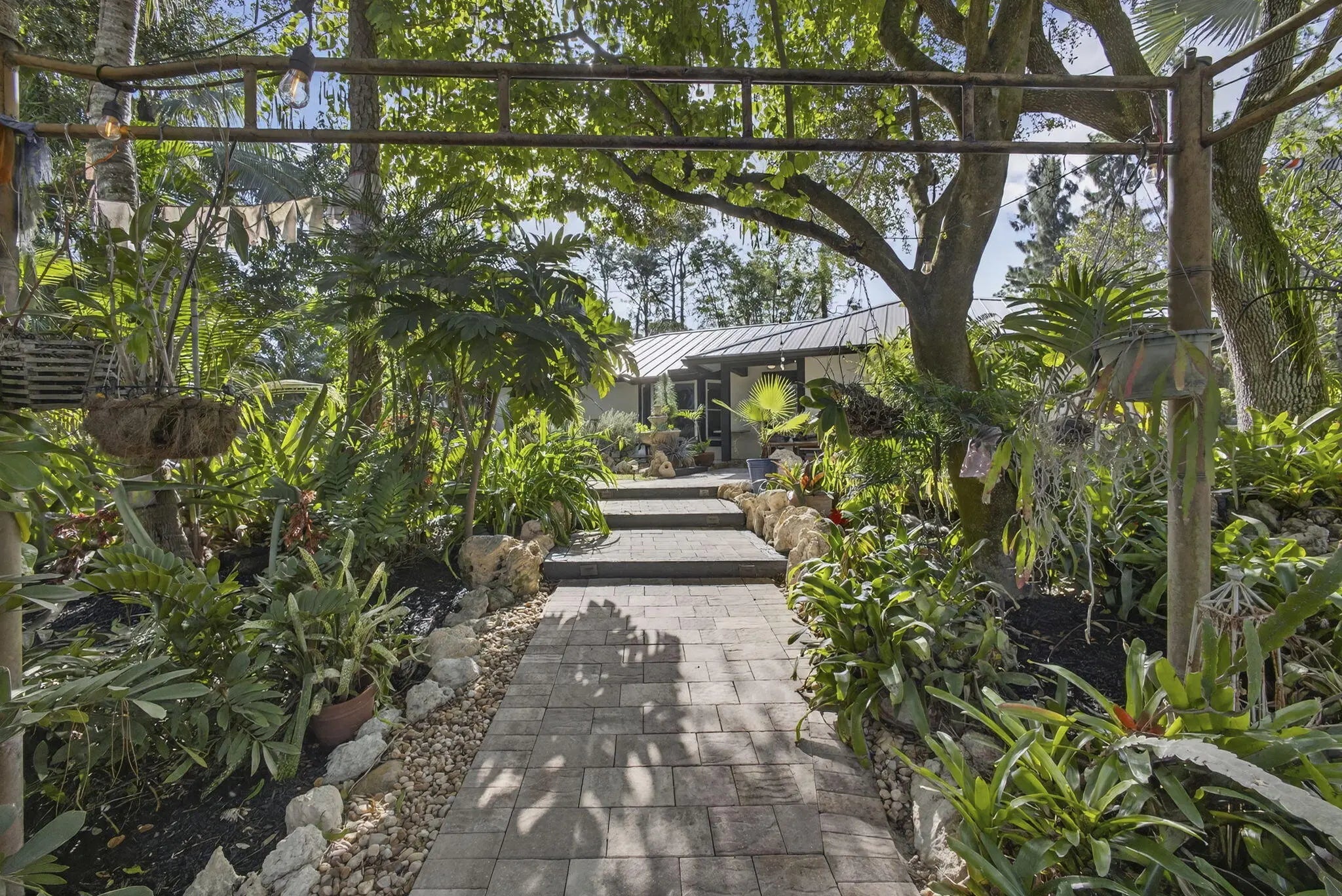 WELCOME TO ZEN. TRANQUIL PRIVATE AND SERENE, THIS HOME HAS EVERYTHING TO MAKE YOU FORGET ABOUT CHAOS. LOVELY 4/2 WITH 750 SF DETACHED GARAGE/WORKSHOP. Newer METAL ROOF 2022, IMPACT WINDOWS THROUGHOUT! THE HOME HAS BEEN COMPLETELY SIDED WITH CONCRETE HARDIE BOARD SIDING.You have a fully UPDATED GE CAFE' KITCHEN done in 2024. Your FLOORING IS 18'' PORCELAIN TILE IN LIVING AREAS. BEDROOMS HAVE WOOD PLANK FLOORING.BOTH BATHROOMS HAVE BEEN REMODELED.Your 40 x 12 SCREENED PATIO IS INSULATED COMPLETELY. It overlooks a serene garden area with FIRE PIT and bamboo trees. Do you like FRUIT TREES? There are over 20 VARIETIES on this property. PLEASE SEE THE LIST IN THE SUPPLEMENT.You have a PONDLESS WATERFALL. LOVELY PAVERED WALKWAYS MEANDER THROUGHthe RAISED BED gardens.