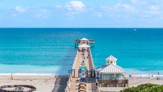 Jupiter is 12 miles north of Palm Beach Shores via I-95 and Rte. 706. Jupiter is one of the few little towns in the region not fronted by an island. Beaches here are part of the mainland, and Route A1A runs for almost 4 miles along the beachfront dunes and beautiful estates.