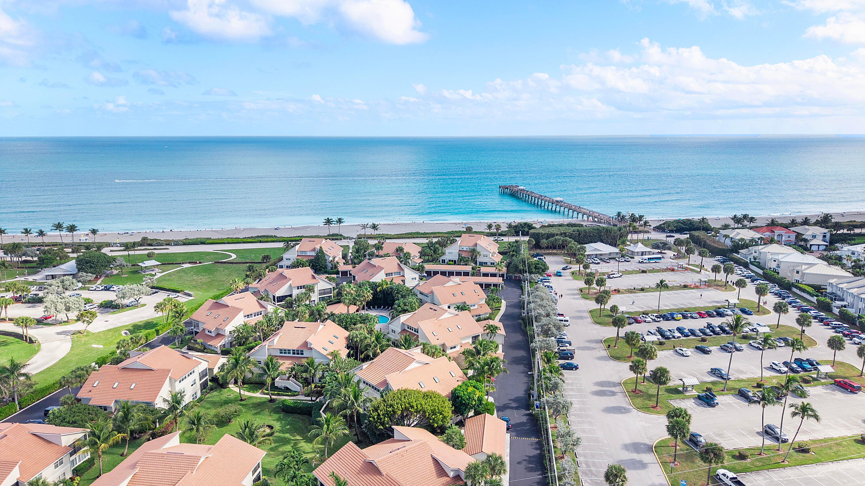 Corner unit walk-up to the LARGEST 2-bedroom floor plan, just steps from the beach in a gated community. The bright interior features recessed lighting, crown molding, polished tile floors, and an oversized primary suite, plus the flexibility to create a 3rd bedroom, office, or den. Enjoy in-unit laundry, a private storage unit, a separate one-car garage, and a screened patio with a pine wood ceiling where you can relax and feel the ocean breeze. The community offers a private beach pathway to the Juno Pier and is walking distance to shopping, restaurants, Ocean Cay Park, dog-friendly beaches, and playgrounds. NEW roof, NEW AC, NEW appliances, hurricane film windows, NO assessments, fully funded reserves, and the HOA includes water, cable, trash, and exterior maintenance.