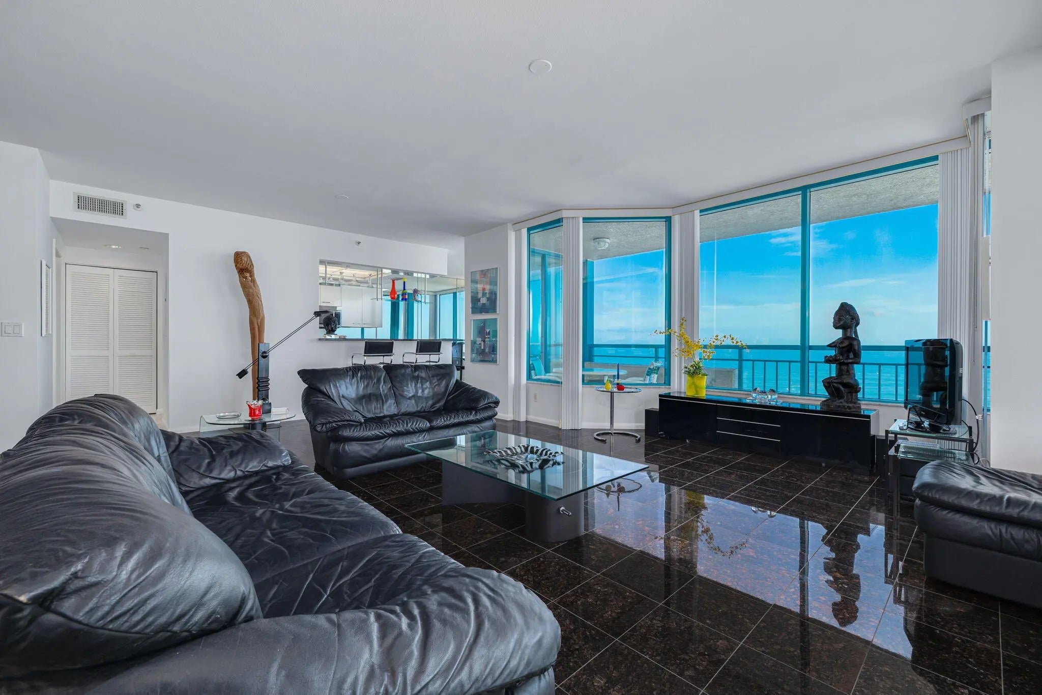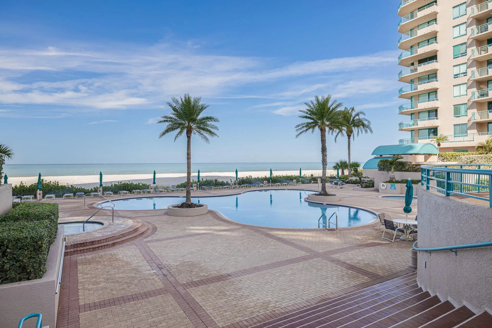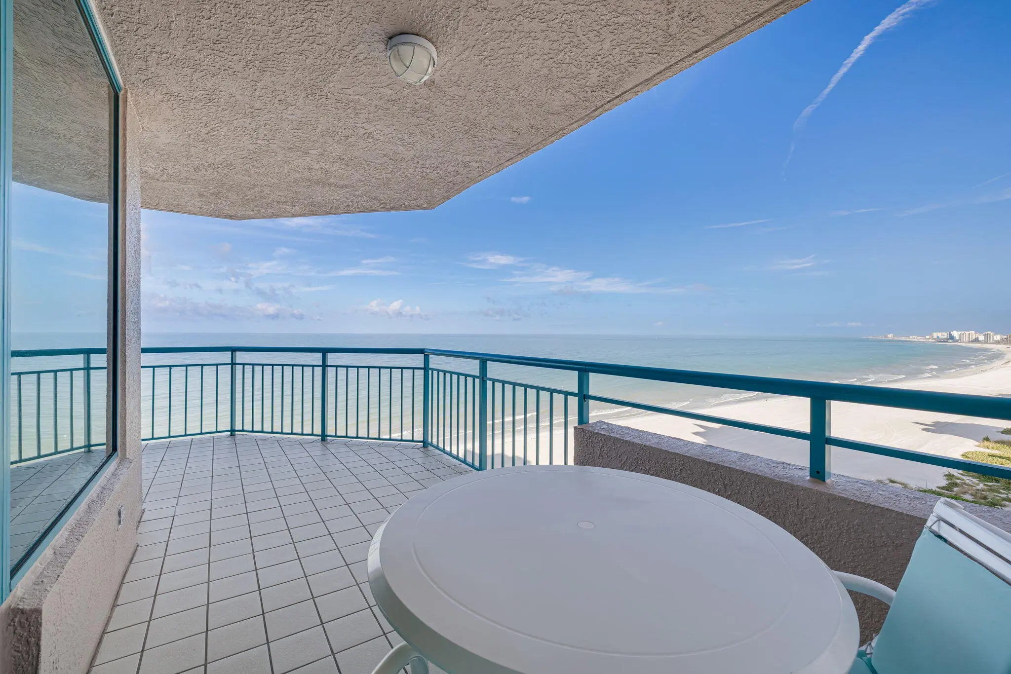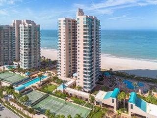Experience elevated coastal living from this modern Gulf-front residence with spectacular northwest views and unforgettable sunsets. Floor-to-ceiling impact windows fill the open living and dining areas with natural light and sweeping Gulf vistas. A spacious wraparound balcony invites seamless indoor-outdoor living. The kitchen features granite countertops, stainless steel appliances, and a bright breakfast area. Enjoy the privacy of a semi-private elevator opening to a shared foyer. The primary suite offers a peaceful retreat, complemented by two additional bedrooms. A truly rare oversized private garage provides exceptional value, easily accommodating today's largest SUVs with room to spare. Direct beachfront living meets style, comfort, and sophistication.