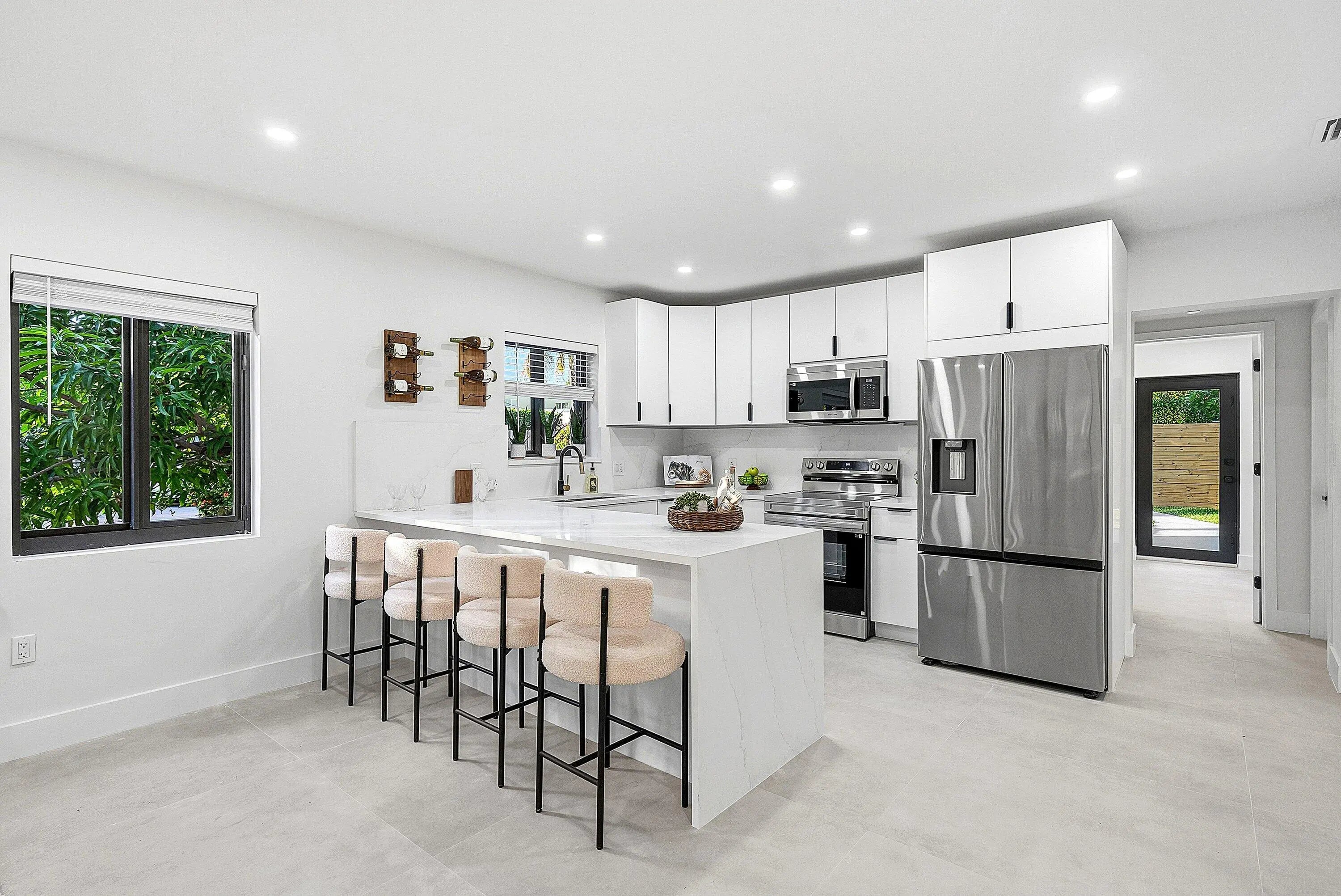 COME LIVE IN THE PICTURESQUE HIGHLY SOUGHT AFTER OLD HISTORIC DISTRICT OF NORTHWOOD NEIGHBORHOOD. THIS CHARMING 3 BED/2 BATH BUNGALOW HAS BEEN COMPLETELY REMODELED w/ STUNNING HIGH END FINISHES TO BLEND HISTORIC CHARM w/ CONTEMPORARY LIVING. NEW ROOF 2025, NEW IMPACT WINDOWS 2025, NEW A/C, NEW W/H. THE HOME IS DRENCHED IN NATURAL LIGHT AND HAS 36 X 36 TILE THROUGHOUT. THE OPEN KITCHEN FEATURES A QUARTZ PENINSULA w/ COUNTER SEATING & NEW S/S APPLIANCES. THE PRIMARY BATH HAS BEEN TASTEFULLY UPDATED w/ A GORGEOUS DOUBLE SHOWER & DUAL VANITIES. SEPARATE LAUNDRY ROOM. THE GENEROUS NEWLY FENCED BACKYARD HAS MANY FRUIT TREES & NEW SPRINKLER SYSTEM. PRIVATE DRIVEWAY PARKING. WALKING DISTANCE TO VIBRANT OLD NORTHWOOD SHOPS, CAFES & 2 BLOCKS TO THE INTRACOASTAL WATERWAY.