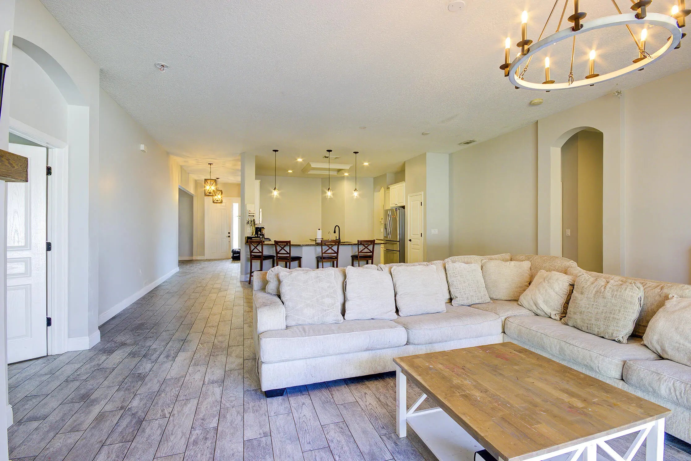 Charming and full of potential, this beautiful home is located in the heart of Bedford Park at Tradition, just a short walk to Tradition Square with restaurants, cafes, shopping, and community events. This 3-bedroom, 2-bath home with a den/office features tile flooring throughout, a bright open layout, and a durable seamless metal roof. A welcoming front porch with swing adds classic charm. The vinyl-fenced backyard is a standout with a HUGE playground and plenty of space for entertaining, pets, or future outdoor living. Opportunity to add a full second story (buyer to verify). Set in a family-friendly, park-filled community. Seller is open to Post-closing occupancy with a occupancy fee agreement if buyer needs.