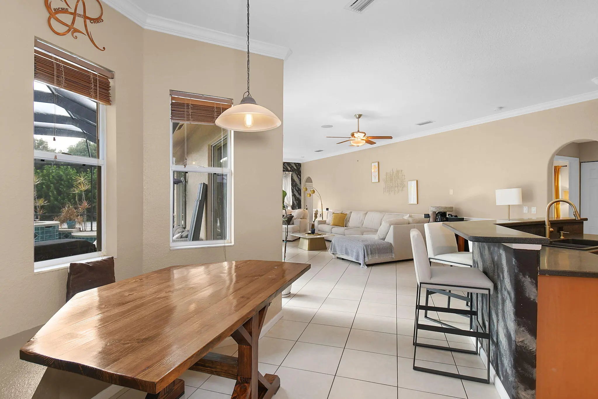 Location, Location, Location! As you drive down Dunn Road from Midway, take notice of the neighboring estate homes on acreage...a huge benefit to property value! This is the type of neighborhood that makes you feel like you're in the country, yet you're close to all you need! Pull into the extended driveway and you'll immediately feel at home. This spacious 5-bedroom, 3-bathroom pool home was thoughtfully designed for effortless entertaining with room for everyone. With the triple-split floor plan, each wing has its own bathroom, making it a great fit for multi-generational living or roommate situations. The kitchen opens seamlessly to the formal living and dining areas, ideal for gatherings of any size. Enjoy informal dining at the breakfast nook with built-in bench seating.