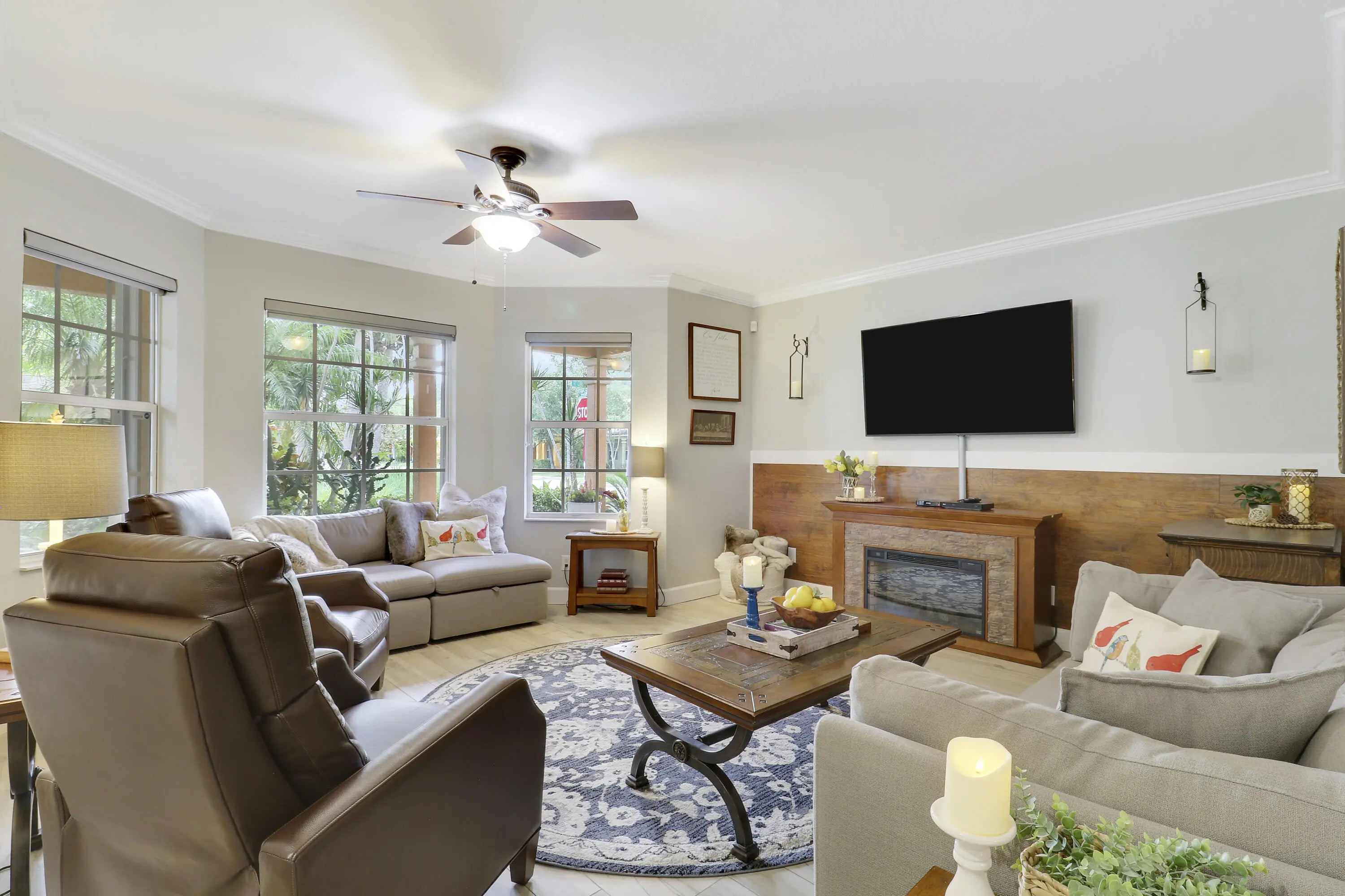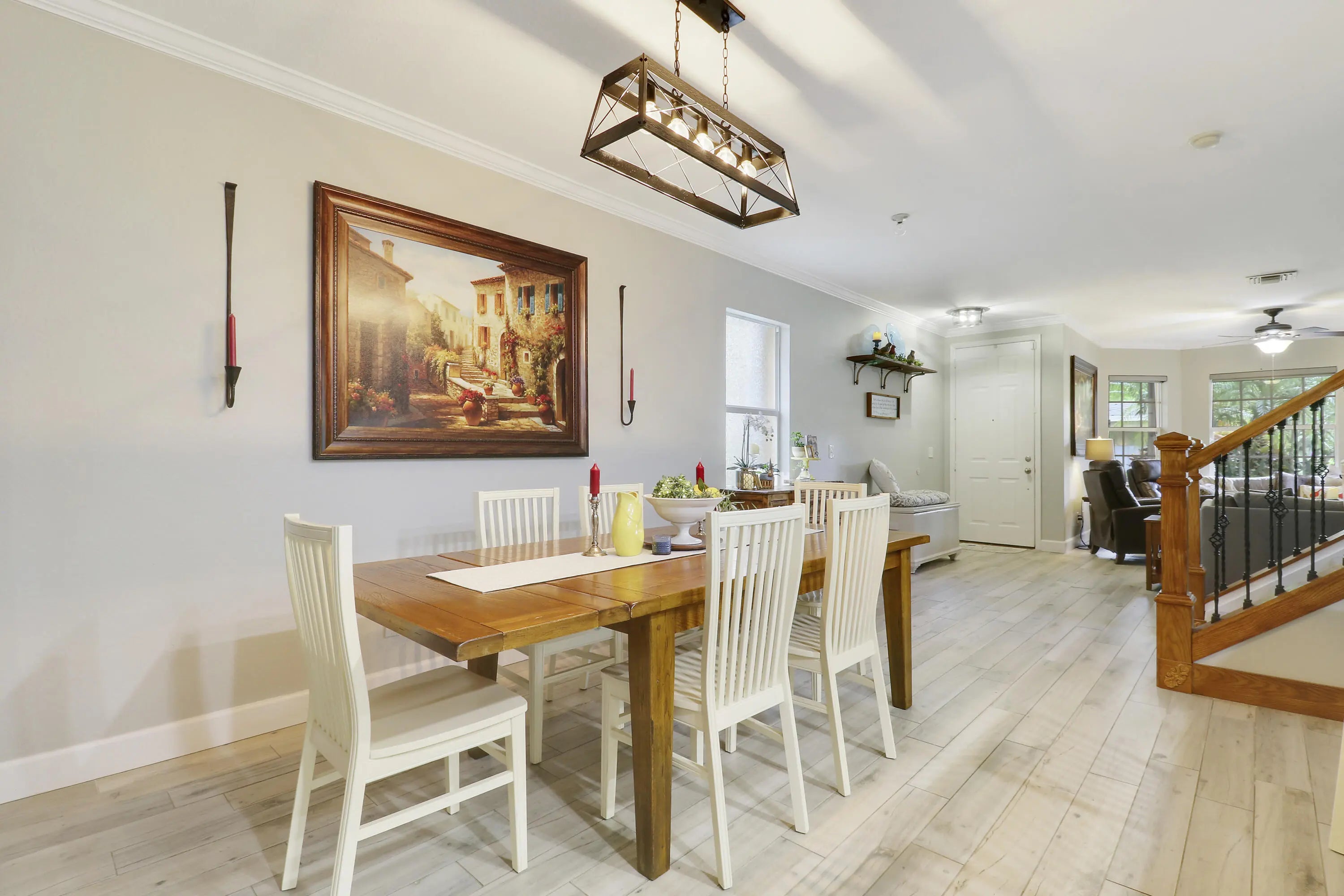 Move in ready home featuring a 2024 metal roof, updated flooring, fixtures, and bathrooms, private in-law suite with separate entrance, and accordion shutters for peace of mind. This property is thoughtfully designed for comfort and functionality. The in-law suite features a private entrance, living room, separate bedroom with full bath and a kitchenette. Steps outside of your front door you'll find a 1.7-mile nature trail and a tranquil lake view immediately in front. The private green space behind the home provides a serene setting. A truly special opportunity for those seeking space, privacy, and convenience in one of the area's most scenic settings.