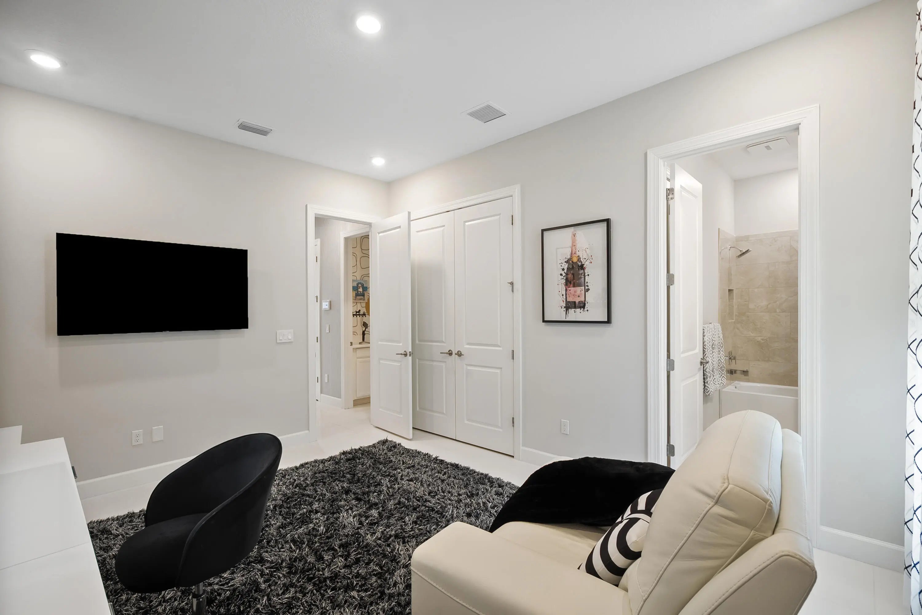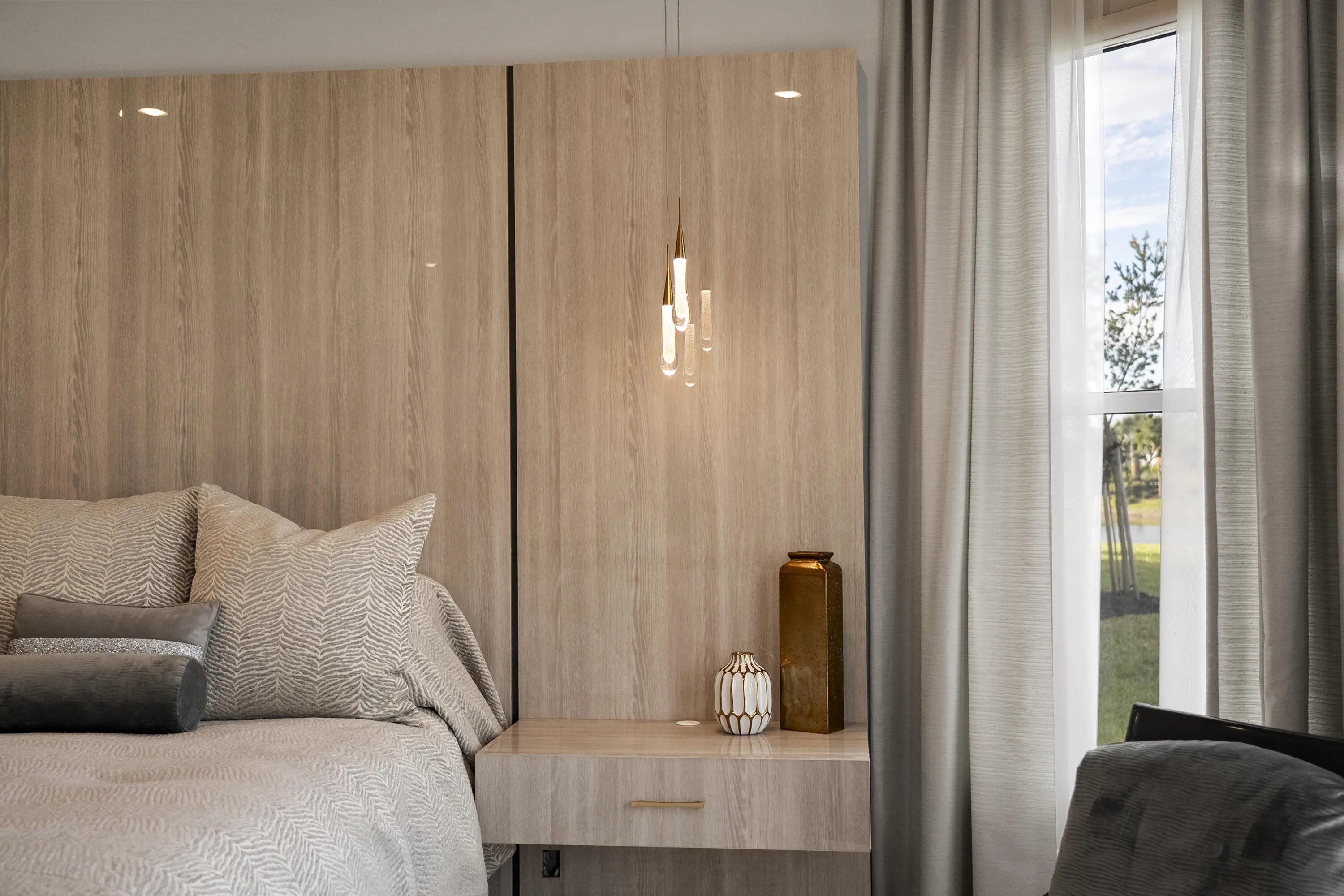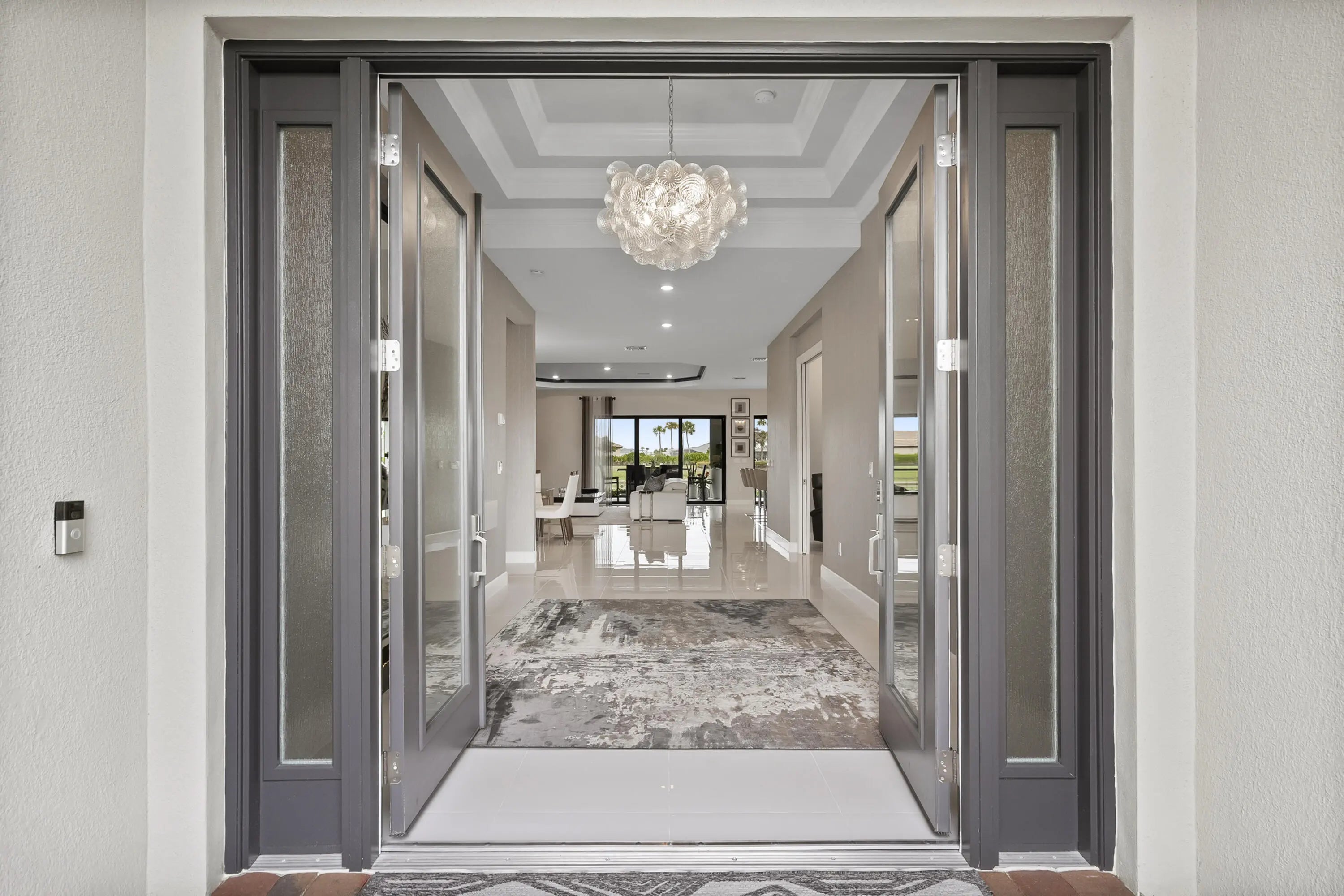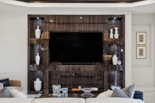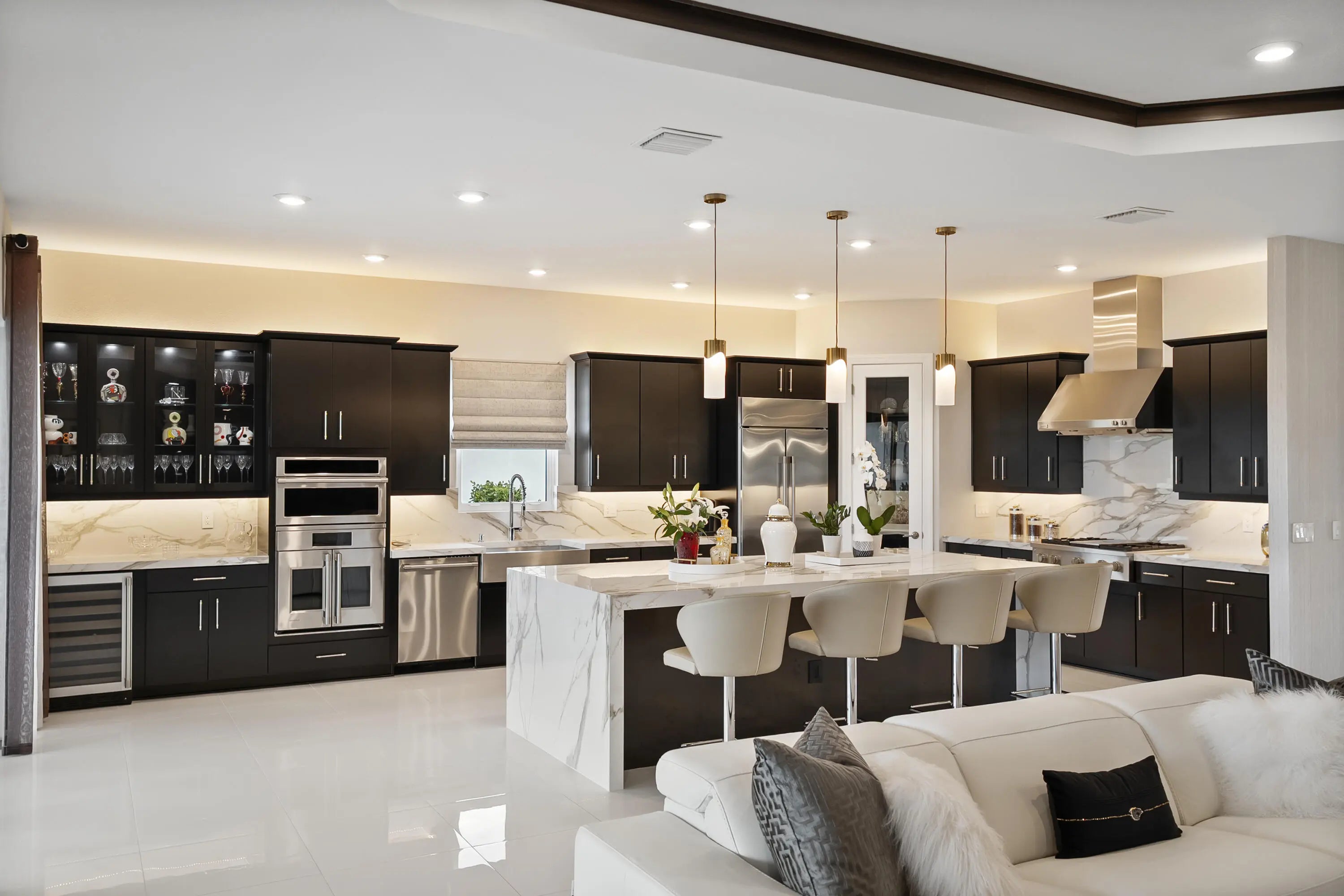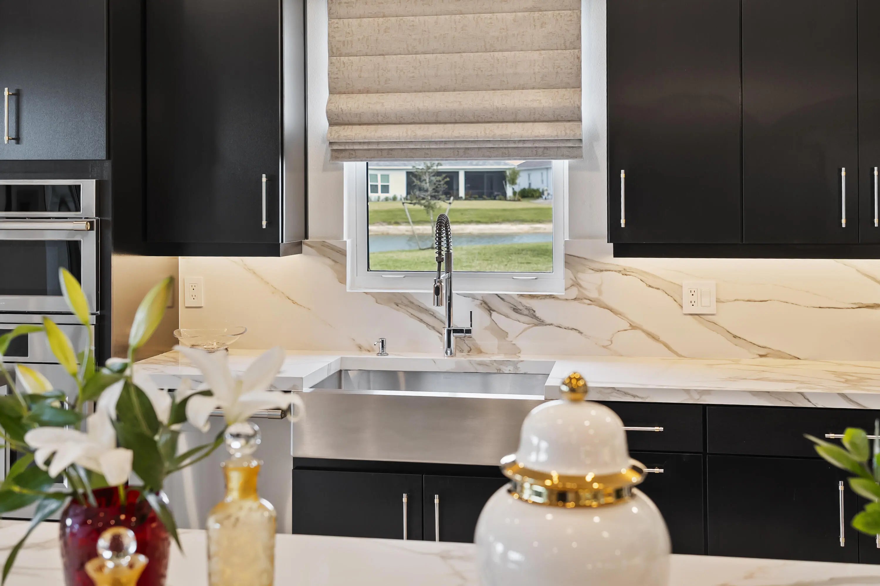 This Pallazio floor plan features extensive post-construction upgrades that go far beyond builder offerings. Offering 3 bedrooms, 3 bathrooms, plus a study/flex space, this exceptional home is situated on a quiet cul-de-sac on an oversized .36-acre pie-shaped lot that widens at the rear and overlooks a serene lake. Structural enhancements include an extended covered lanai, extended gourmet kitchen, outdoor kitchen gas and plumbing rough-ins, and extended bay windows in the primary suite. All impact windows and doors, paired with a brand-new barrel tile roof (2023), provide peace of mind and contribute to lower homeowners insurance rates. Inside, oversized porcelain tile flooring throughout (no carpet) creates a light, airy, and cohesive aesthetic. Professionally designed interiors take