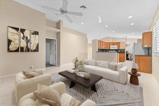 BRAND NEW ROOF, WATER HEATER, FRESHLY PAINTED 2025! Welcome to Indian Hills - The Grove, a desirable gated 55+ community offering comfort and convenience. This zero-lot home features 1,720 sq ft of living space with 3 bedrooms and 2 bathrooms. Enjoy tile flooring throughout the main living areas, with laminated and carpeted flooring in the bedrooms. Cathedral ceilings with a knock-down finish enhance the bright and open layout.The kitchen comes equipped with appliances, including a refrigerator, range, and microwave, along with ample cabinets for storage and a countertop with bar seating perfect for casual dining. The living and dining areas flow seamlessly to a screened porch, ideal for relaxing or entertaining
