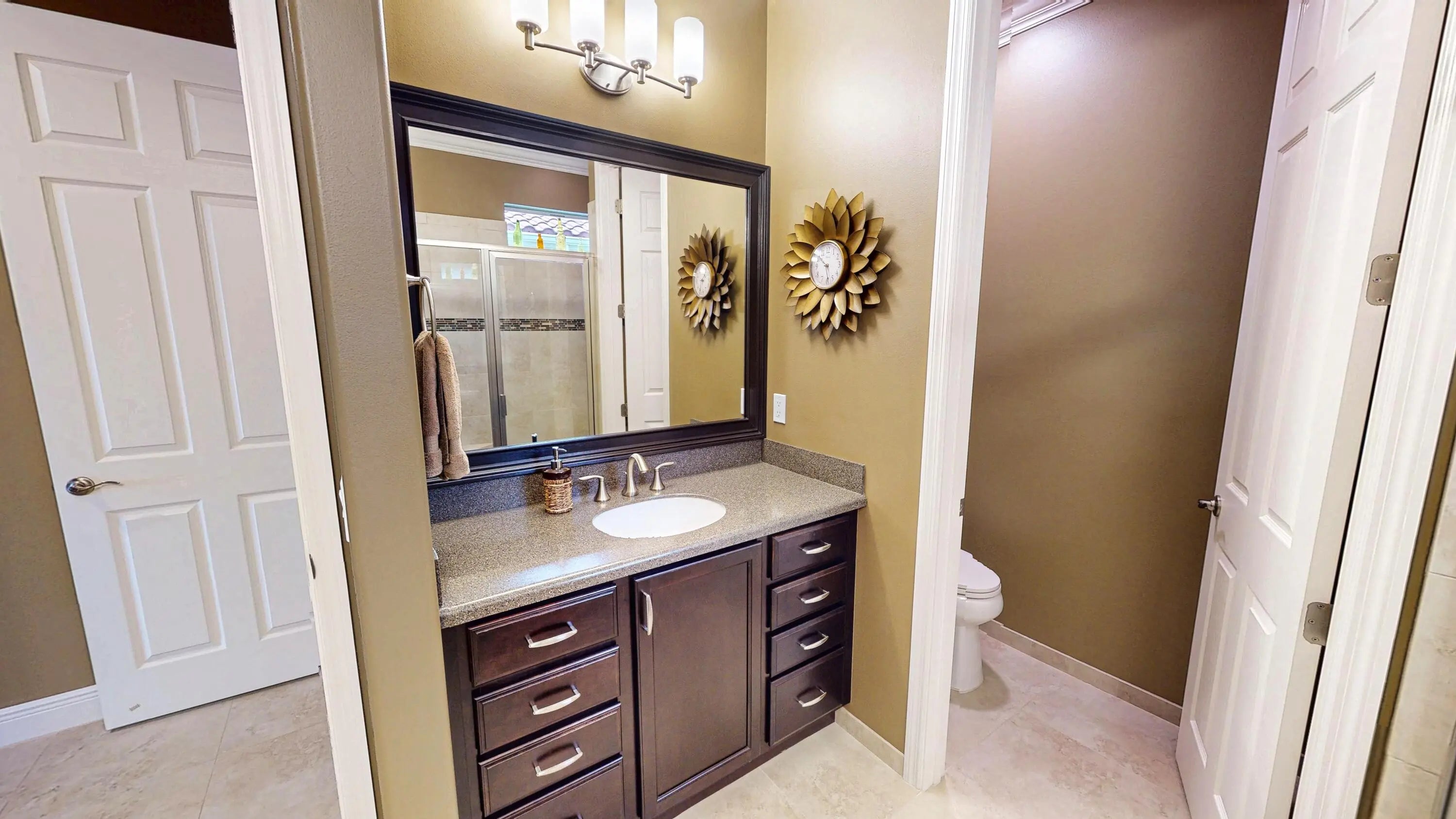 Experience refined lakefront living in this elegant 2-bedroom, 2.5-bath residence offering over 2,100 square feet of thoughtfully designed space and stunning long lake views. From the moment you enter, the expansive family room with soaring ceilings creates a grand yet inviting atmosphere, perfect for both entertaining and everyday comfort. A stylish den just off the main living area, paired with a conveniently located half bath, offers an ideal retreat for guests or a sophisticated home office. The gourmet kitchen is a showpiece, featuring rich 42-inch cabinetry, granite countertops, and generous workspace designed for both culinary creativity and effortless entertaining.
