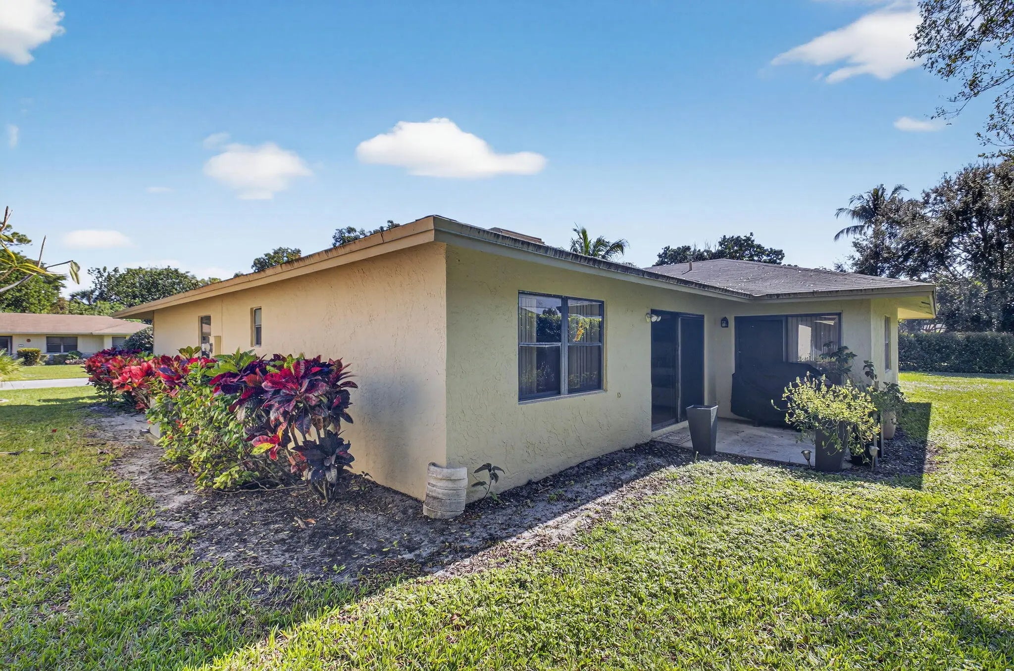 Spacious and well-appointed home located in a 24-hour guard-gated community. This residence features a desirable split-bedroom floor plan with generous living spaces, including a formal living room, dining room, family room, and a bright Florida room. The kitchen is enhanced by a skylight, filling the space with natural light. The large backyard offers plenty of room to relax. The primary suite includes a walk-in closet, walk-in shower, and a separate vanity, while the second bathroom features a tub/shower combination. Additional highlights include a two-car garage and a large driveway Roof replaced in 2011 and an air conditioning system updated in 2020. The HOA covers internet, cable, exterior painting, roof maintenance, pest control, landscaping, and 24-hour security