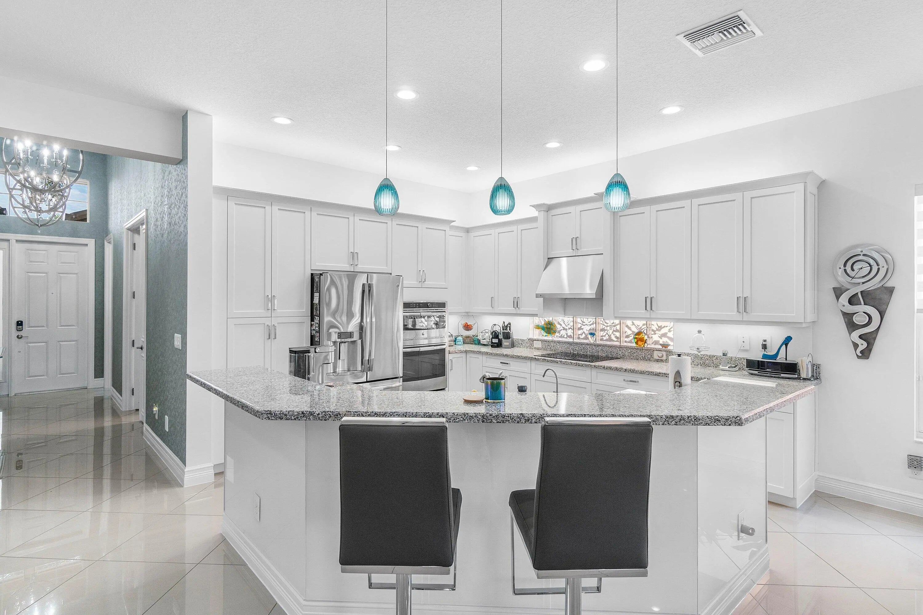 SHOWS LIKE A MODEL HOME-STUNNING Single-Story Featuring 2,309 a/c sq. ft. of living space with 3 bedrooms, 3 bathrooms PLUS a den/optional 4th Bedroom, Great Room, and 2-car garage ALL set against a BEAUTIFUL LAKE VIEW in Prestigious VALENCIA COVE! This CUSTOM Bimini Model HAS EXTENSIVE UPGRADES throughout- All designed with 55+ living in mind! A DRAMATIC foyer welcomes you home, setting the tone for this amazing space with open-concept design that's perfect for entertaining with HIGH-END Finishes and DESIGNER TOUCHES, Including 24x24 Custom DIAGONAL POLISHED PORCELAIN Tile Throughout ENTIRE Home. Enjoy Privacy w/bedrooms not placed right next to each other and the Guest bedroom has its Own Ensuite, Designer fans, custom light fixtures, Custom Mirrors, Extensive Upgrades-
