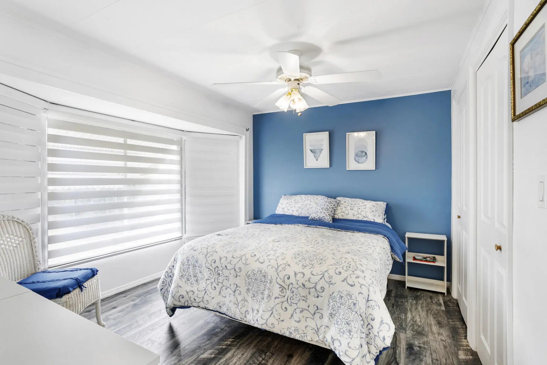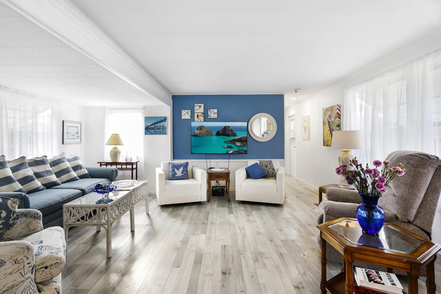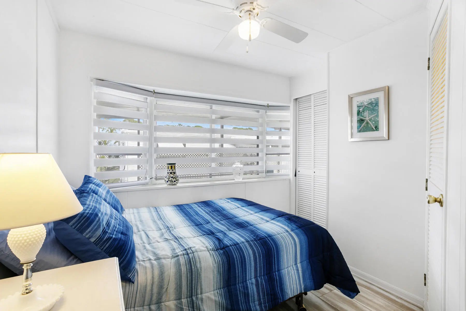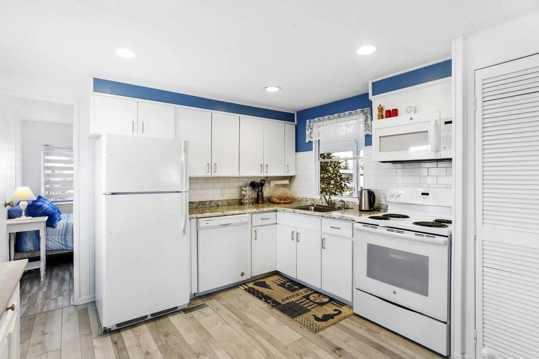 Welcome to your perfect winter retreat. Nestled at the end of a quiet cul-de-sac, this charming 2-bedroom, 2-bath completely furnished home sits on a private lot surrounded by plenty of peaceful green space. Secluded and serene, it's an ideal escape for relaxing. Enter through the oversized screened-in patio, perfect for morning coffee or evening breezes, and step through the glass front door into a light-filled, open living space. The spacious living room, dining area, and kitchen flow together beautifully, creating an airy and welcoming atmosphere. The split bedroom layout offers privacy, with one bedroom and full bath just off the kitchen, and a generously sized primary bedroom off the living room featuring bay windows and ample closet space. The remodeled bathroom includes a