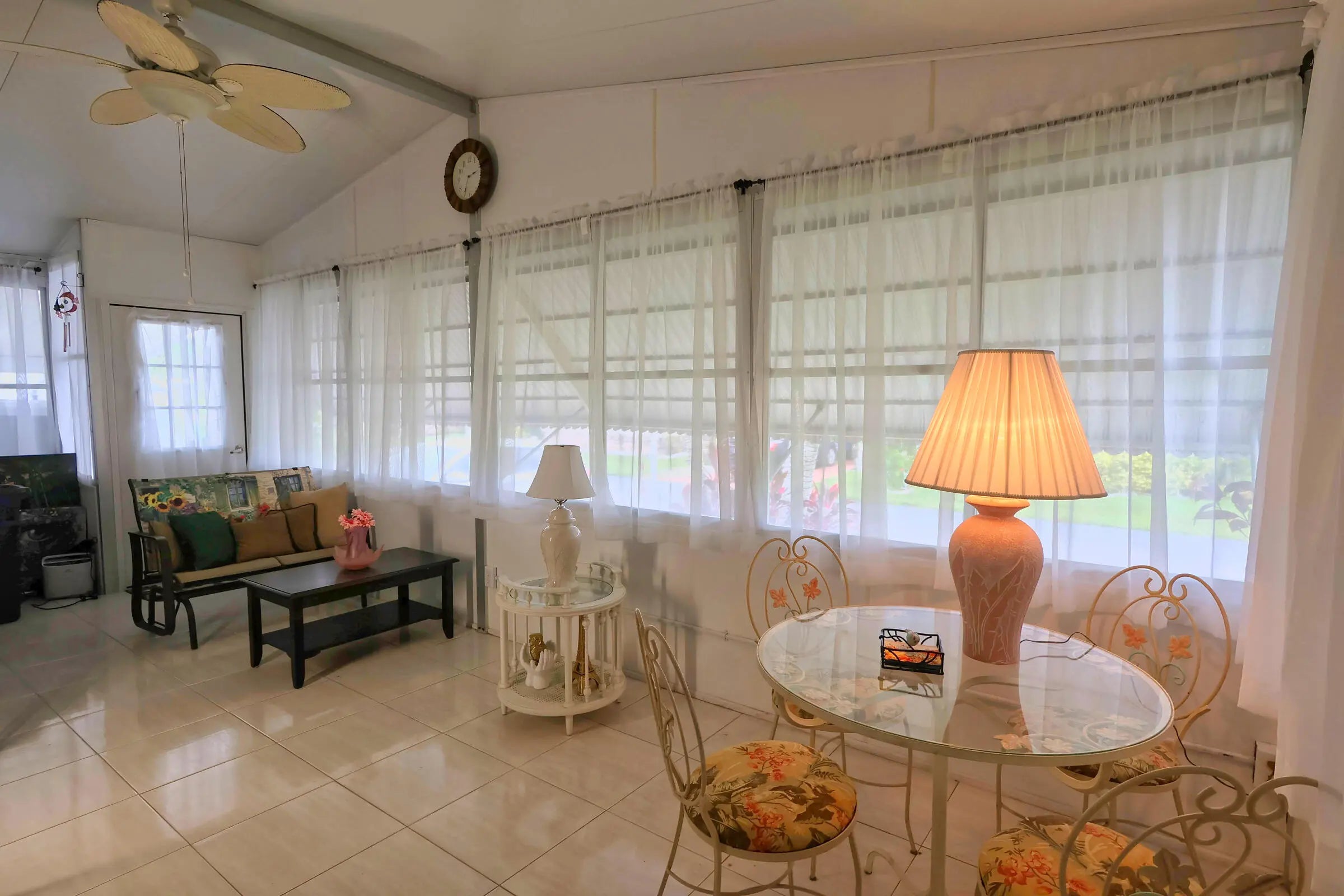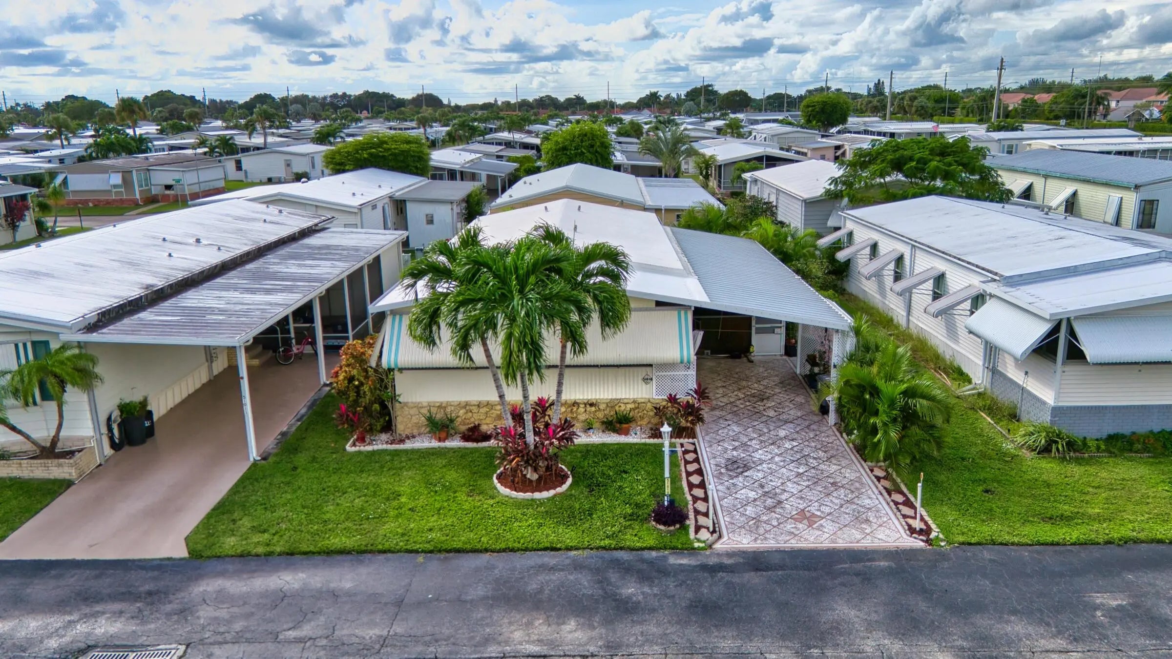 Welcome to this distinctive 2-bedroom, 2-bathroom double-wide modular home, offering rare features and thoughtful upgrades that blend comfort, style, and sustainability. Located in the vibrant 55+ gated community of Jamaica Bay in Boynton Beach, this home is perfectly situated for those seeking an active lifestyle in a friendly and secure community. The charming kitchen features a new sink with an upgraded faucet, a window over the sink, white cabinetry, and a convenient snack bar. Both spacious bedrooms offer ample storage, each equipped with a walk-in closet plus an additional closet (two closets per room).For personalized climate control, this home includes dual air conditioning systems. A central AC cools the entire space, complemented by an energy-efficient mini-spl