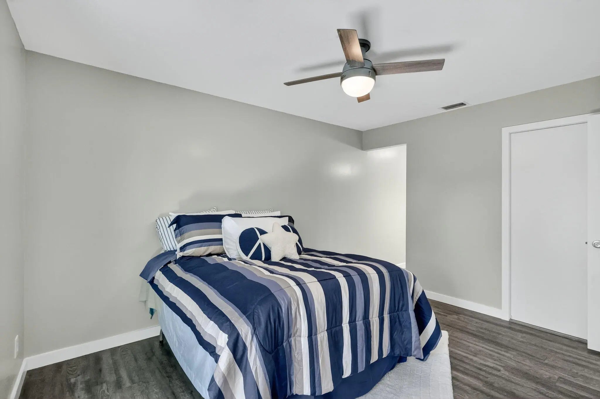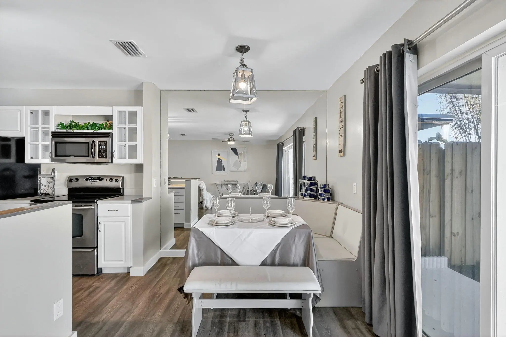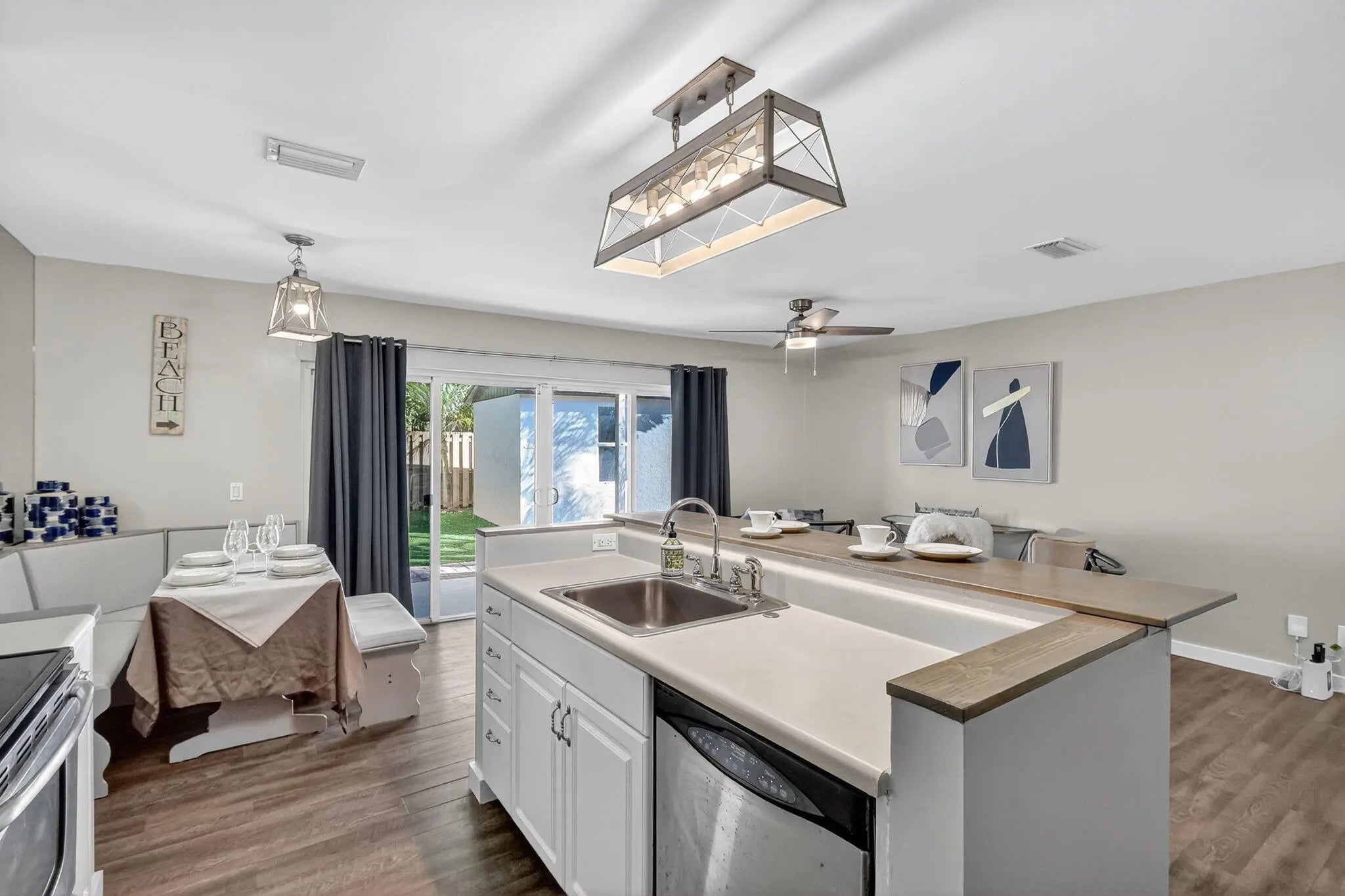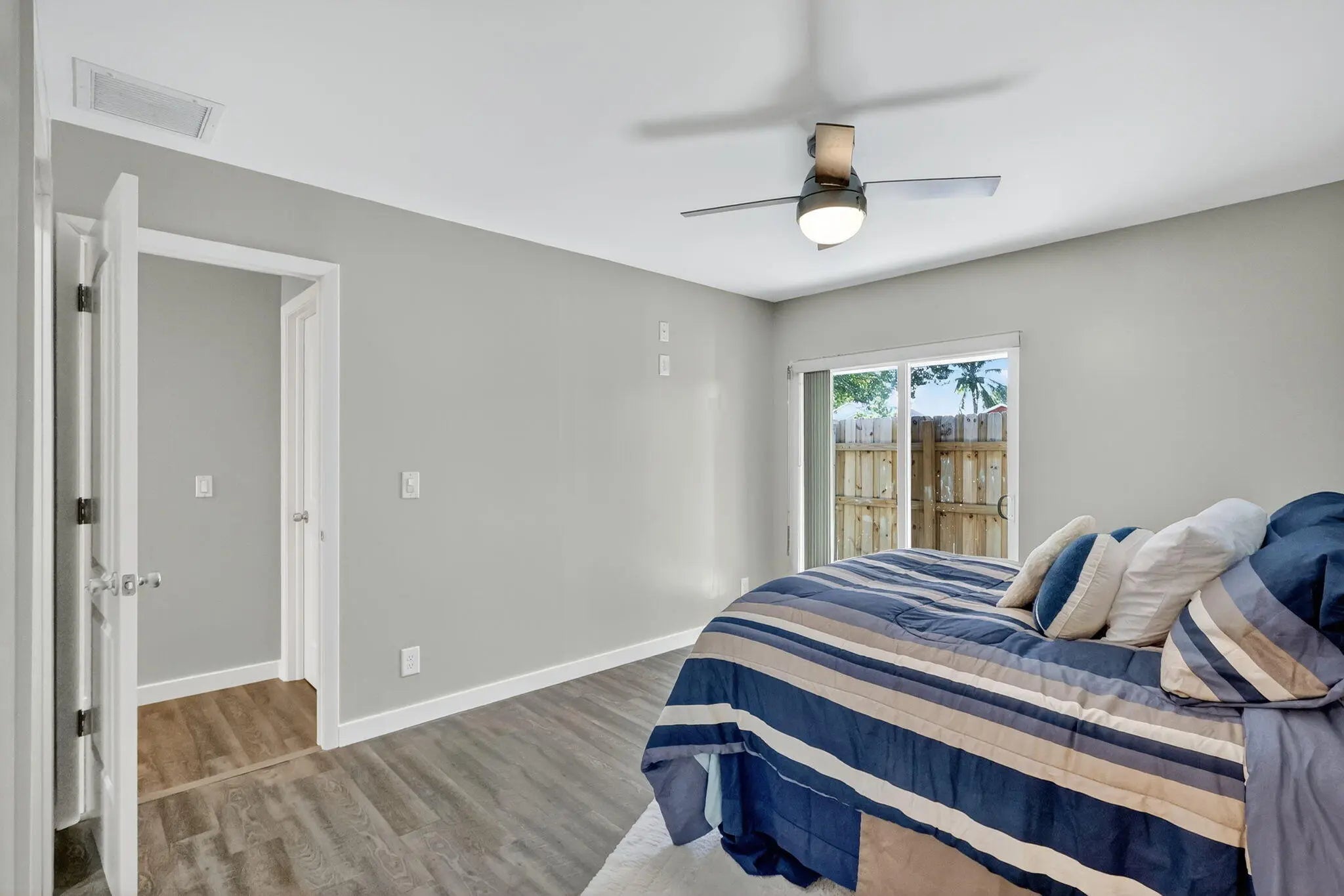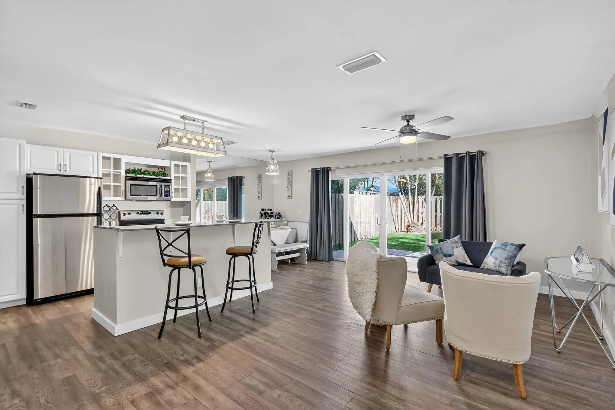 This property is half of a duplex in Beautiful Manatee Creek/Dixie Park close to the downtown historic district of Port Salerno-water and restaurants galore. Bring your boat, bring your truck, bring your friends. Plenty of parking for all. Don't sleep on the shed in the yard just asking to be converted into an office or guest house. EXTREEMLY PRIVATE house with fully fenced in yard. You won't find another property like this again. Property has been updated tip to tail with no expense spared. Beautiful waterproof laminate flooring throughout the property that is durable and stylish. White shaker kitchen with stainless steel appliances and massive sliding doors make the kitchen, living room and dining room the beach bungalow you have looking for. Both bathrooms are updated & designer.