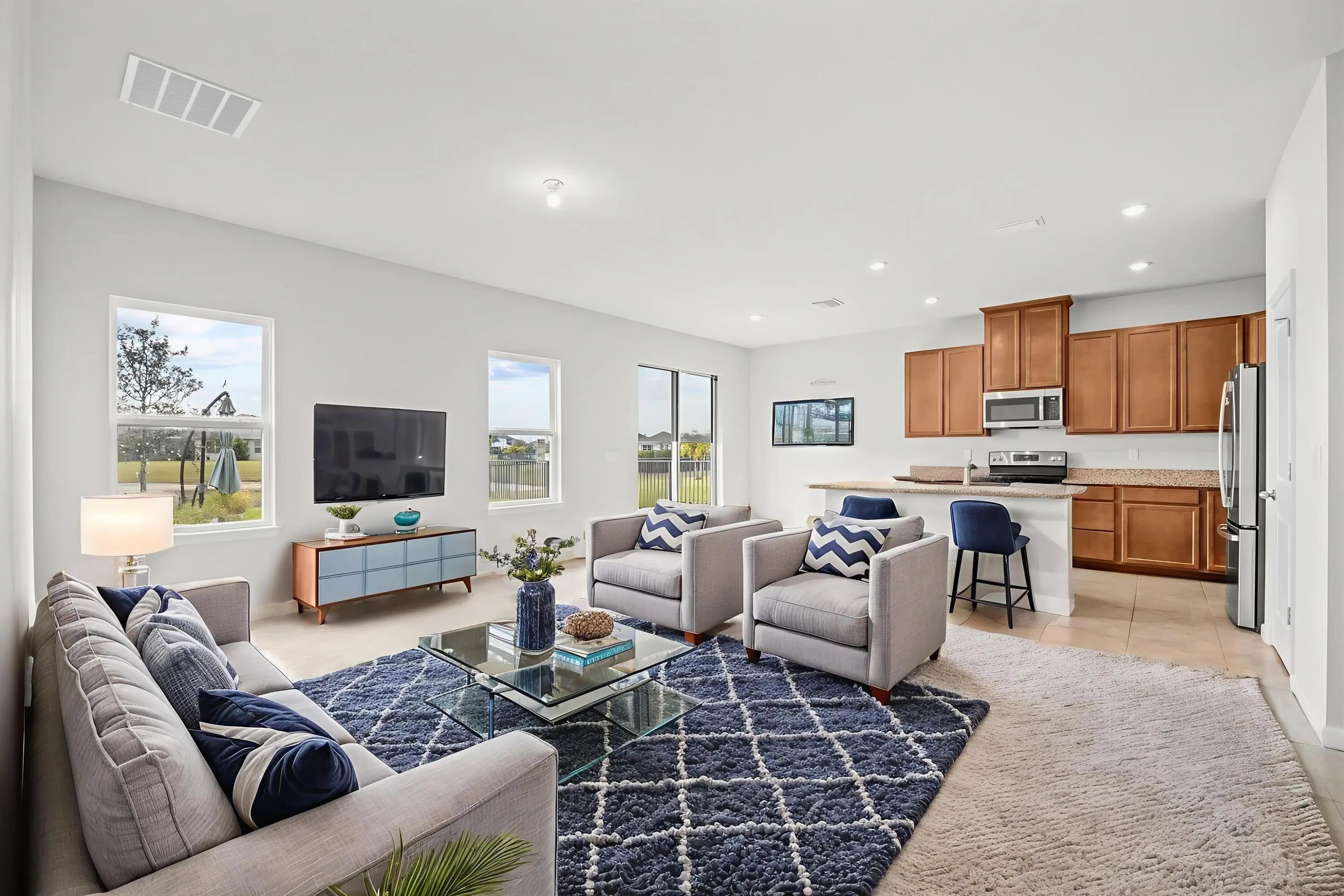 One of the LOWEST HOA's in 34987! Built in 2022, this well-maintained 3-bedroom, 2-bath home offers modern living with a peaceful lake view and an incredibly low HOA of approximately $30 per month. The open-concept layout features a bright living space that flows into the kitchen and dining area, ideal for everyday living and entertaining. The split floor plan provides privacy, with a spacious primary suite and two additional bedrooms perfect for guests, a home office. Enjoy serene water views from the backyard along with newer construction, modern finishes, and energy-efficient features. Most importantly, all in a convenient location near Tradition, shopping, dining, and major roadways.