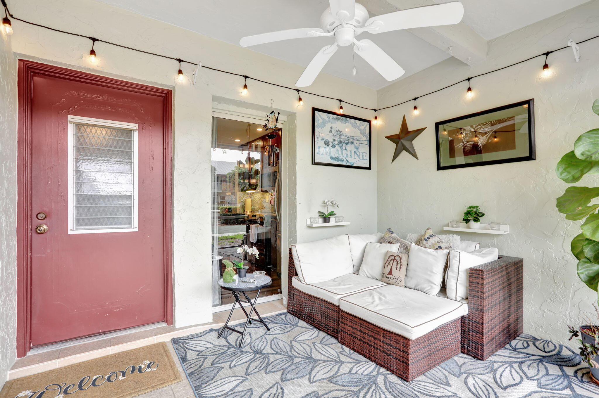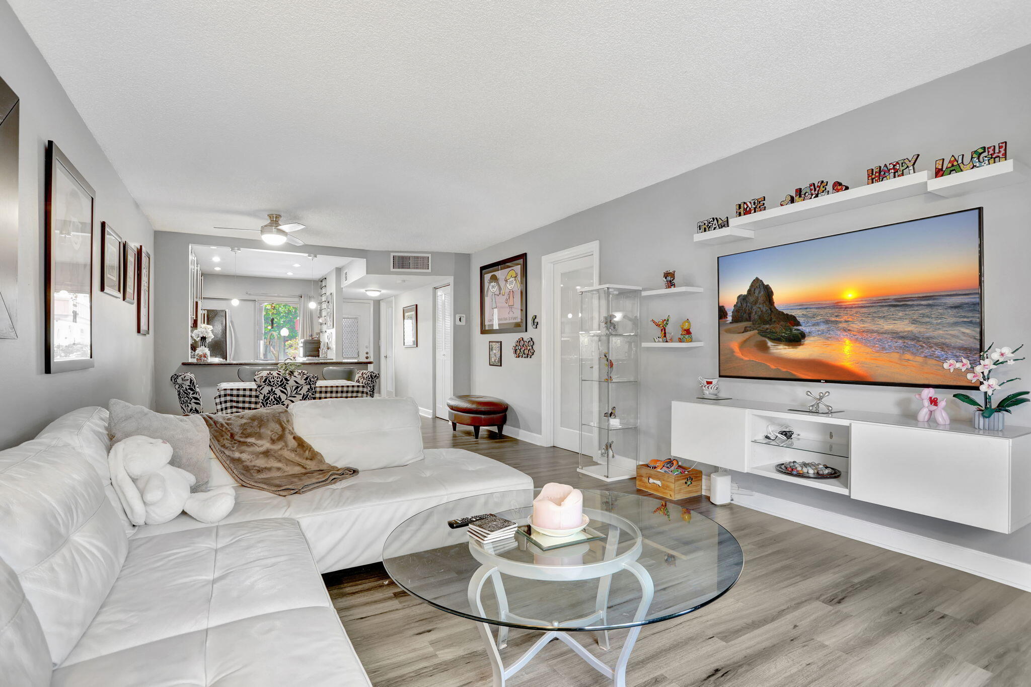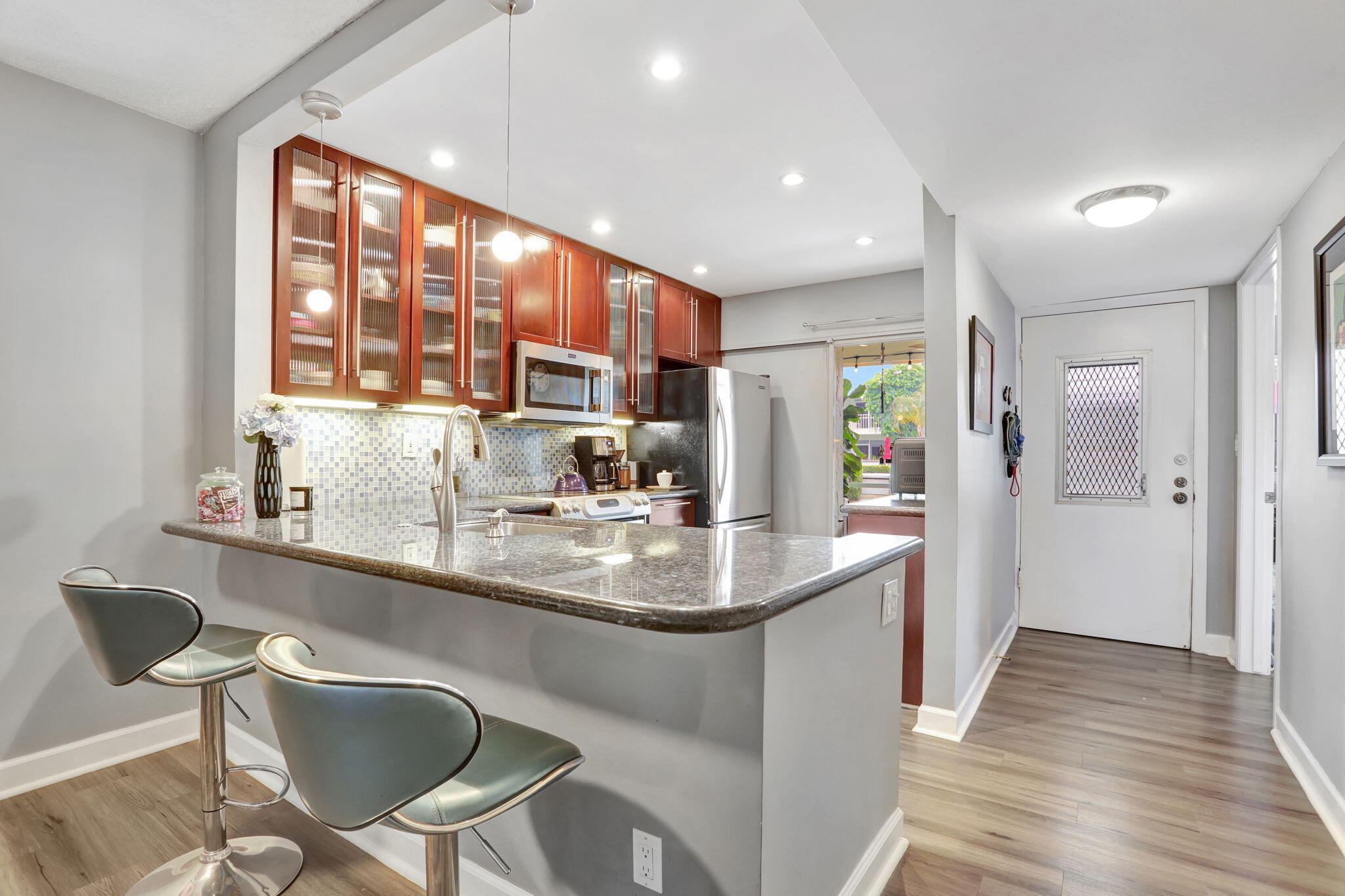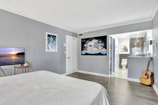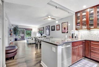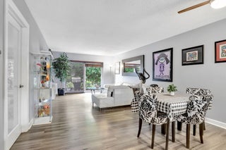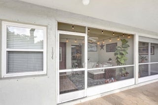 Move-in ready and thoughtfully updated, this charming 2-bed, 2-bath first-floor condo is located in a well-maintained boutique building in a prime location with the beach just minutes away. The home features impact windows and doors, newer flooring throughout, and an updated kitchen with granite countertops and stainless steel appliances. Both bedrooms offer private en-suite baths, with the primary suite featuring a walk-in closet, while the second bedroom's bathroom includes space for a washer and dryer. Additional highlights include a newly upgraded electrical panel, a screened front porch, private back patio, dedicated storage unit, and covered parking. Residents enjoy access to a community pool and clubhouse, all conveniently close to shopping and dining.