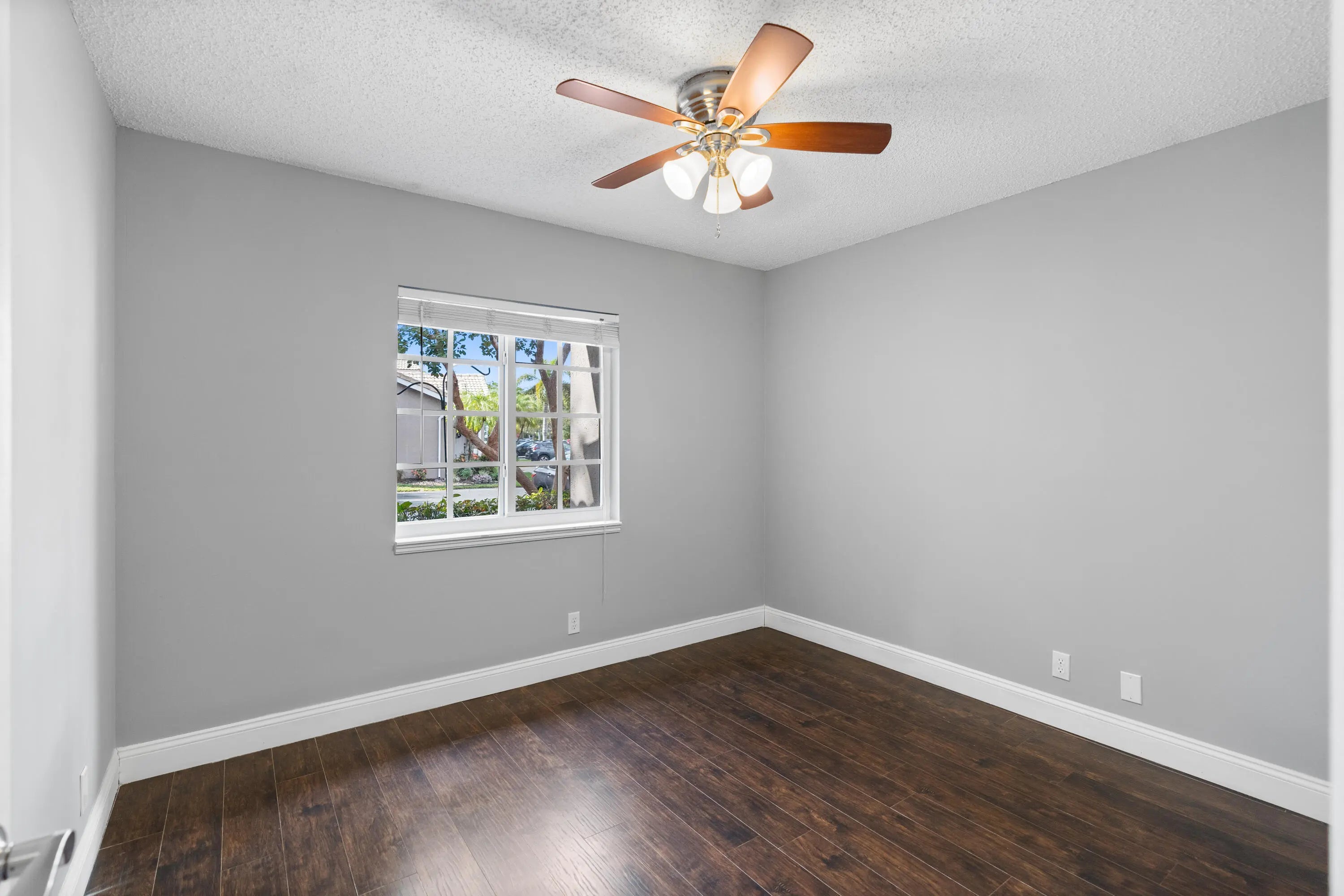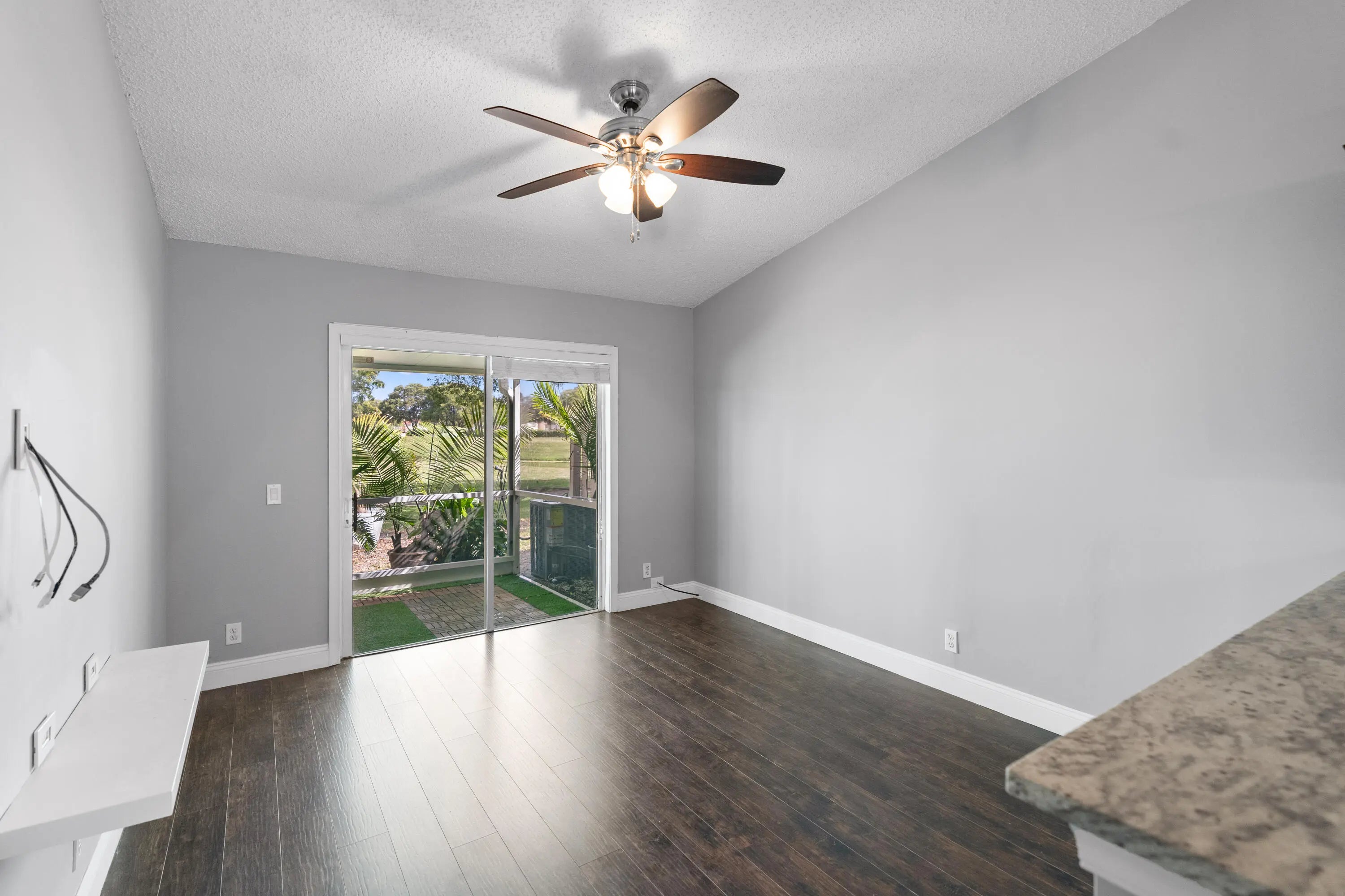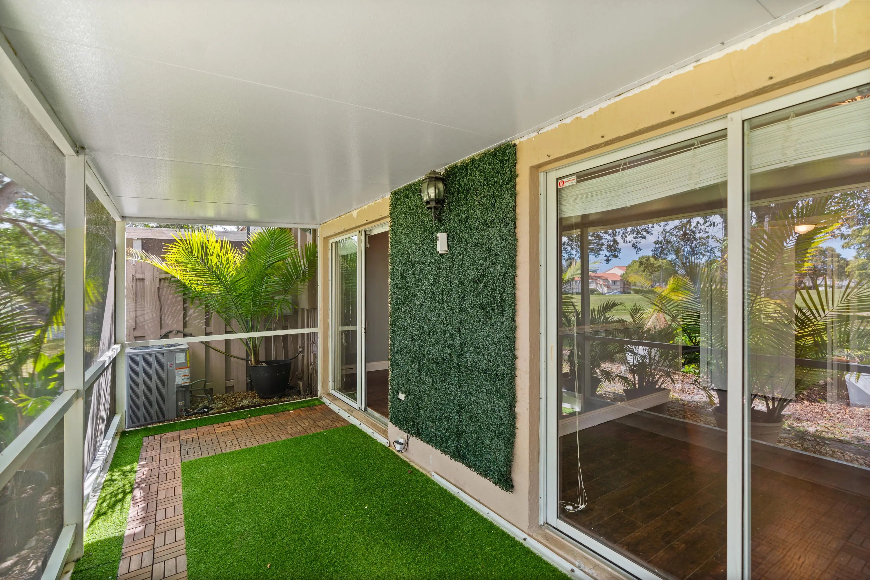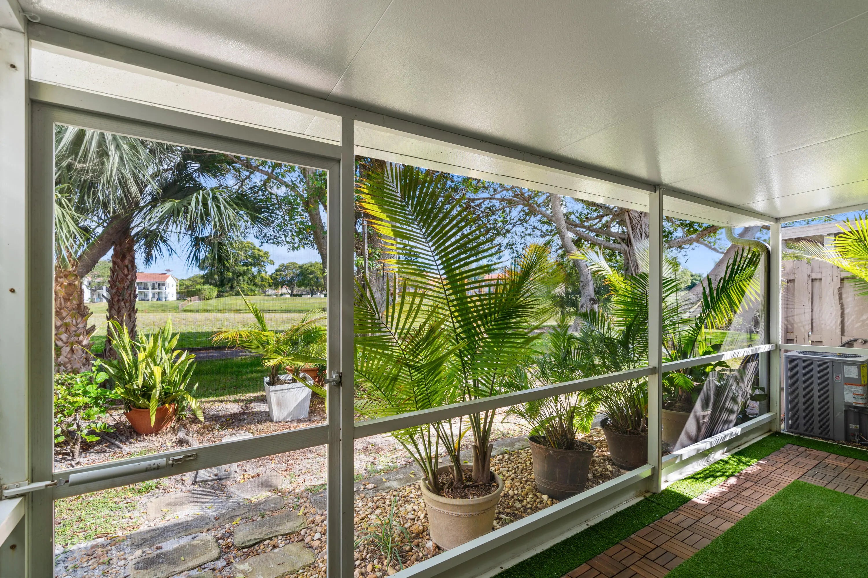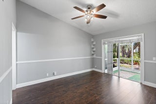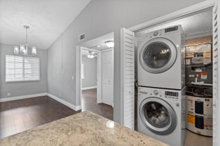 BEAUTIFUL, COMPLETELY RENOVATED 2/2 villa on golf course with water views//! In desirable Villas on the Green neighborhood. Fully renovated kitchen with wood cabinets, added island, granite countertops, and stainless steel appliances. Newly renovated bathrooms, laminate wood flooring throughout, stackable washer/dryer, and 6 month old A/C. Open floor plan with enclosed patio overlooking golf course and water. Impact windows , shutters for sliding glass doors, air ducks recently cleaned, two assigned parking places, roof approx. 7 years old, patio roof 2 years old. Low HOA with beautiful community pool.