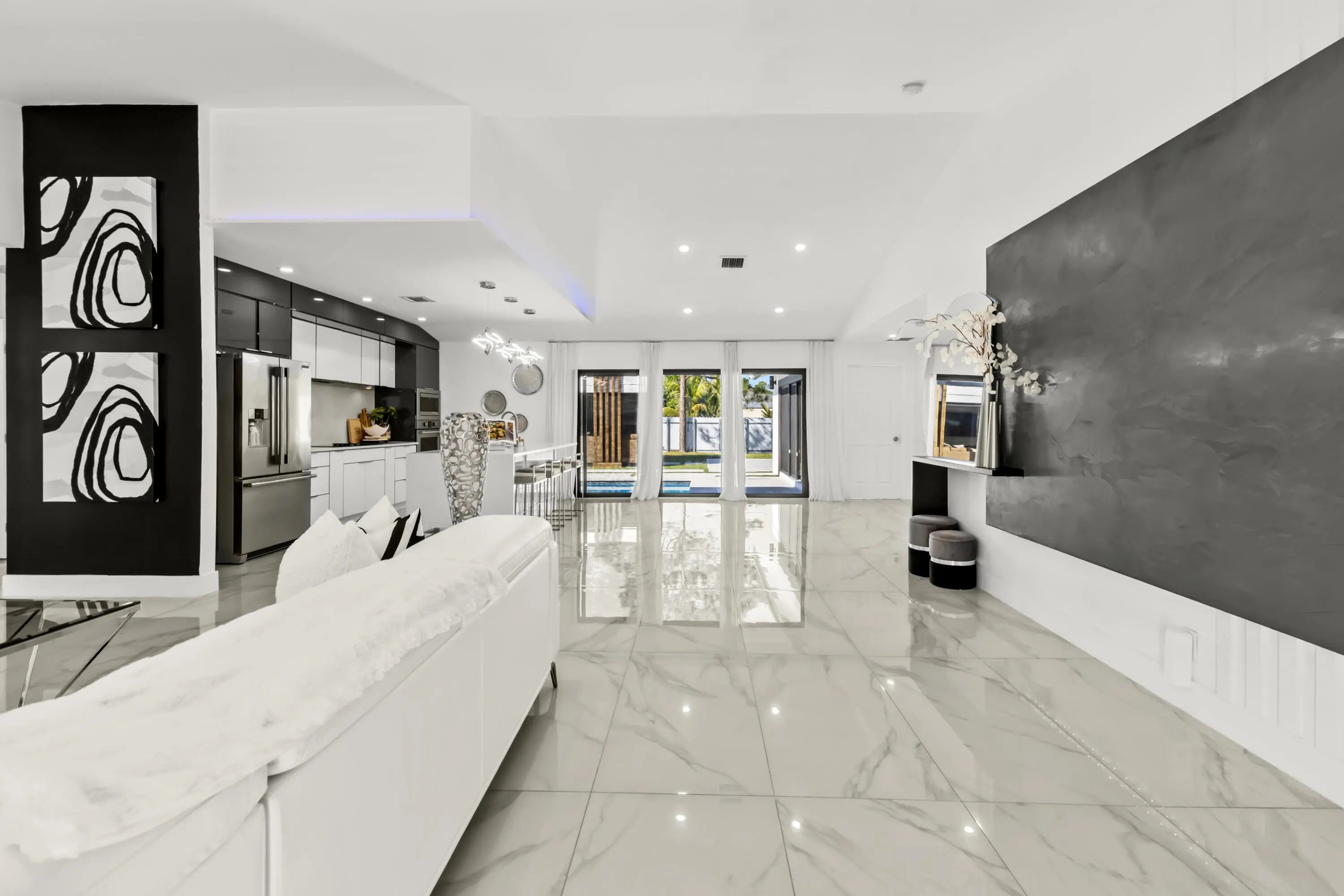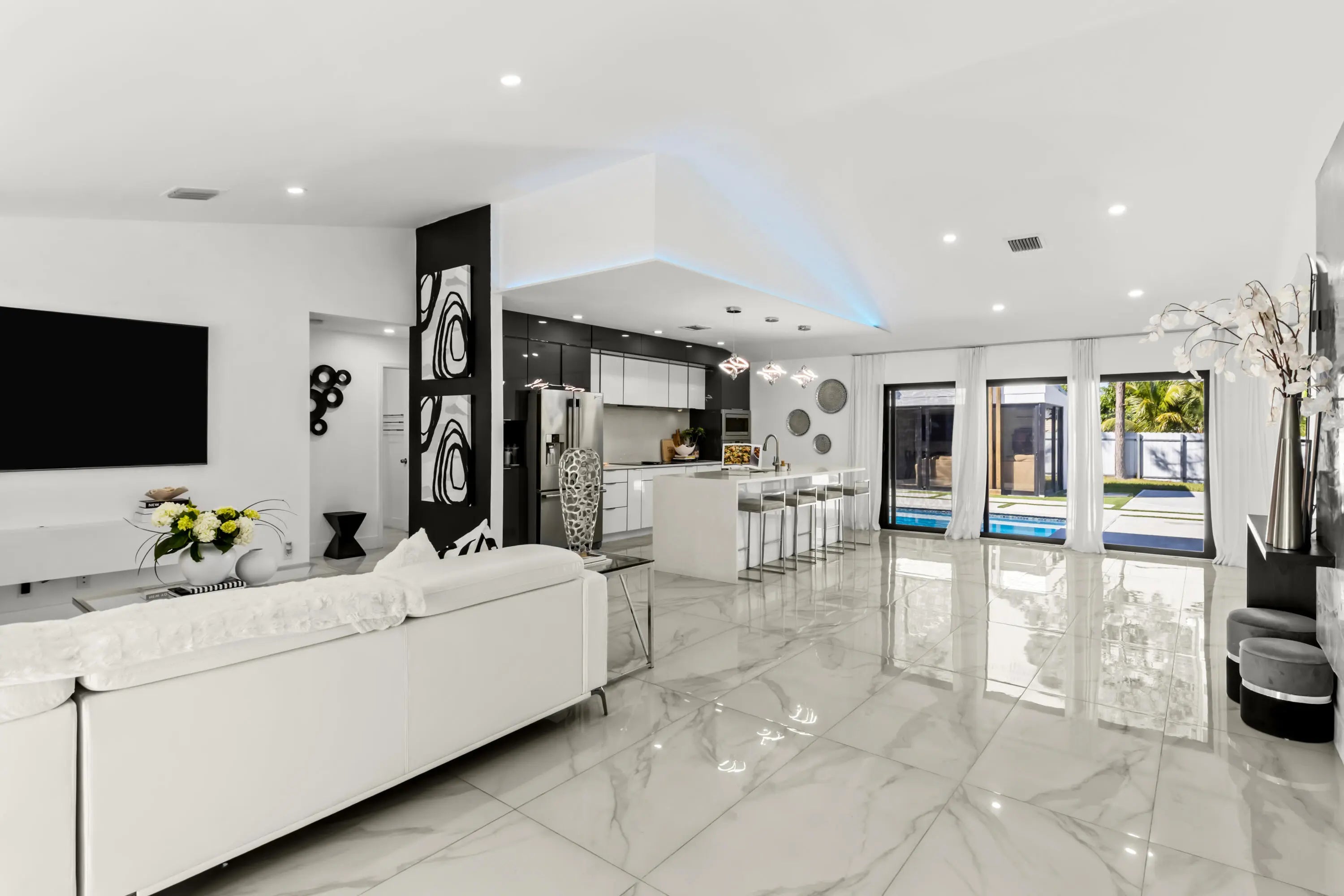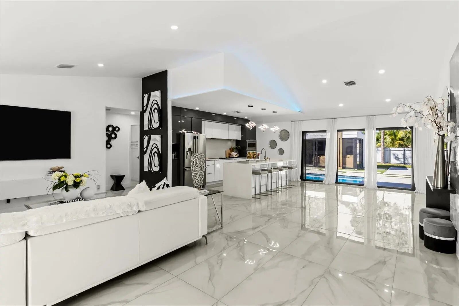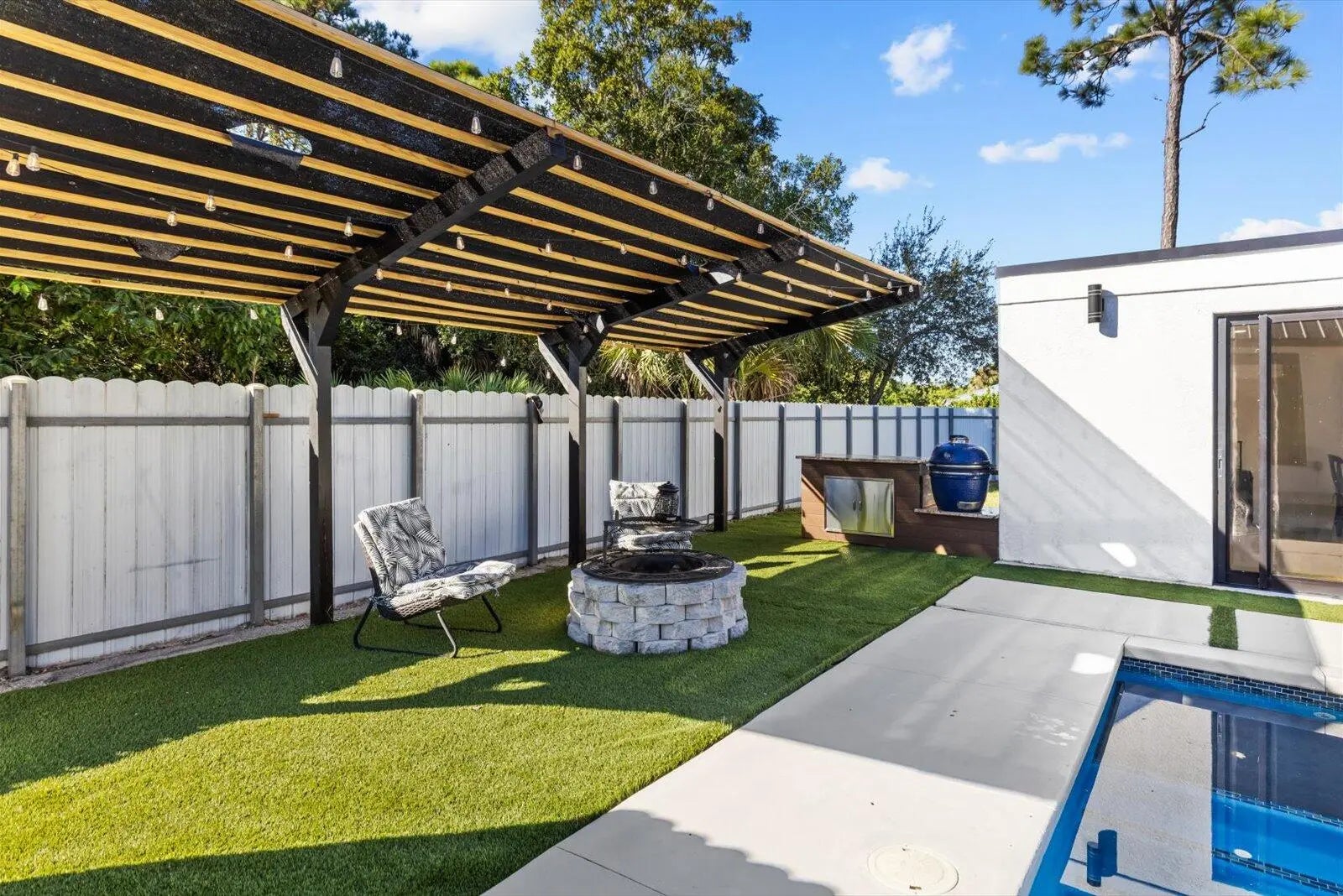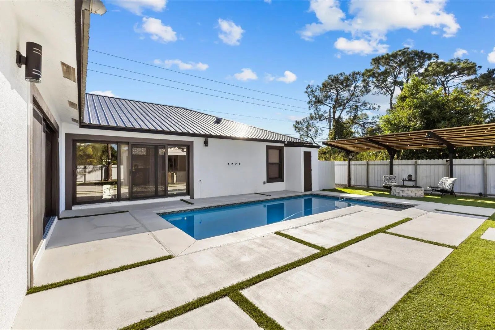 Stunning 3-bedroom, 2-bath home with office offering exceptional resort-style outdoor living in Port St. Lucie. This property features an open-concept layout with abundant natural light and well-appointed living spaces.The backyard is an entertainer's dream, showcasing a large swimming pool, pool house with outdoor kitchen, freestanding pergola, and a convenient half outdoor bathroom located on the patio. Additional highlights include a private half-court basketball area, ideal for recreation and entertainment. The garage has been converted into a private apartment-style space, complete with an independent bathroom, kitchen, and split A/C system, offering flexibility for guests, extended family, or potential income opportunities.