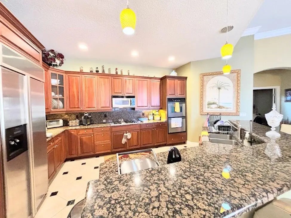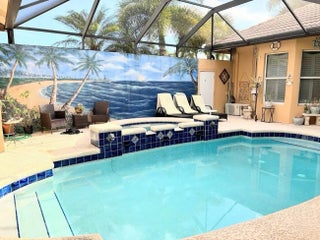 Fully furnished or unfurnished annual rental located in the gated community of The Vineyards in St. Lucie West. This unique 4-bedroom, 3.5-bath pool home sits on a desirable corner lot with a tranquil lake view in the rear. Designed around a private courtyard, the pool is the centerpiece of the home and features a stunning hand-painted mural, creating a true resort-style atmosphere. The spacious kitchen offers ample cabinetry and counter space, ideal for entertaining or everyday living. A separate mother-in-law studio provides flexibility for guests, extended family, or a private workspace. Enjoy privacy, charm, and character in a beautifully appointed home available for annual lease at $5150/month.