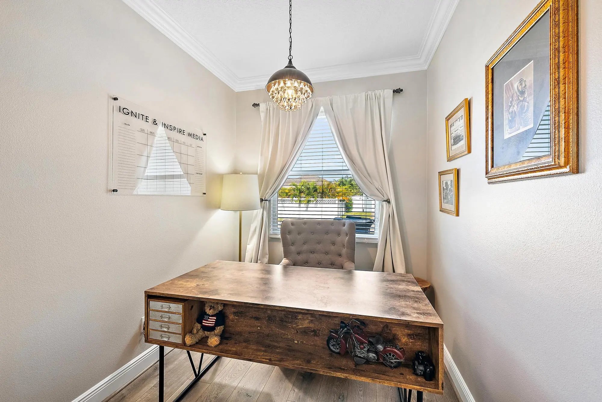 Leased until May 31, 2026. This 3-bedroom home, with flexible den or fourth bedroom, along with 2 full bathrooms comes complete with a plethora of upgrades: Solar powered saltwater pool with water fountains, a sun shelf, and solar heated. Newly installed turf for a maintenance-free lawn and perfect for pets. A covered patio with a custom-built gas fire pit and stone seating. This expansive backyard has space for a potential summer kitchen, cabana bathroom, or tiki bar complete with a gas hookup. Features include complete impact windows, luxury vinyl plank (LVP) flooring with 5'' baseboards, Stainless appliances, with gas cooktop, wall ovens, alkaline water filtration system, and LG Thinq front-loading washer and dryer with utility sink.