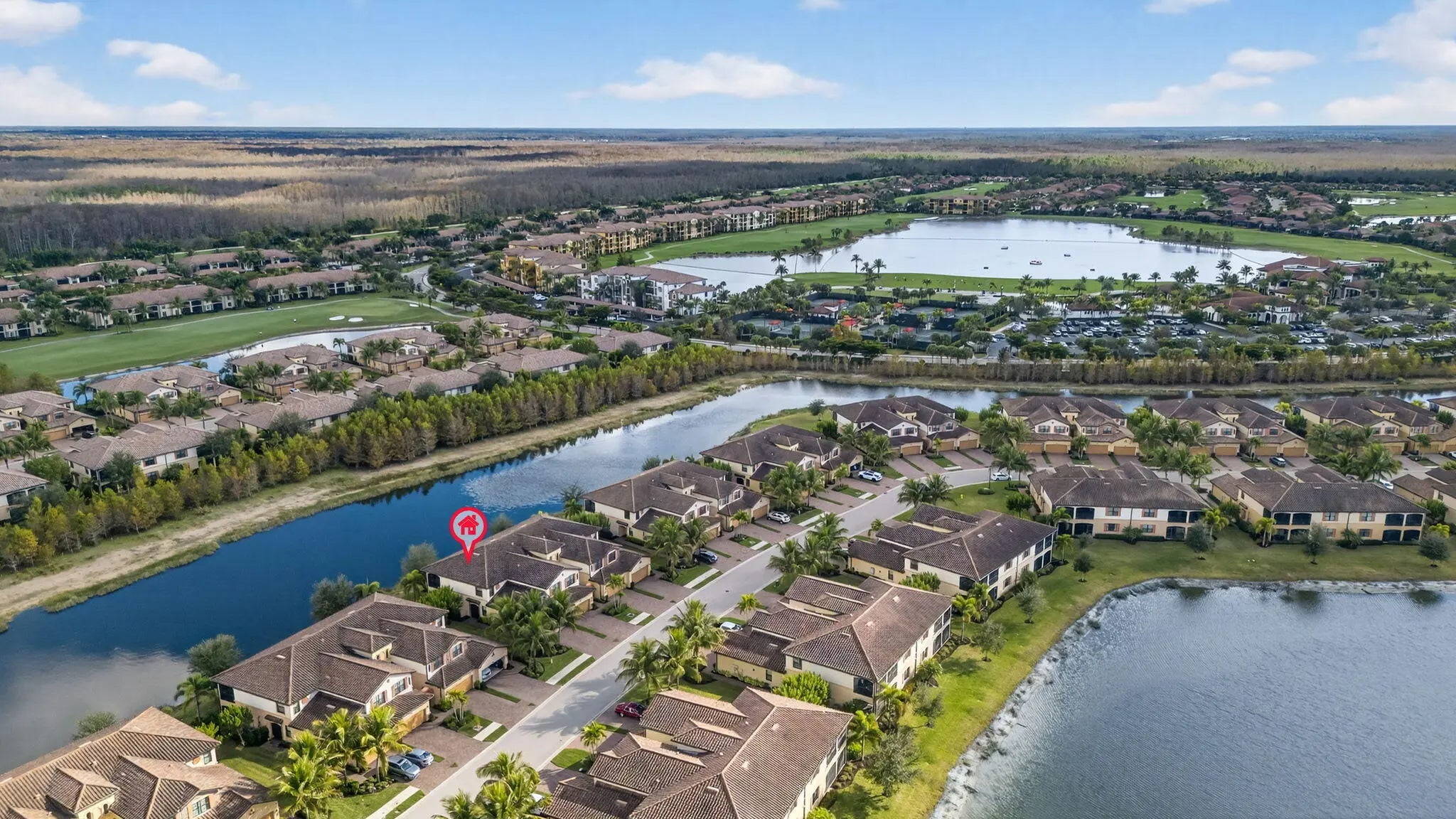 Designed for comfort and entertaining, the open-concept layout features designer finishes and abundant natural light. Enjoy tranquil lake views from the screened lanai. Tuck your car & golf cart in at night in a spacious 2 car garage. All carpets are Scheduled to be replaced with Luxury Vinyl Flooring. Just a short walk to world-class amenities including a lagoon-style pool with waterfall, lap lanes, cabanas, tiki bar and grill, full-service spa, fitness center, sauna, tennis, and more. Minutes to Gulf beaches, RSW Airport, Naples, Fort Myers, and I-75. A rare opportunity in one of Southwest Florida's most sought-after communities.