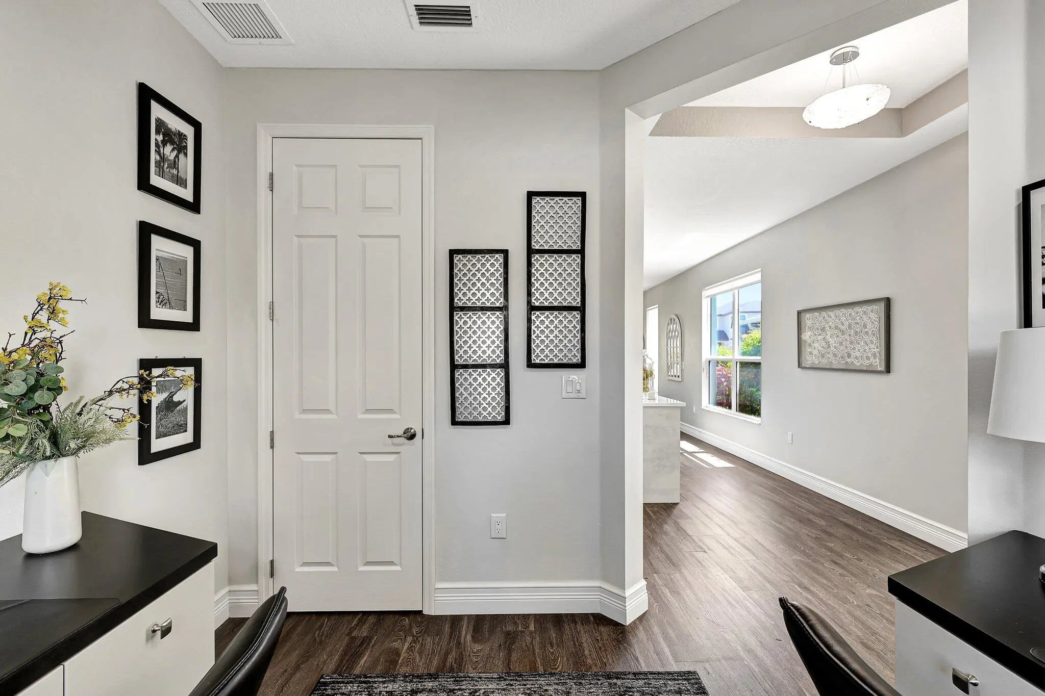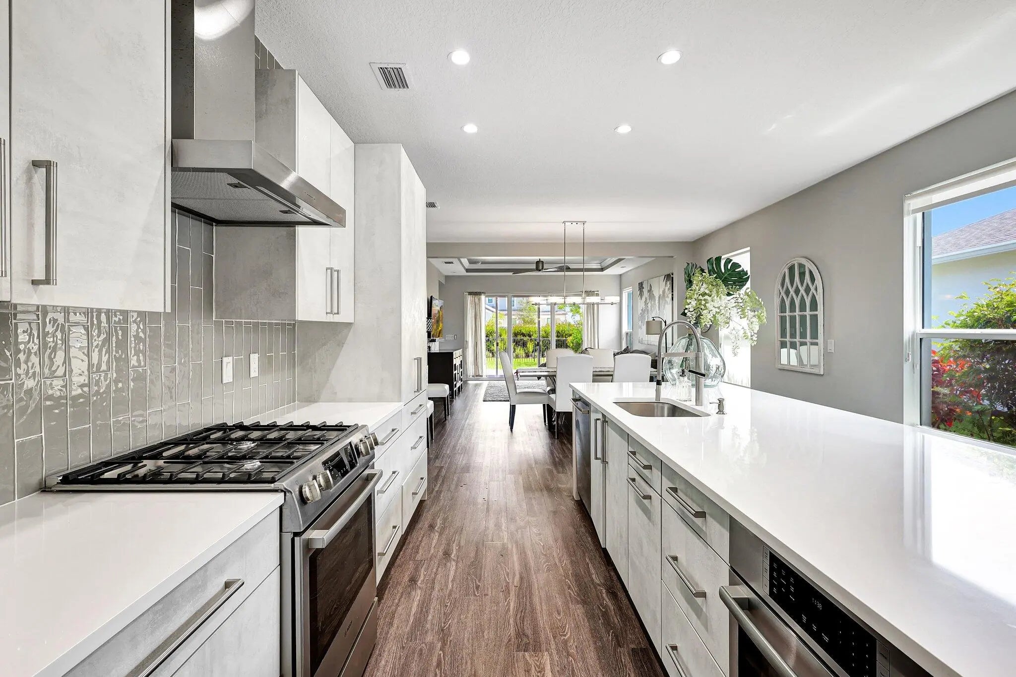 Motivated seller! Experience resort-style living in this luxurious 55+ community. This 2-bed, 2-bath home features a den that can easily be converted into a 3rd bedroom.A golf cart is available for sale, perfect for rides to the clubhouse and Tradition's downtown for dinner and live music. Amenities include a fabulous clubhouse with two swimming pools, tennis courts, pickleball courts, bocce, and a putting green.This home was an original model home with meticulous upgrades, including Bosch stainless appliances, customized closets, an oversized quartz island with extra storage, custom shades, a private fenced yard, covered lanai, impact glass windows, gas stove, and barbecue.The open floor plan offers seamless indoor/outdoor living, ideal for entertaining.