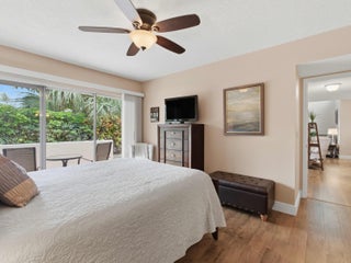 Gorgeous 2/2 apartment in the cozy and friendly community of Boundbrook. This beautifully updated unit has Mohawk RevWood hardwood flooring throughout. The living room opens up to an enclosed Florida room enhanced by hurricane Impact windows and door. Enjoy cooking in this tastefully updated kitchen with modern convenience and timeless appeal. the serene master bedroom offers custom designed closet, a private patio access and modern tiled bath. Relax and enjoy sitting by the community pool with a clubhouse and Bocci ball court. Low monthly fee includes cable, internet, water and garbage as well as building insurance and maintenance. Close to shopping and entertainment, this apartment is priced to sell.