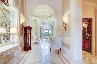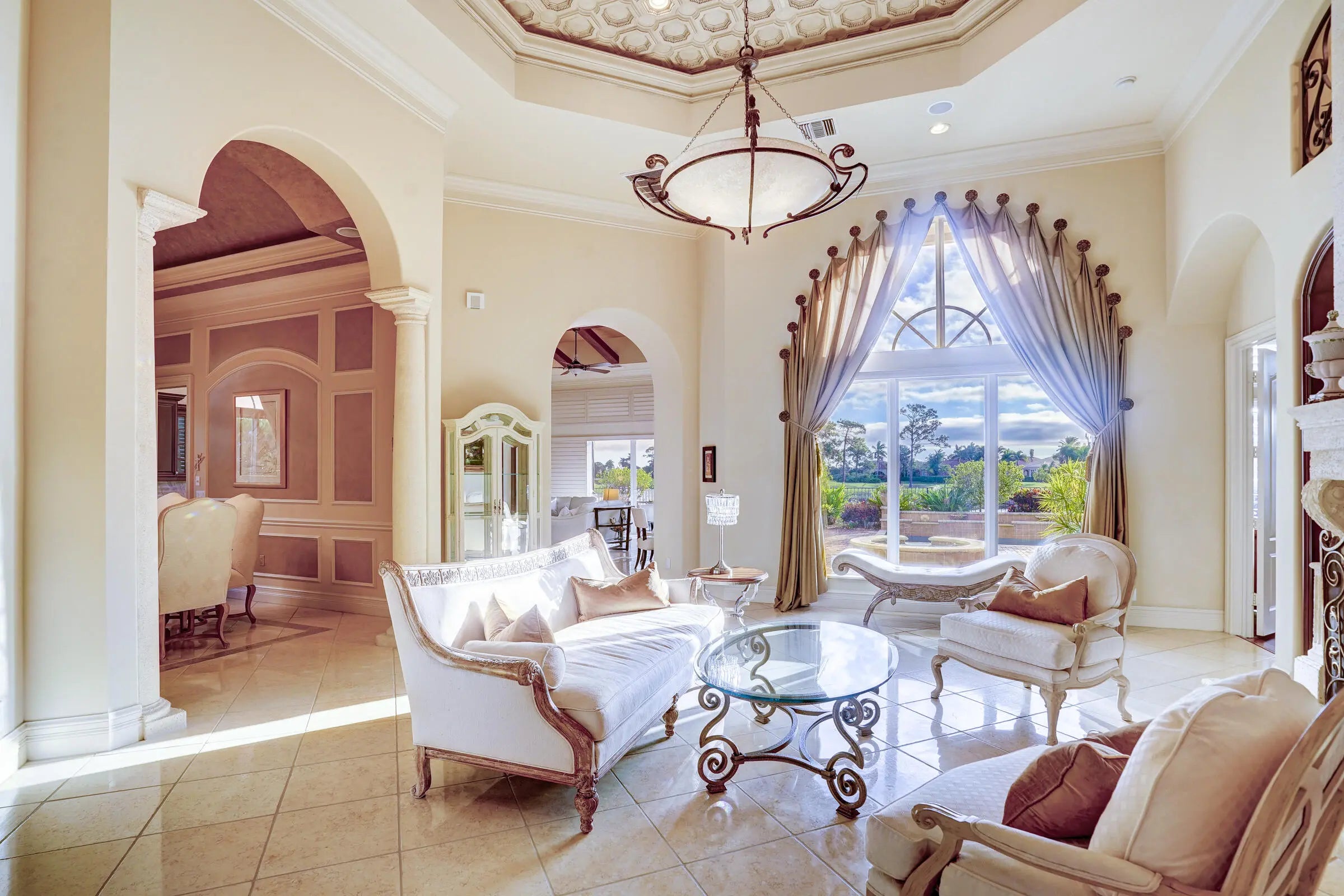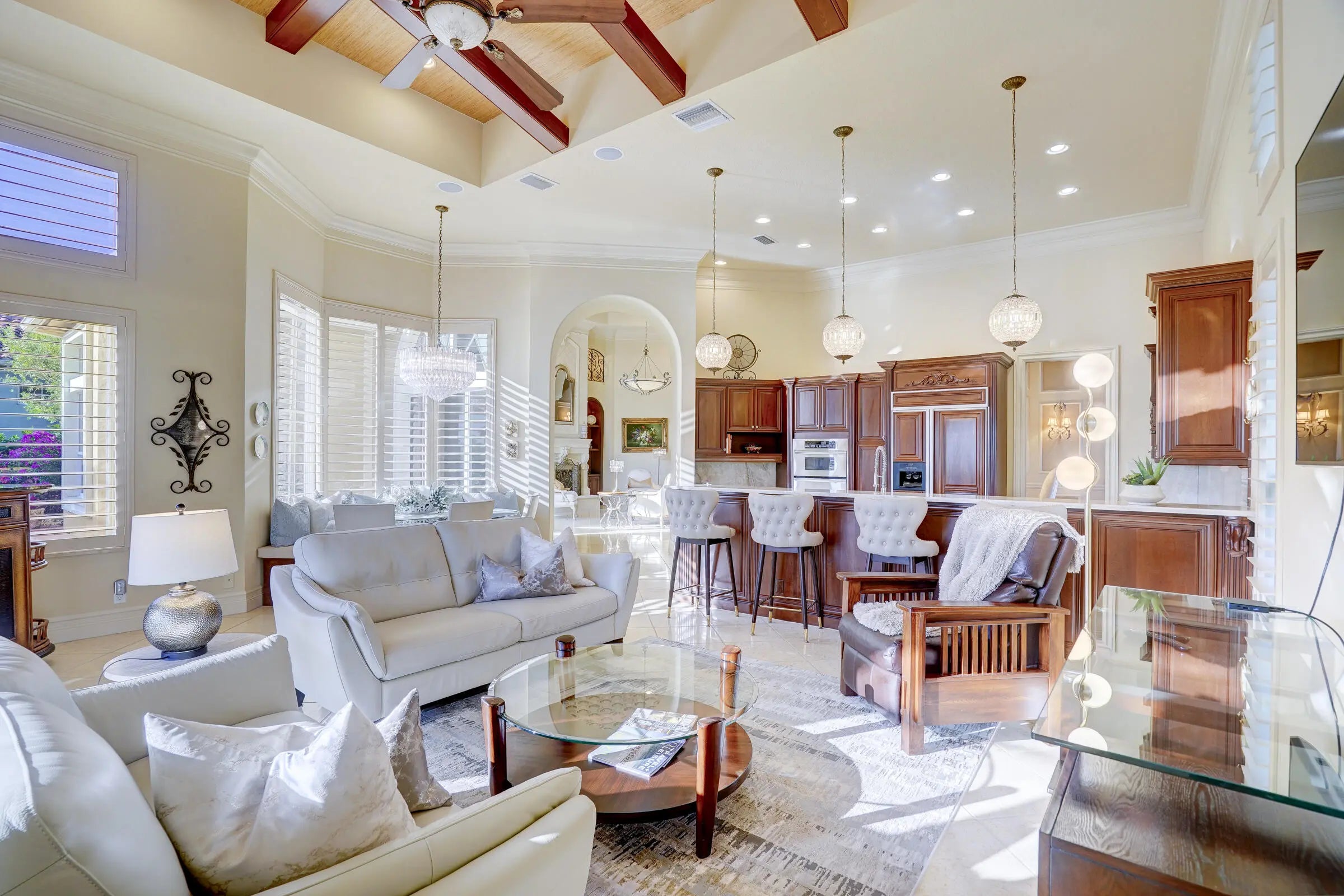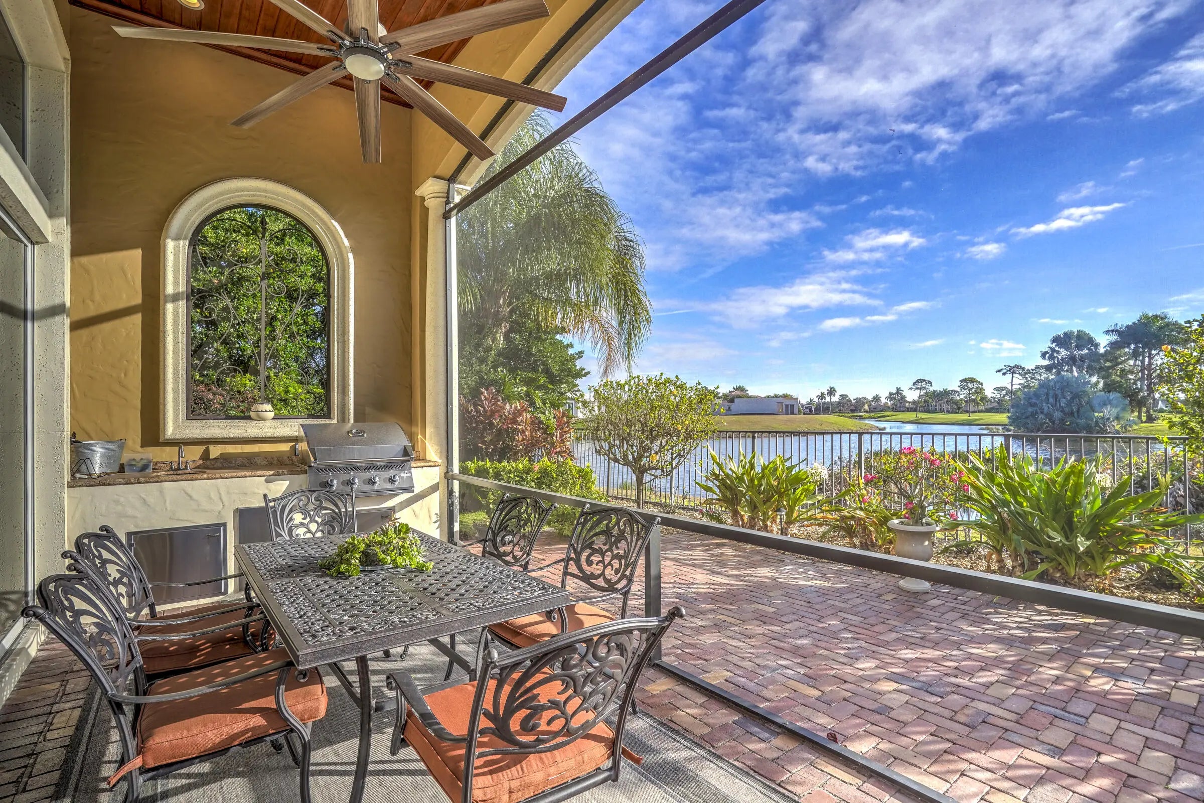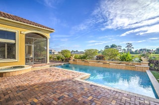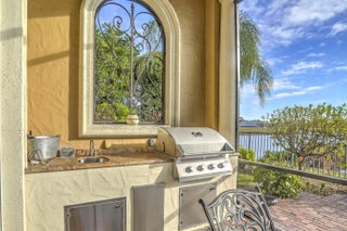 Discover this beautiful home in the Tesoro golf community, featuring high ceilings and abundant natural light. The kitchen offers granite countertops, dark hardwood cabinets, a gas range, and wall oven. This 3BR/2.5BA home includes an office that could serve as a 4th bedroom, plus a formal dining room and open kitchen/family area. Enjoy the covered patio with summer kitchen overlooking the pool and spa as well as the lake. Outdoor kitchen has covered patio to lounge and enjoy dinner, coffee or drinks. Membership is optional includes, pickleball, tennis, gym, pool and restaurant at the Tesoro pool and restaurant at the main club house.