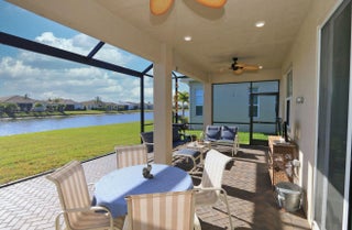Enjoy the Cresswind at Verano 55+ lifestyle in this beautiful lakefront Davis model featuring impact windows throughout. The upgraded kitchen offers quartz countertops, center island, stainless steel appliances, and a bright eat-in dining area. This home also includes a formal dining room and a versatile flex room perfect for an office or den. The spacious primary suite features a master bath with dual sinks, a large walk-in shower, and a generous walk-in closet. Enjoy a quiet, peaceful backyard with serene lake views from the screened-in lanai. Relax and take advantage of all the resort-style amenities Verano at PGA has to offer.