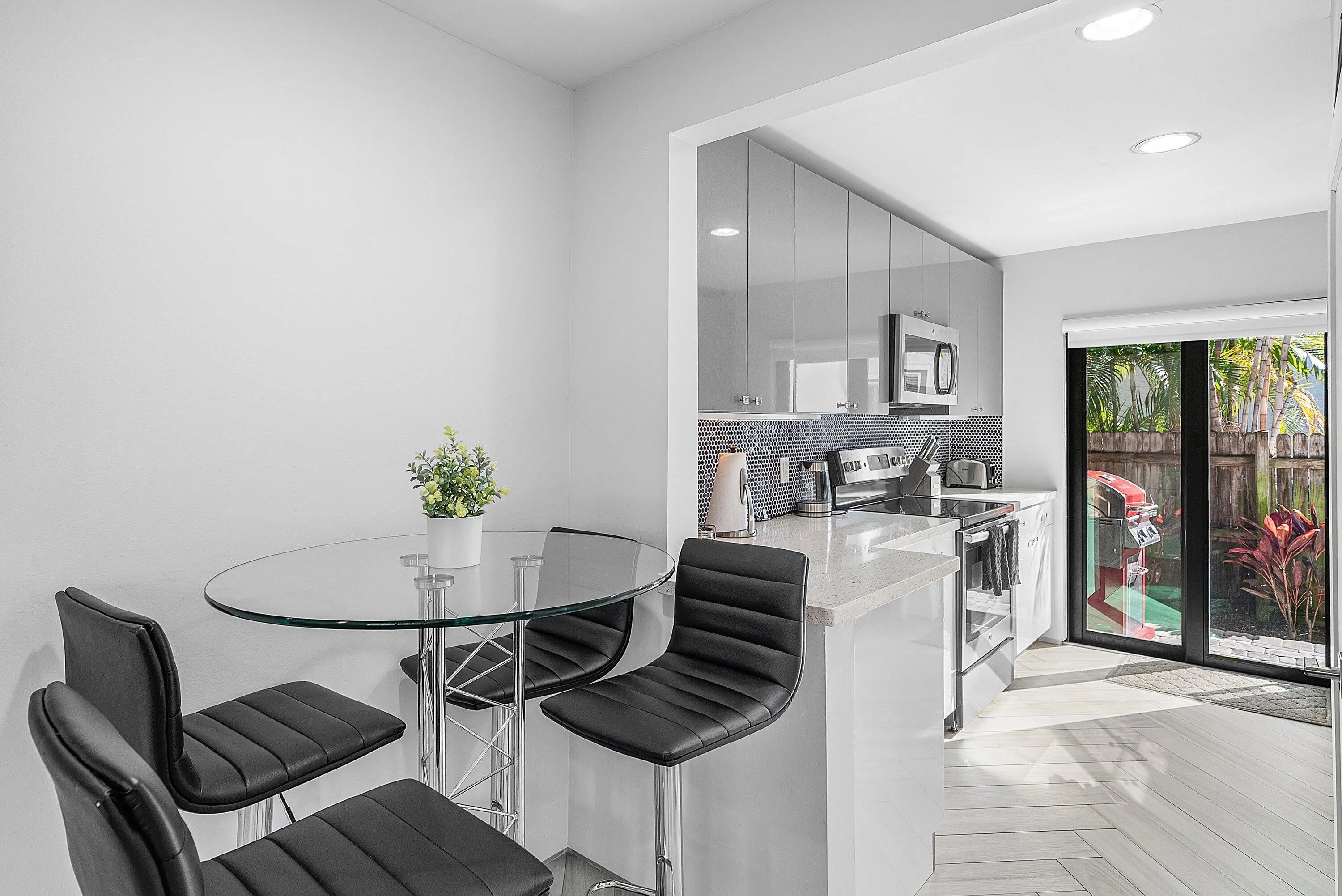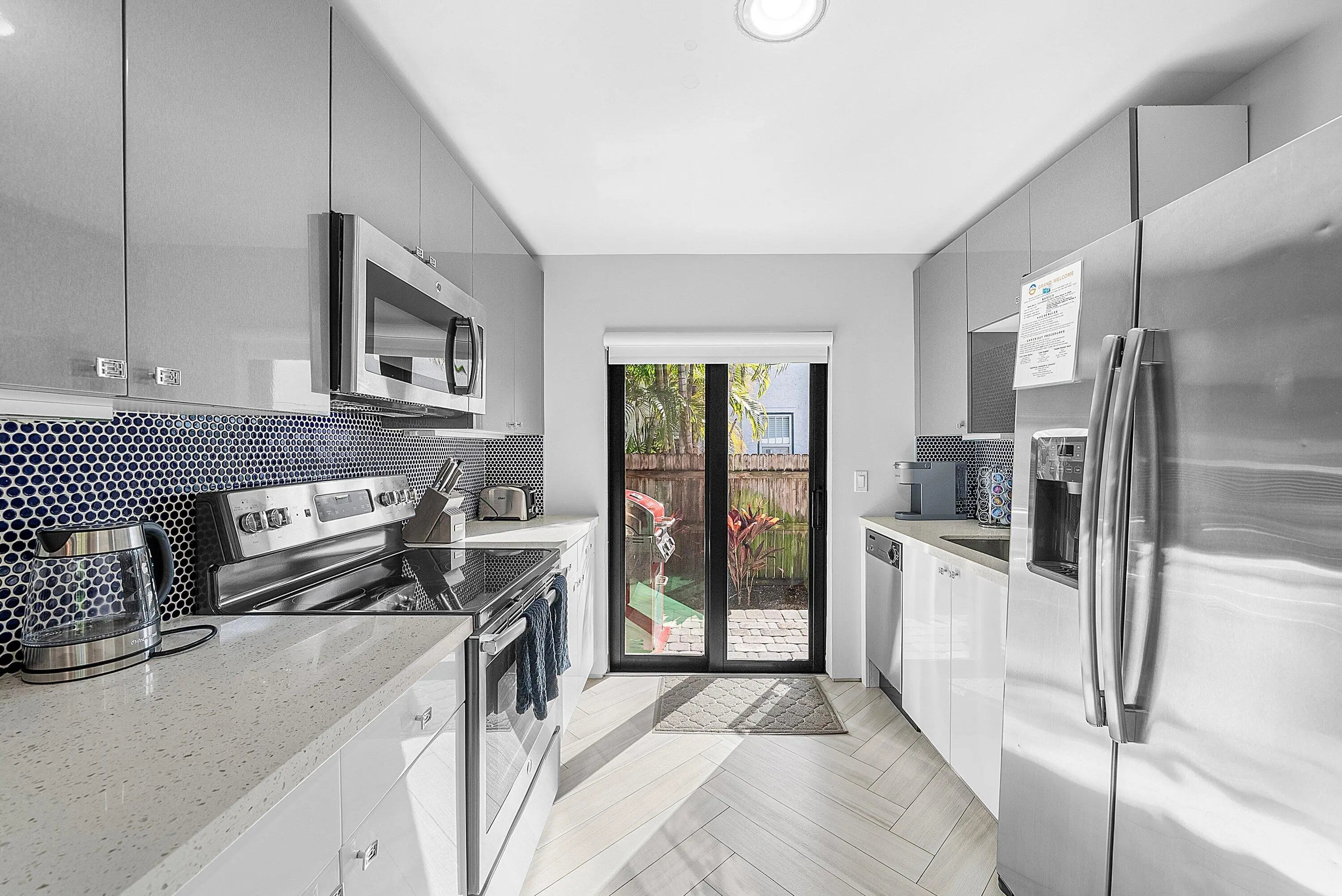A truly rare opportunity in the heart of Downtown Delray Beach. This one-of-a-kind duplex was fully rebuilt and renovated in 2016 and showcases a distinctive Art Deco vibe in a prime, walkable location just two blocks north of Atlantic Avenue. Step outside and enjoy effortless access to Delray's best dining, nightlife, boutiques, and entertainment, no car required.Every major component has been updated, including cabinetry, countertops, appliances, flooring, windows, and roof, making this a completely turnkey, low-maintenance investment. Each unit is a 2-bedroom, 1-bath residence with its own washer and dryer, private fenced yard, and thoughtfully designed interiors.This is a proven income-producing property, currently operating as an active Airbnb and VRBO, and professionally
