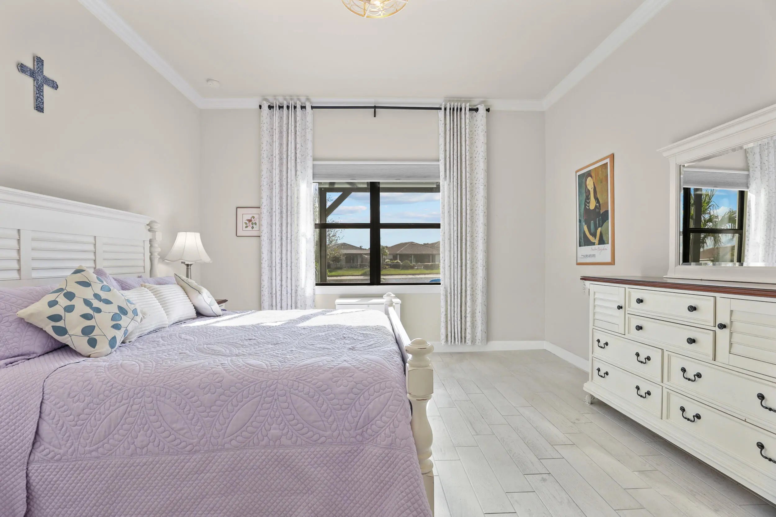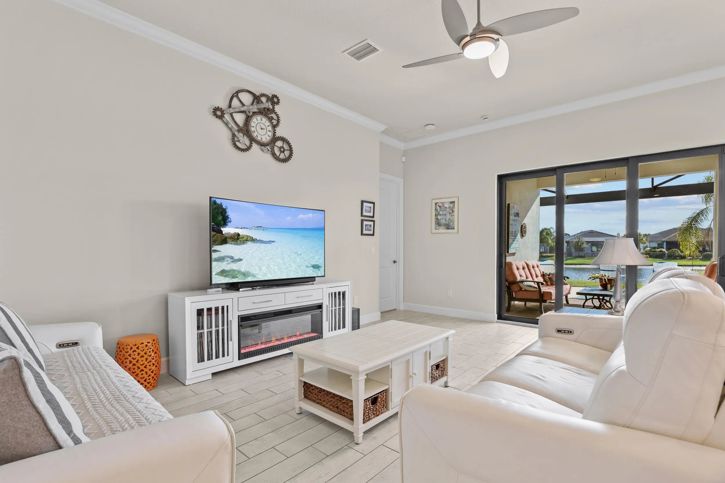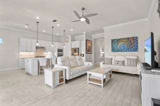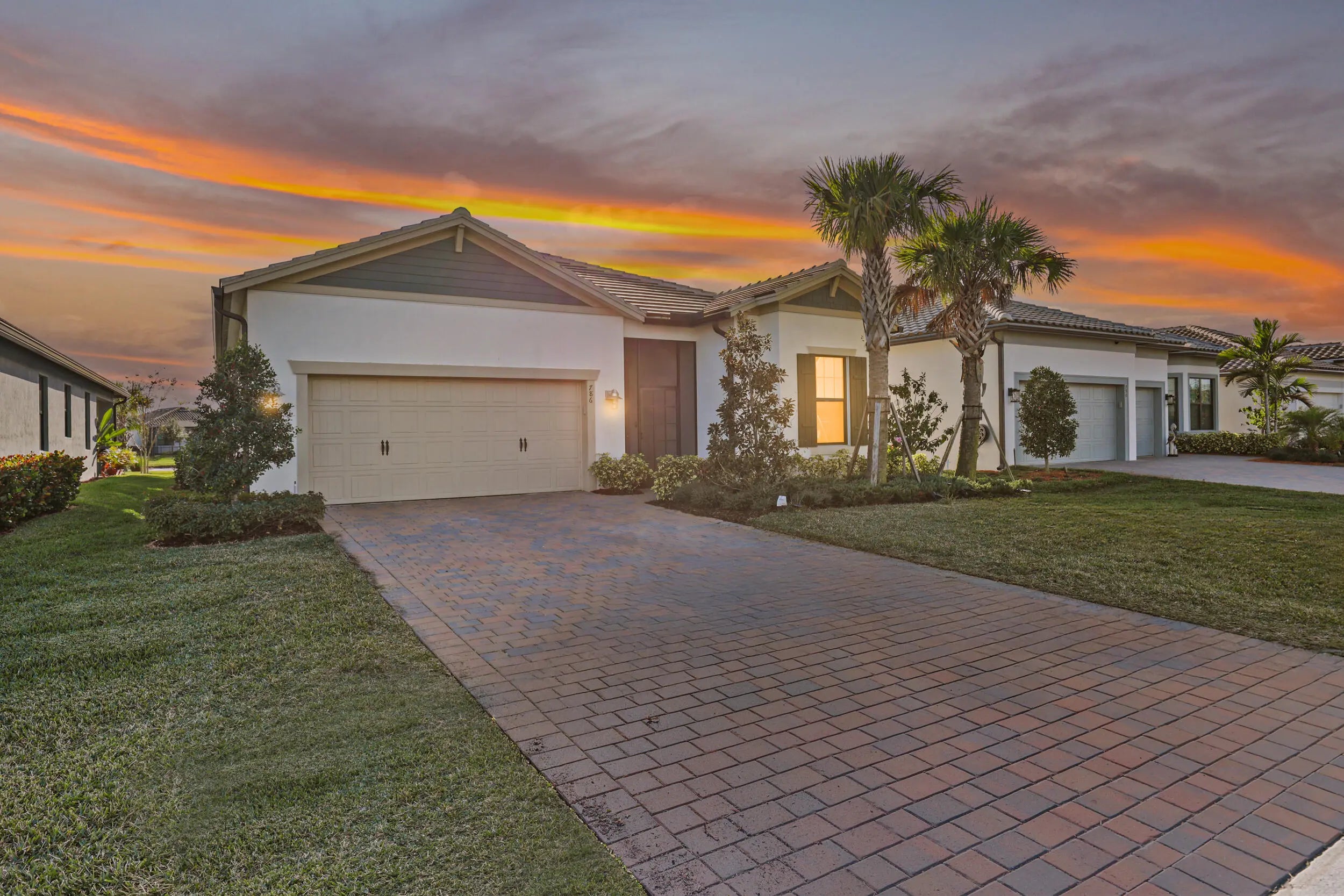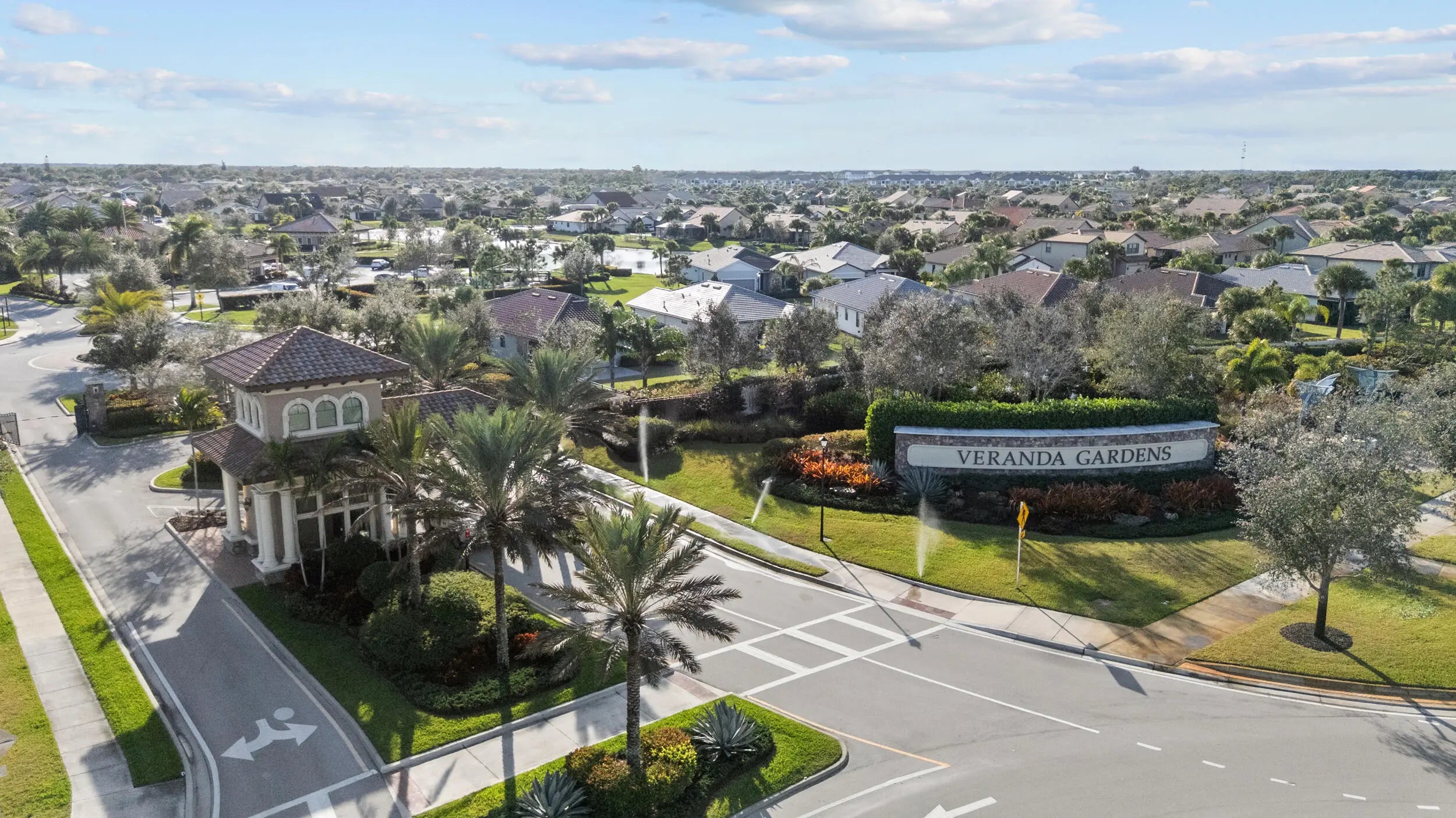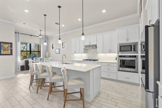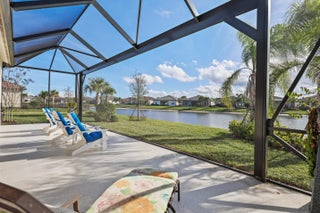 New. construction without the CDDs!!! Lakefront resort-style living in Veranda Gardens. This 2023-built 3-bedroom, 2-bath home with a 2-car garage offers an open-concept floor plan, impact windows throughout, and modern upgrades designed for everyday living. The gourmet kitchen features stainless KitchenAid appliances, a gas range, quartz countertops, upgraded cabinetry, designer backsplash, a large center island, and pantry.The primary suite includes a spacious ensuite with walk-in shower and bench, dual sinks, two oversized walk-in closets, and a linen closet. A well-appointed laundry room includes washer, dryer, cabinetry, and utility sink. Step outside to a covered patio and additional screened, cage-enclosed lanai overlooking a peaceful lake with sunset views.