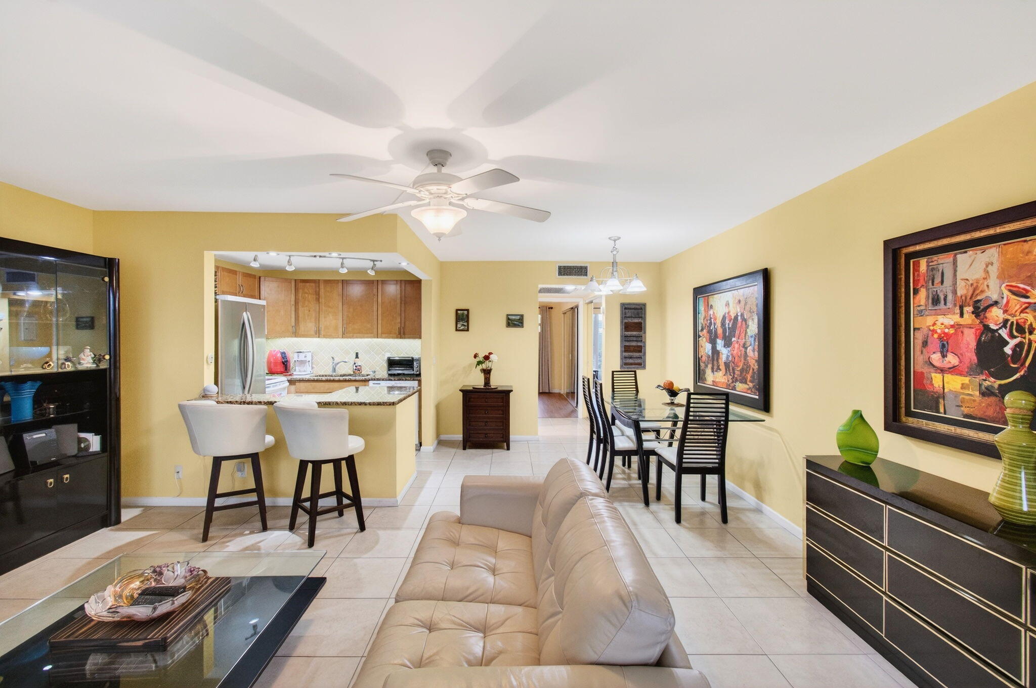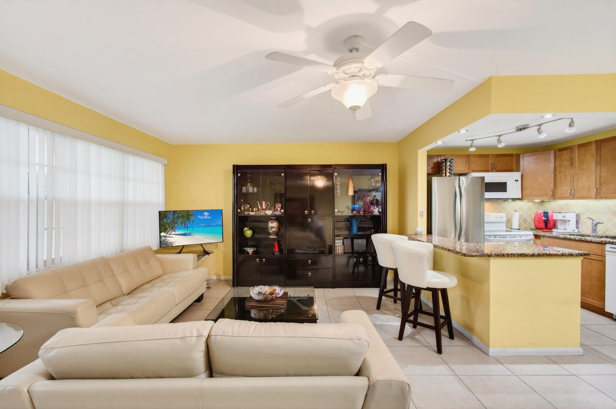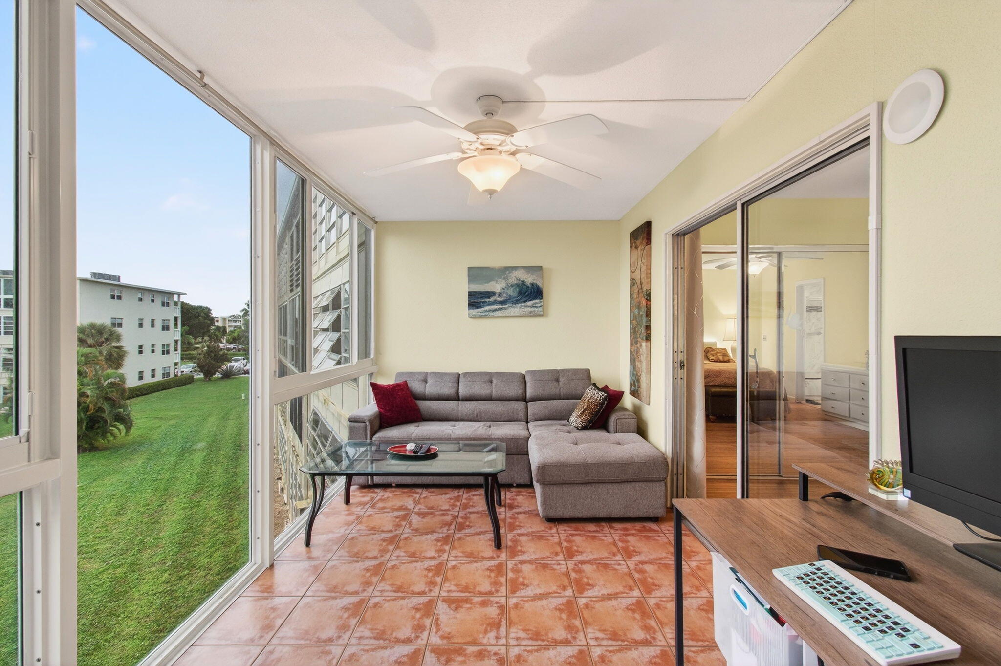 CENTURY VILLAGE--AN ACTIVE ADULT COMMUNITY WITH FREE SHUTTLE BUSES.Experience the tranquil ambience of Grantham's quiet corner in the heart of Deerfield Beach, Florida. This stunningly restored third-floor residence offers captivating views in every direction, providing serenity amid the inviting community lifestyle of Century Village.Adorned with a contemporary touch, the residence features luxury vinyl flooring throughout its sprawling layout, providing a sleek, clean appearance. No popcorn ceiling.Cascading natural light illuminates the open-concept kitchen, which boasts modern granite countertops, a double sink, and real, authentic wooden cabinets. The stone backsplash adds a sophisticated flair that inspires culinary creativity in any discerning chef.The main living area offers ample space for hosted gatherings or quiet relaxation, embodying the perfect blend of style and functionality. A highlight of the accommodation is the generously sized closets, intricately designed to integrate seamlessly with the wall architecture. The condo's bathroom features visually pleasing tiled walls, a high toilet/bidet, and a stylish vanity with a granite countertop. The allure of Florida's charm integrates into the home through the enclosed patio. With custom-made oversized impact windows overlooking enchanting garden views, the patio can serve as the focal point for early-morning coffee breaks or evening retreats. More than just a home, the Grantham section extends resort-style amenities, including a 150,000 sq. ft. clubhouse, fitness center, heated pools, tennis and pickleball courts, library, and even a theatre. Security is ensured by a 24/7 guarded gate and a courtesy shuttle for convenient movement within the community. Improvements to the building include a new elevator and roof, adding an extra layer of peace to your serene living experience. Strategically nestled between two pools, the apartment offers an inviting haven to its new owners. Whether you're an outdoor enthusiast, an arts and craft hobbyist, an eager shuffleboard competitor, or simply seeking the calm and peace of resort-style living, this elegant condo in Deerfield Beach, Florida, offers an unmatched combination of comfort, convenience, and lifestyle. Combined with the vibrant 55+ community, you'll not just find a home, but also a community that brings life to your doorstep, celebrating every breath of fresh Florida air. This immaculately maintained residence awaits your discovery and is ready for you to craft unforgettable memories in your new sanctuary. TOTAL MONTHLY HOA$639.00