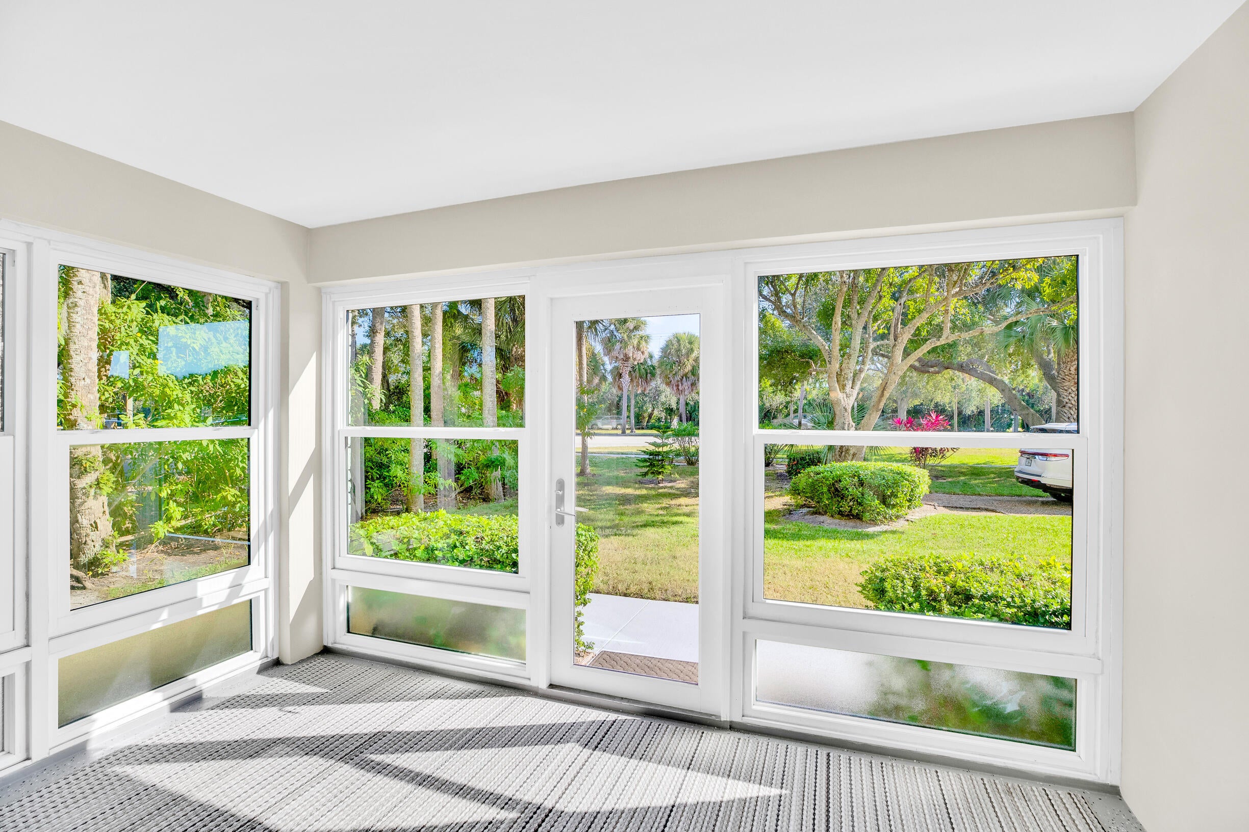 Spacious 2BR/2BA first-floor corner unit offers one of Riverview's largest 1,431 sq ft floor plans, boasting a separate breakfast nook, a larger pantry, and a bonus room perfect for a home office or study. The east-facing enclosed 100+ sq ft Florida room is great for sunrise coffee and allows for two access points into the unit. Updates include new SS appliances, kitchen countertops, revitalized baths, 2023 AC condenser, updated windows and doors, fresh interior paint, and tile throughout. Ideally located next to Miracle Mile shopping/dining, and 5 minutes to downtown & Ocean Drive beachside.