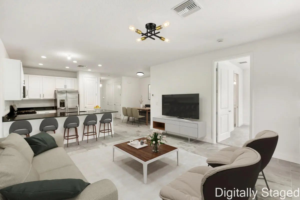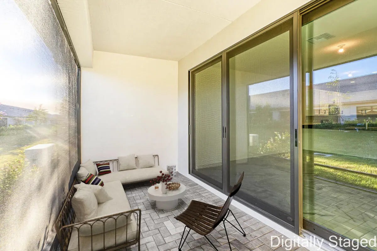 WHY WAIT A YEAR FOR NEW CONSTRUCTION? Secure this brand-new, never-lived-in Areca Villa in Valencia Parc at Riverland, Port St. Lucie's premier 55+ community. This move-in-ready home features 2 bedrooms, 2 bathrooms, a spacious great room, covered screened patio, 1-car garage plus golf cart garage, hurricane-impact windows and doors, and a concrete tile roof for lower insurance costs. Interior upgrades include Brazilian Black granite kitchen countertops, extended tile-to-ceiling showers, quartz vanity tops, upgraded bath vanities, rectified tile flooring in both bathrooms. Enjoy Riverland's unmatched lifestyle with the 38,000 sq ft Social Club with restaurant/bar, 51,000 sq ft Wellness & Fitness Center, and Florida's largest private24-acre Sports & Racquet Club and pickleball facility.