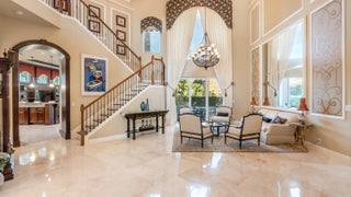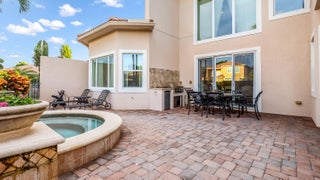Experience refined luxury living in the heart of Boca Raton's coveted Millionaire's Mile at Azura on the Jog Road corridor. Ideally located near Boca's top-rated private and public schools, this exceptional residence is tucked away on a quiet cul-de-sac with no rear neighbors, offering a rare sense of privacy in a highly sought-after setting. An extended driveway leads to a three-car garage and welcomes you into an impressive interior. The thoughtfully designed floor plan features five bedrooms, four and one-half baths, a private office, and a spacious loft. Soaring 23-foot ceilings enhance the home's grand, open feel. The primary suite is conveniently located on the main level and includes an additional sitting area, perfect for a home office or workout space. The primary bath offersdual sinks, a soaking tub, and a large walk-in shower. Upstairs, you'll find three additional bedrooms and two full baths, including a Jack-and-Jill layout. Designed for both everyday living and entertaining, the spacious kitchen features a center island, rich brown cabinetry, granite countertops, and two oversized pantries for ample storage. The serene, private backyard is ideal for relaxing or hosting guests, complete with a summer kitchen and spa, with plenty of room to add a pool. Perfectly positioned within one of Boca Raton's most desirable communities, this home seamlessly blends elegance, comfort, privacy, and location. Azura is an exclusive enclave of just 92 luxury homes, highlighted by brick-paved streets and natural gas service. Residents enjoy 24-hour manned gated security and access to a 7,500-square-foot clubhouse featuring a fully equipped fitness center with sauna and spa, a ballet/yoga studio, billiards and card rooms, a social room, and on-site management. Outdoor amenities include a resort-style pool and whirlpool, children's playground, putting green, and two Har-Tru tennis courts.